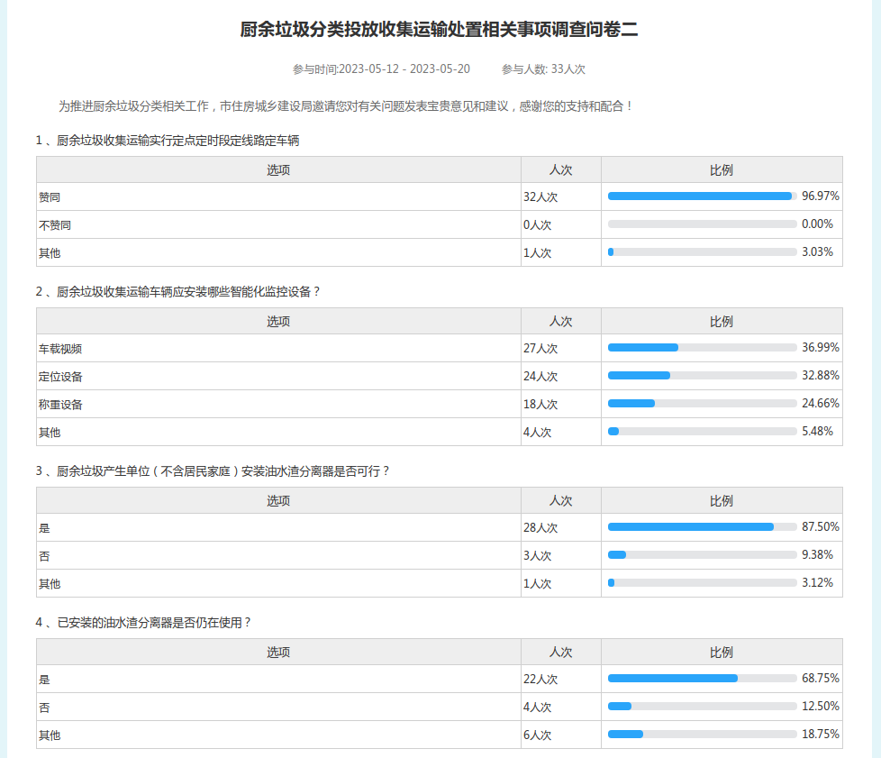 为推进厨余垃圾分类相关工作,市住房城乡建设局邀请您对有关问题发表宝贵意见和建议,感谢您的支持和配合!