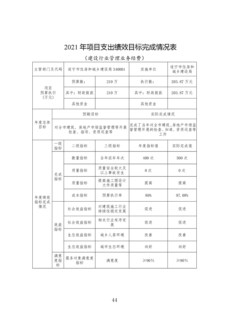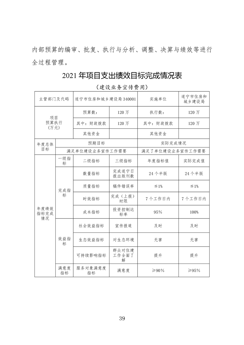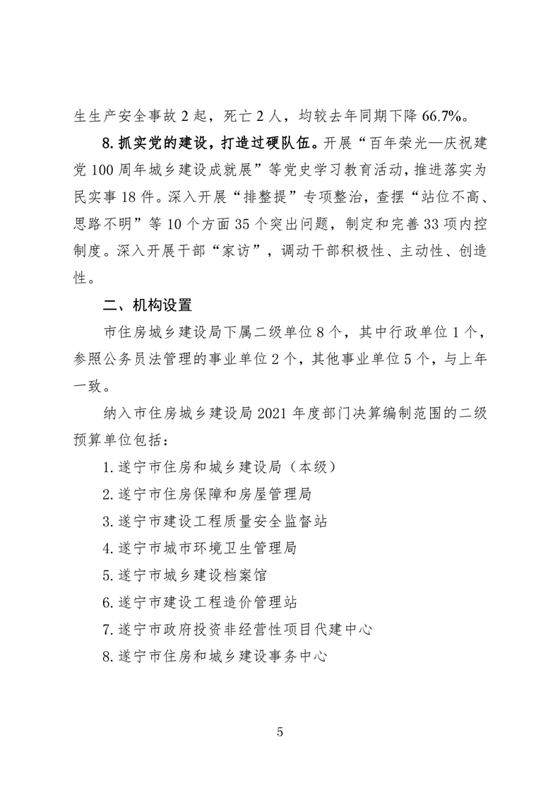 遂宁市住房和城乡建设局(汇总)2021年部门决算编制说明