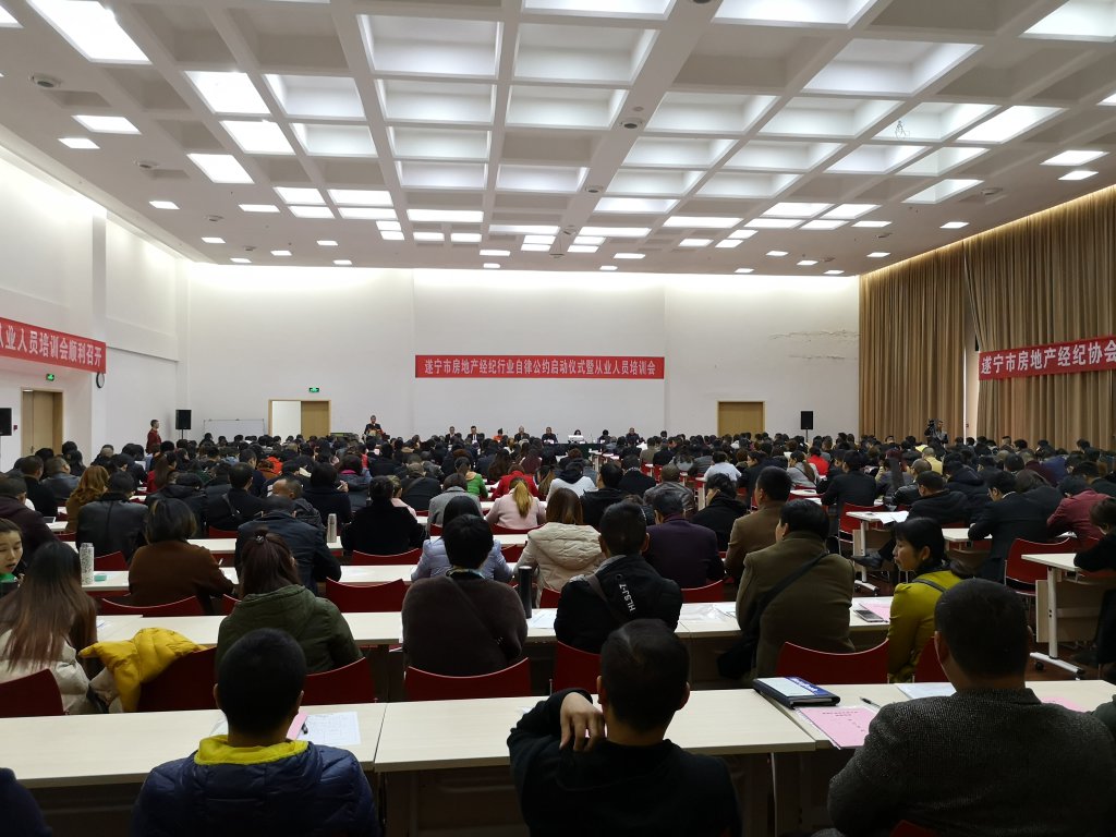 11月9日,遂宁市房地产经纪协会在物流港组织召开了遂宁市房地产经纪行业自律公约启动仪式暨从业人员培训会,我市500多名房地产经纪从业人员参加了会议,市住建局副局长黄洪波、市房管局副局长周熹和市房管局市场监管科科长张颖出席了会议。
