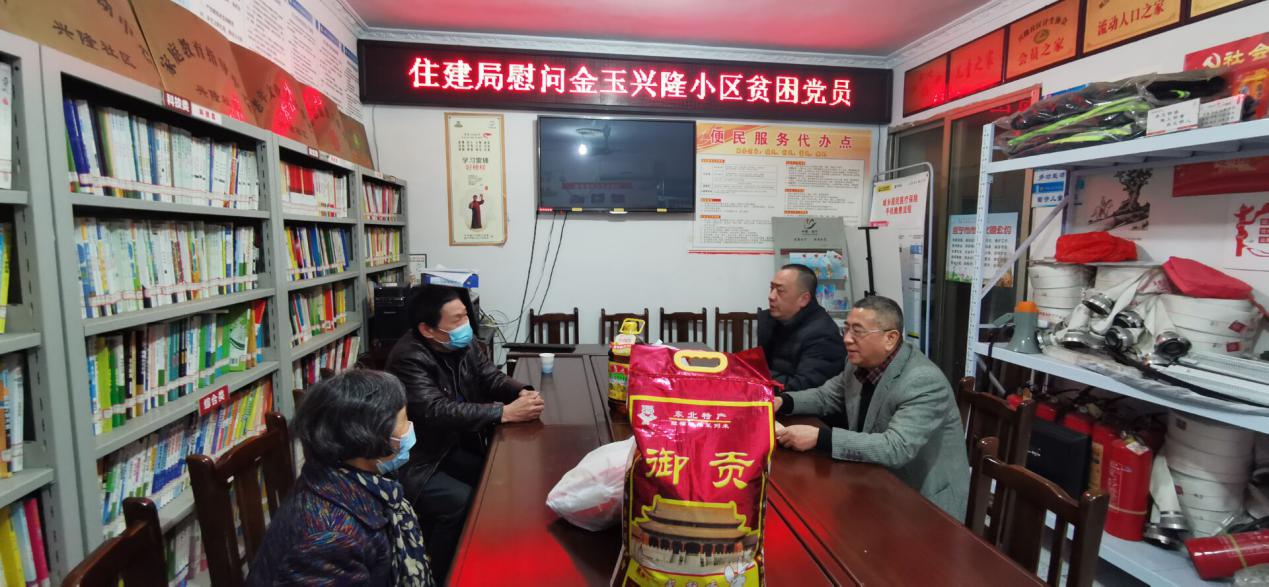 2月8日,市住房城乡建设局局长邓云赶到联系社区兴隆社区,和社区困难党员、老同志及社区干部亲切交谈,送上慰问金、慰问品,嘱托他们节日期间一定要注意做好疫情防护,保重身体,有困难及时向党组织反映,衷心祝福他们身体健康、阖家幸福。