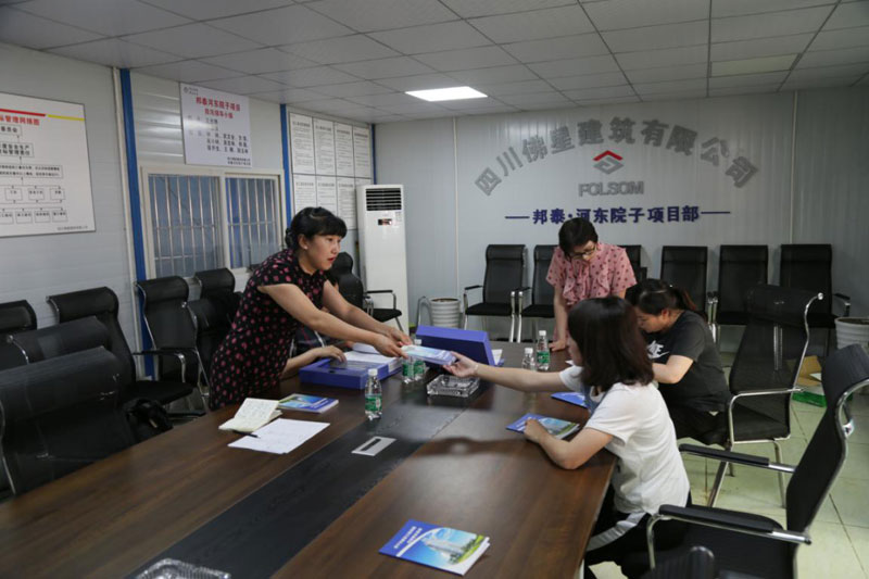 向中铁二期·麓苑资料员进行档案业务指导并赠送《遂宁市建设工程档案归档服务指南》