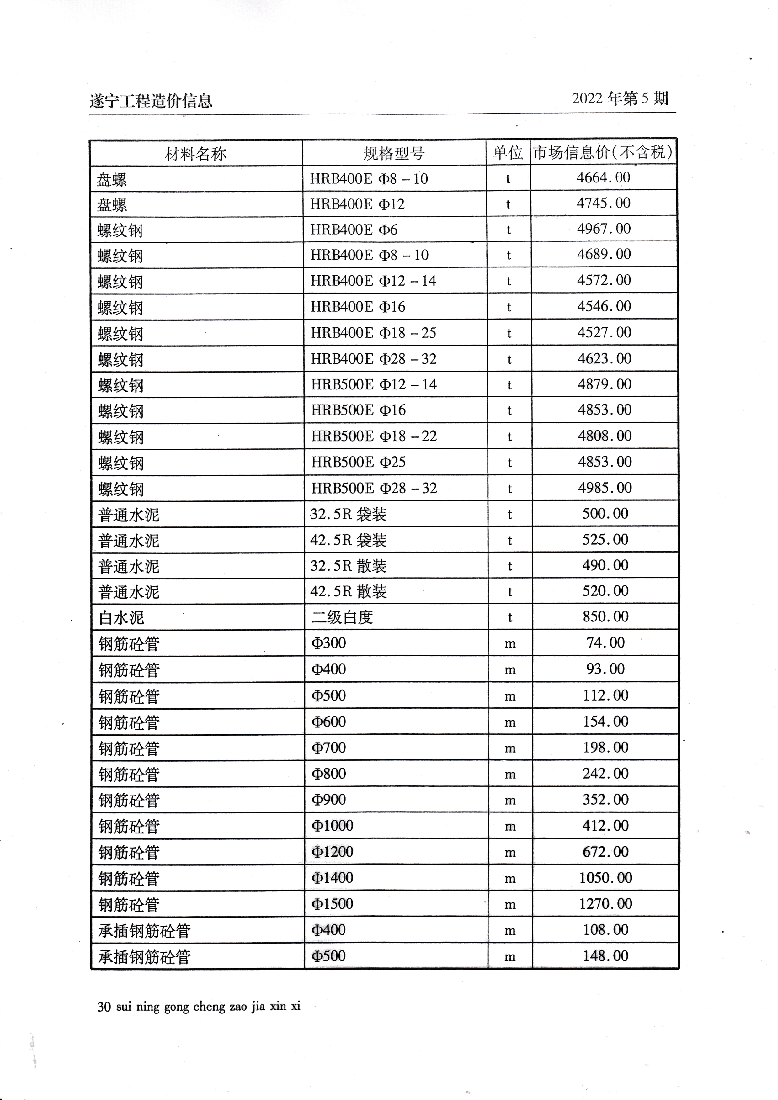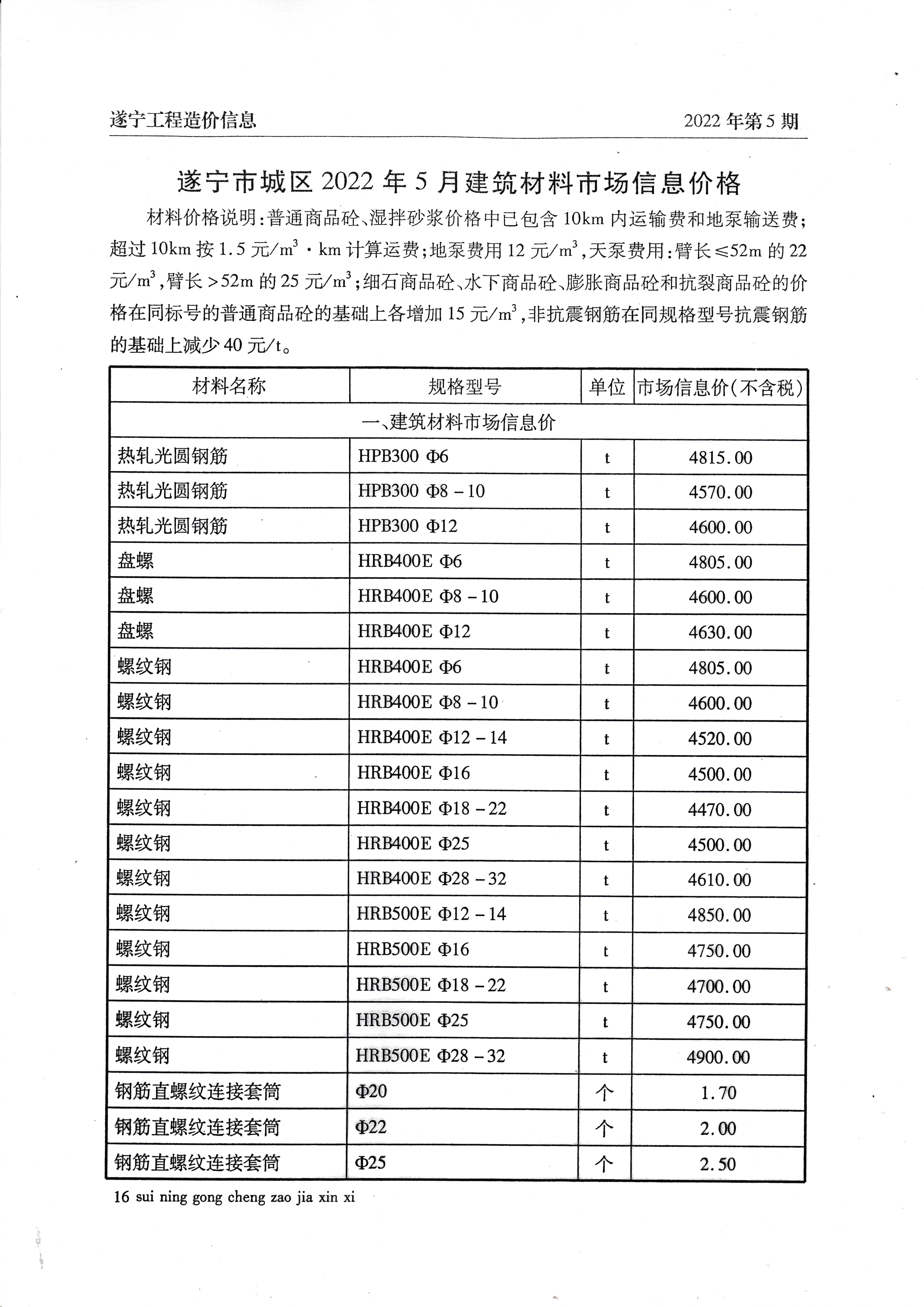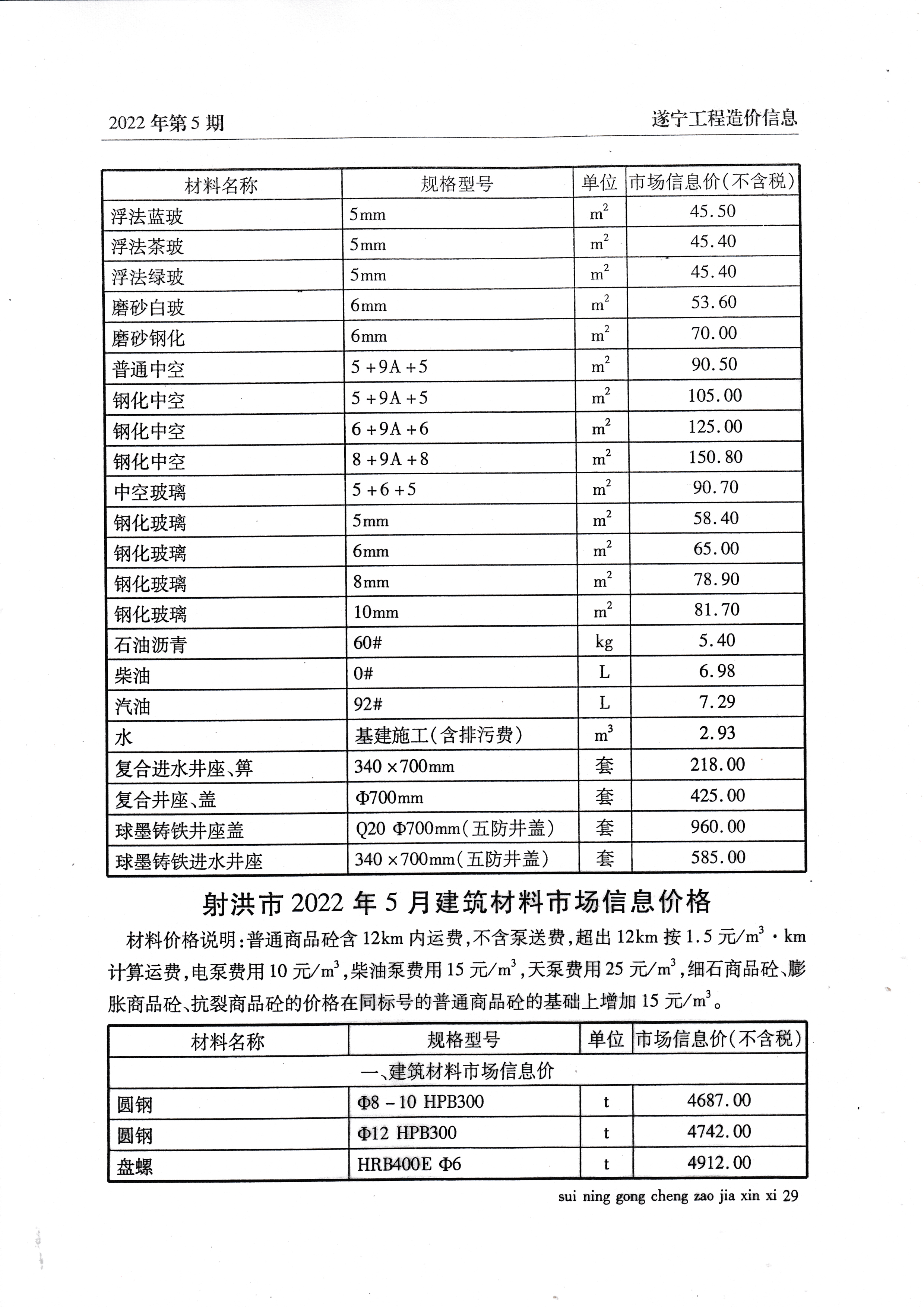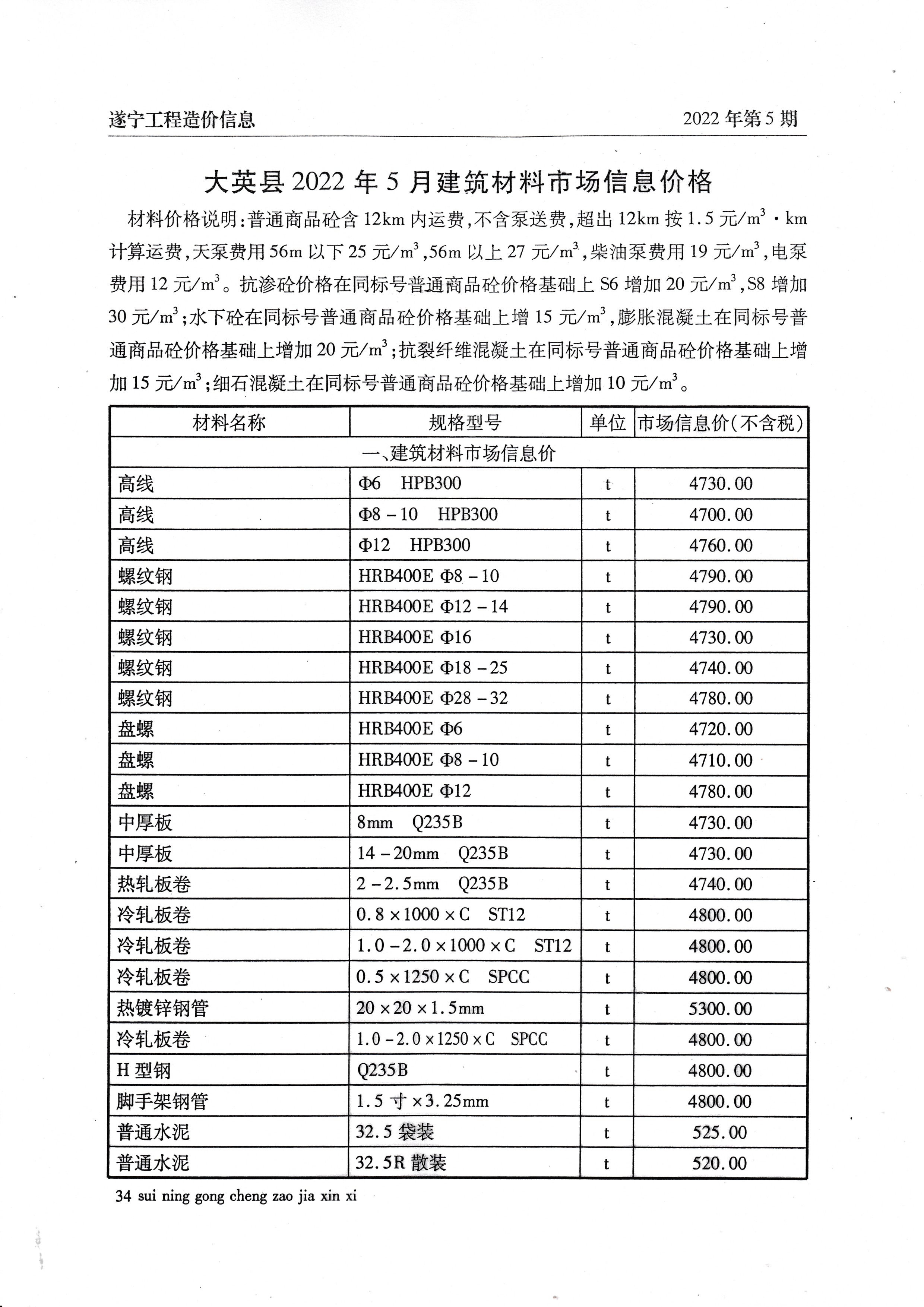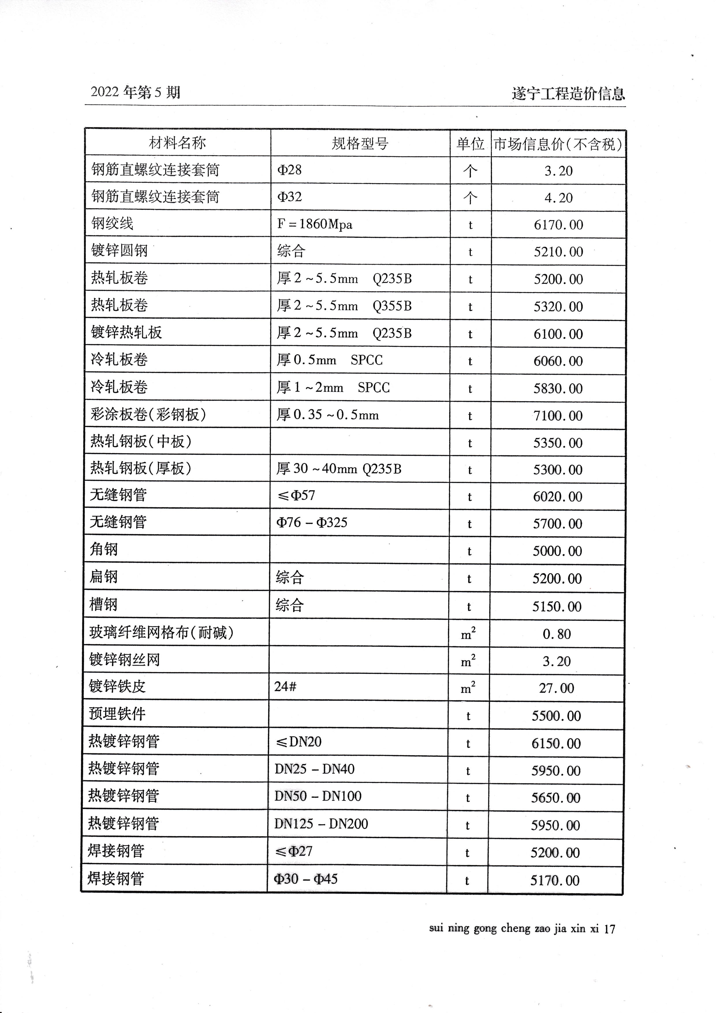 2022年5月建材价格