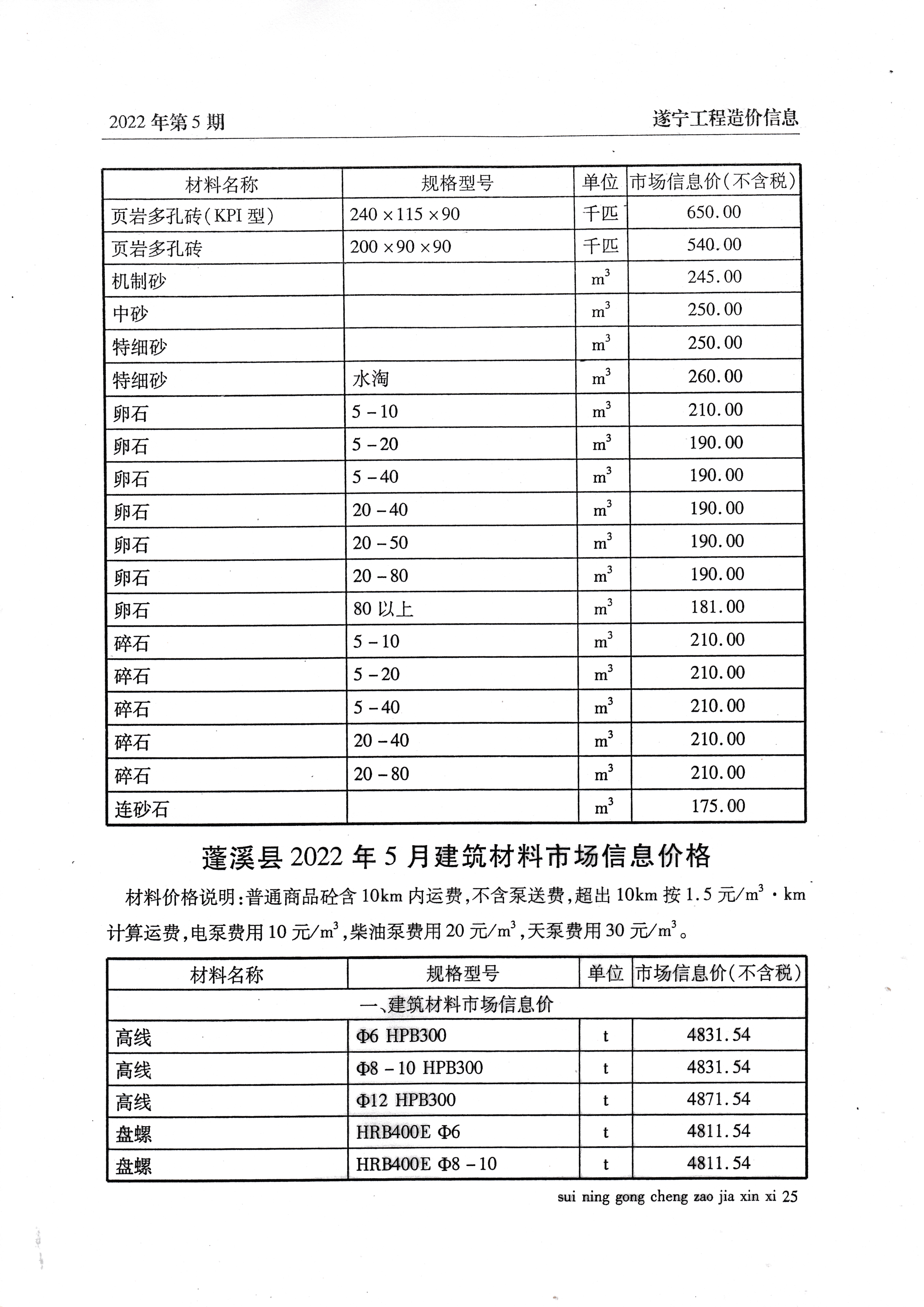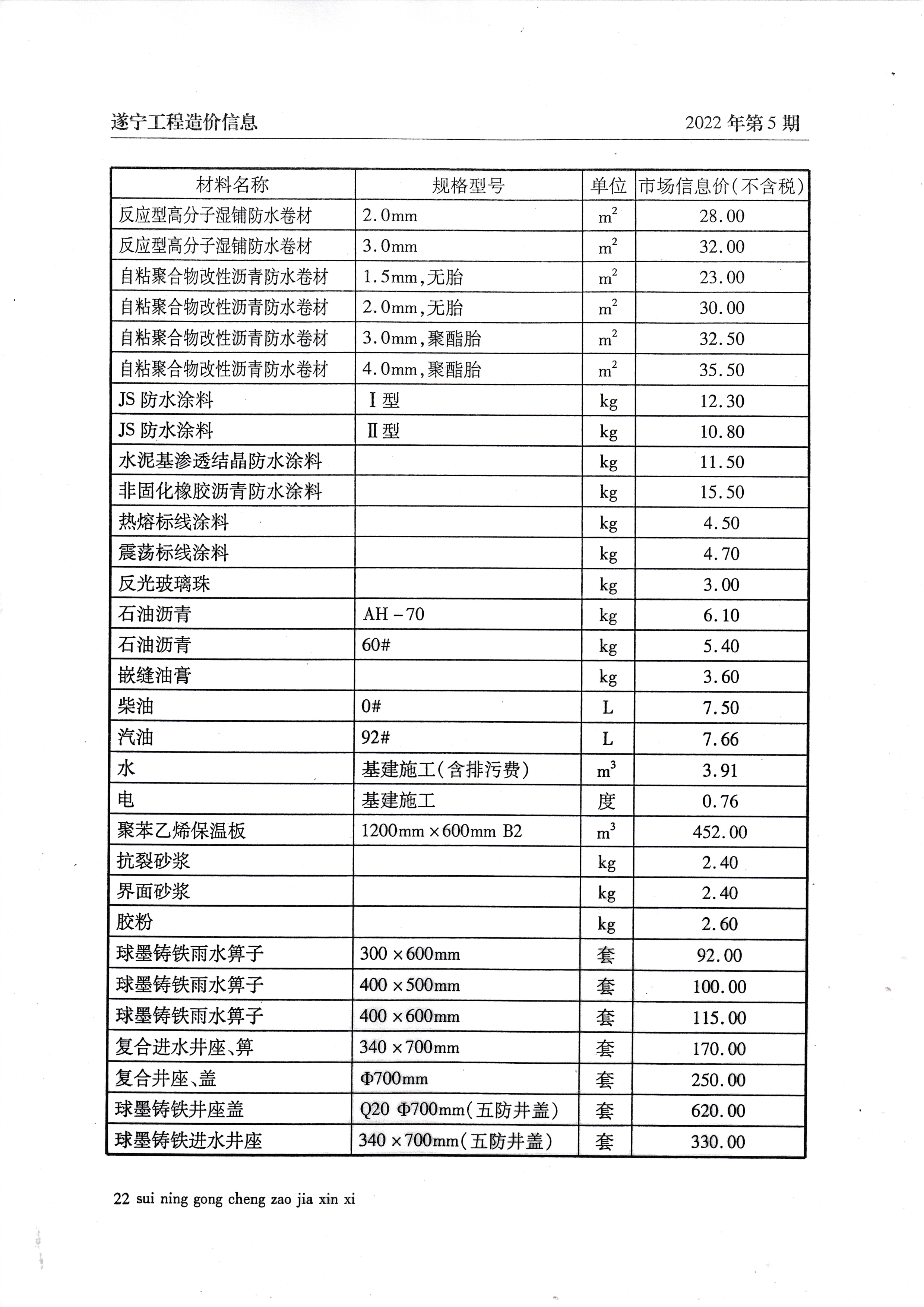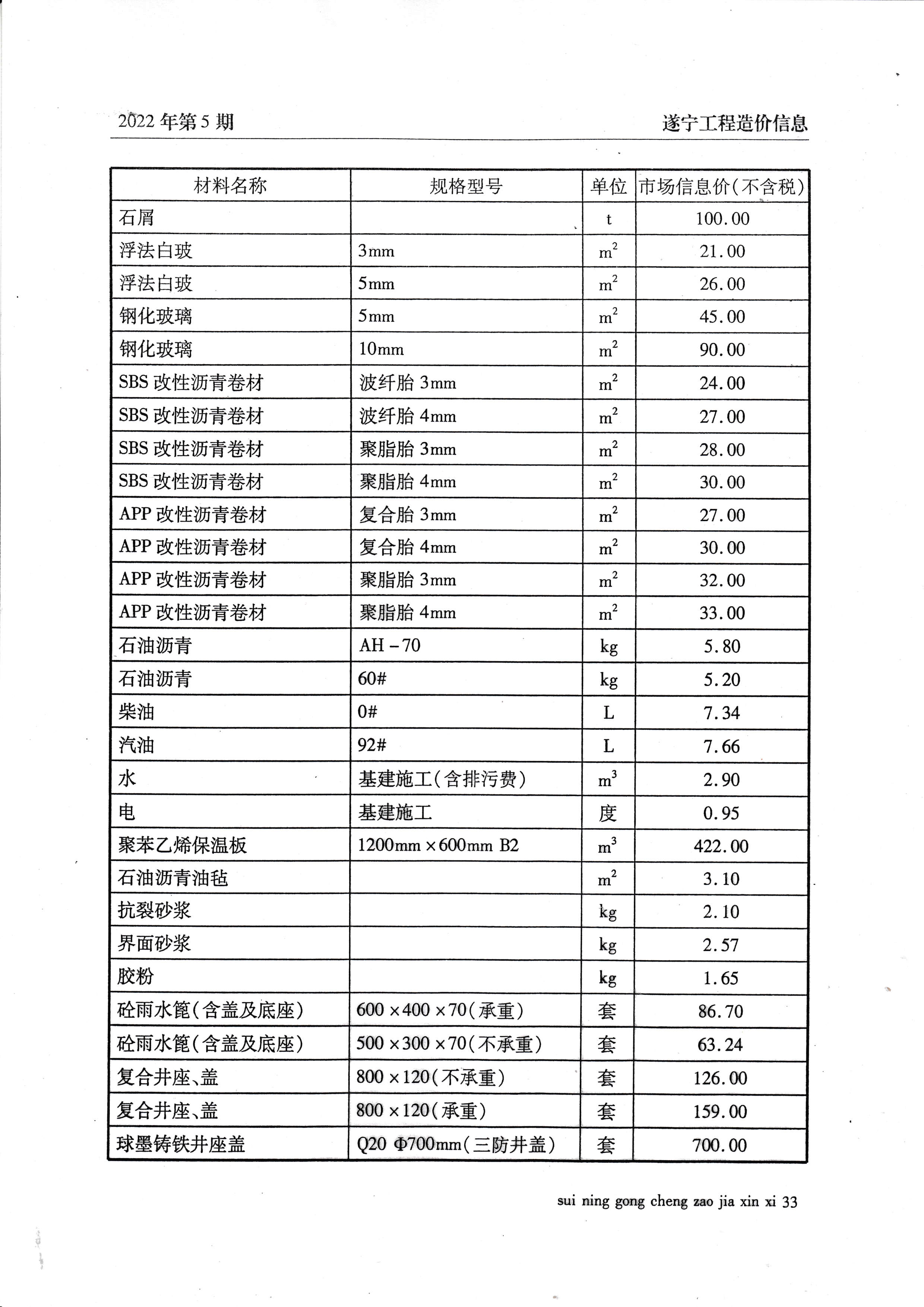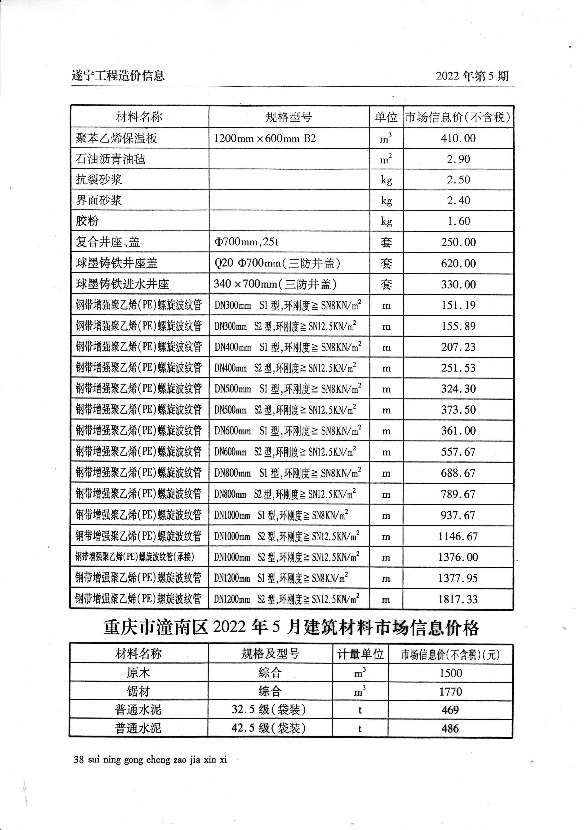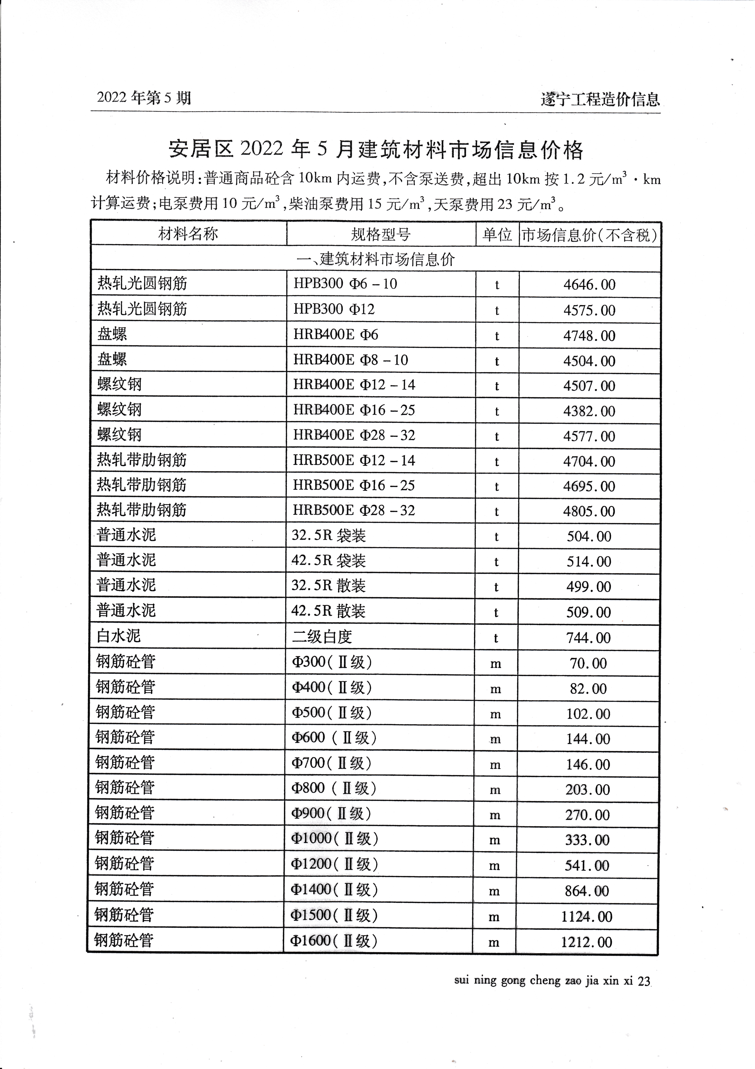 2022年5月建材价格