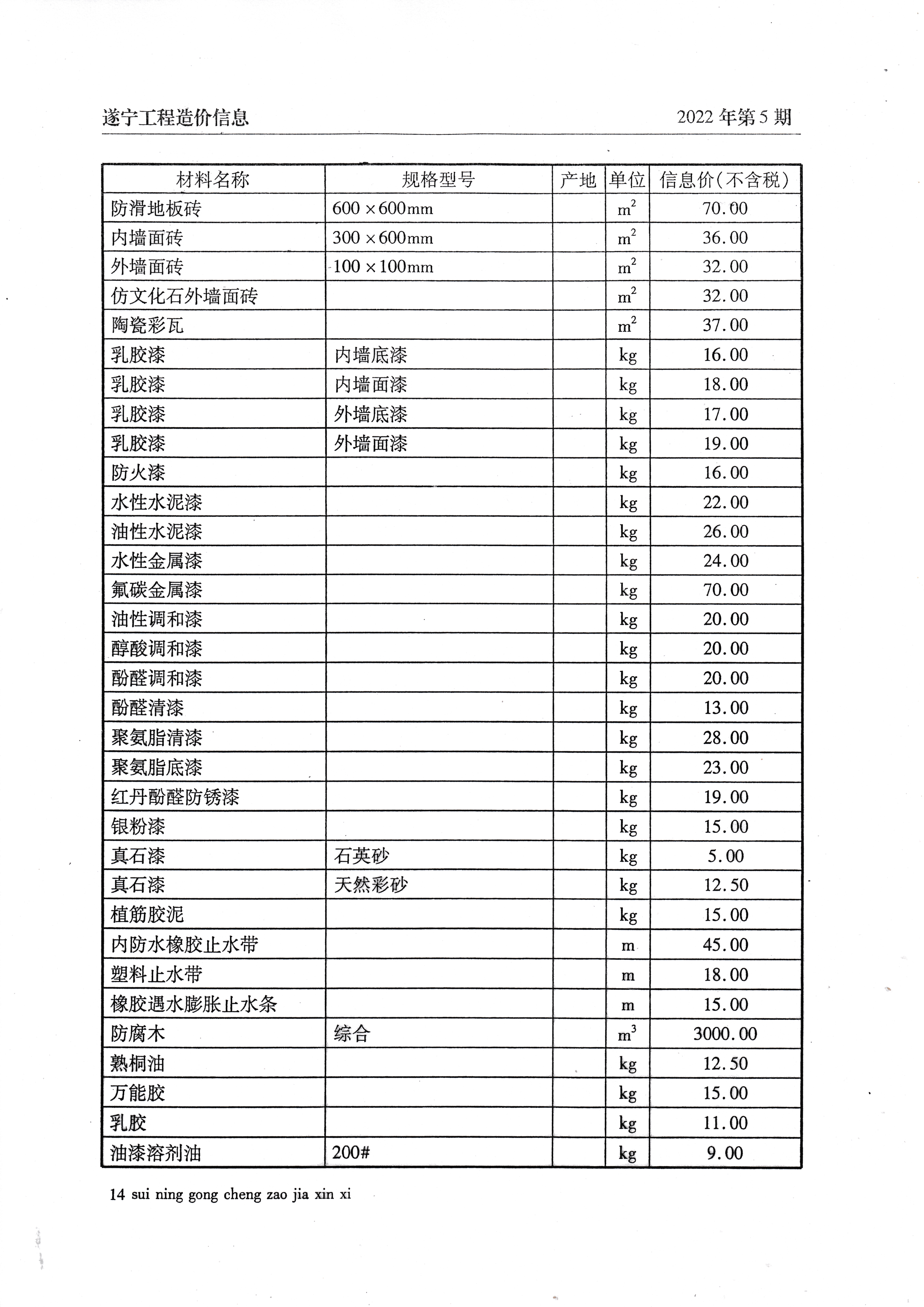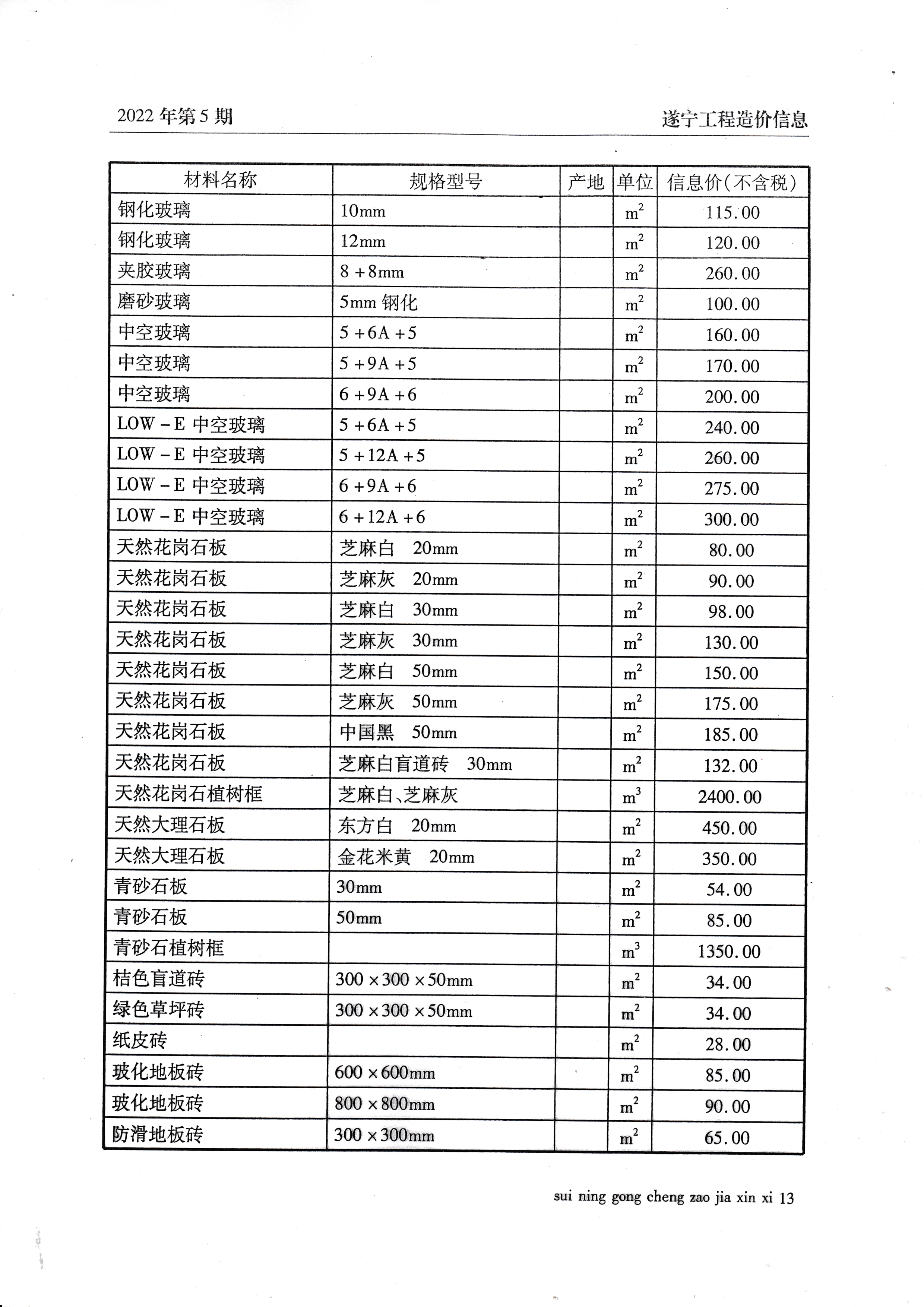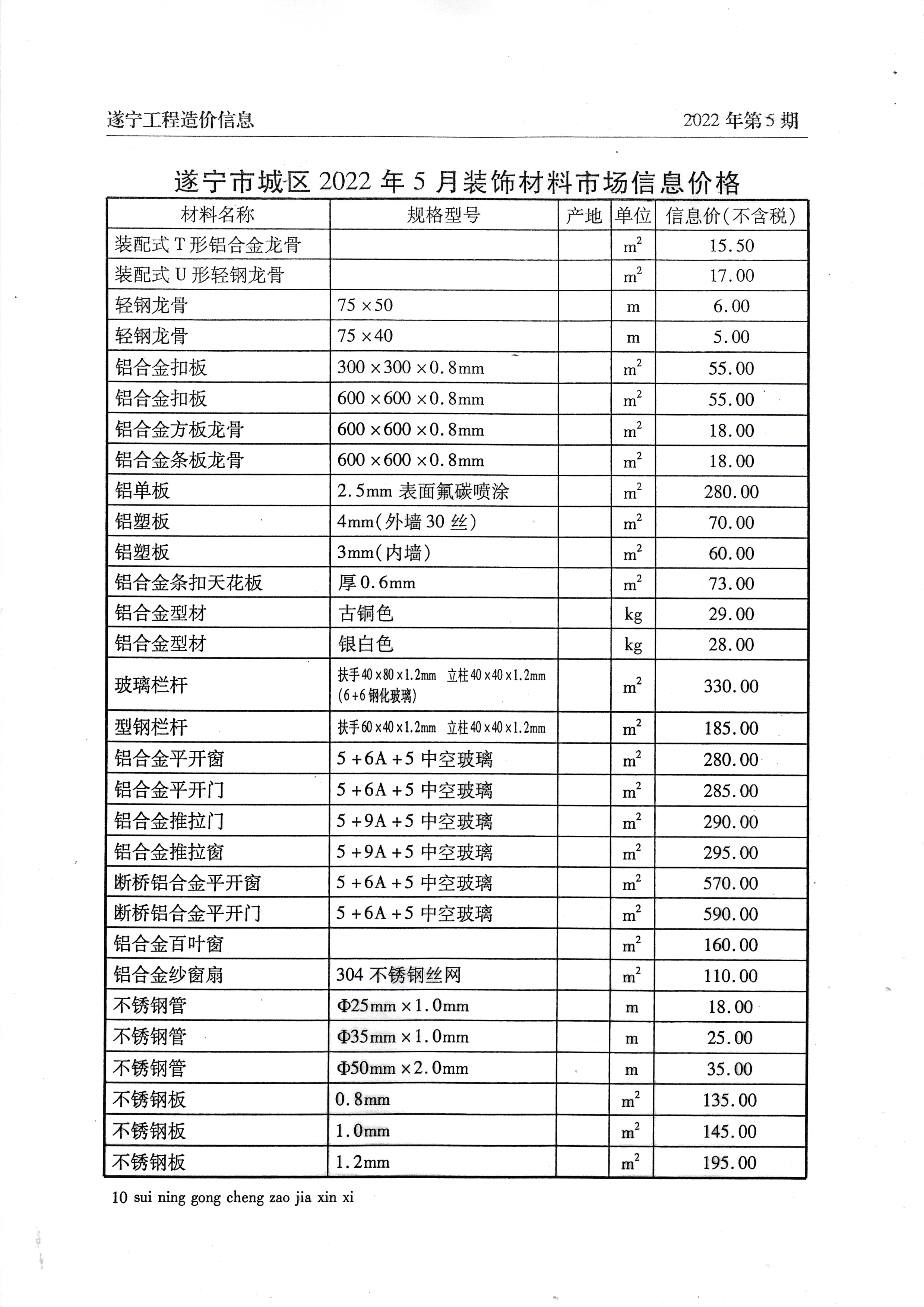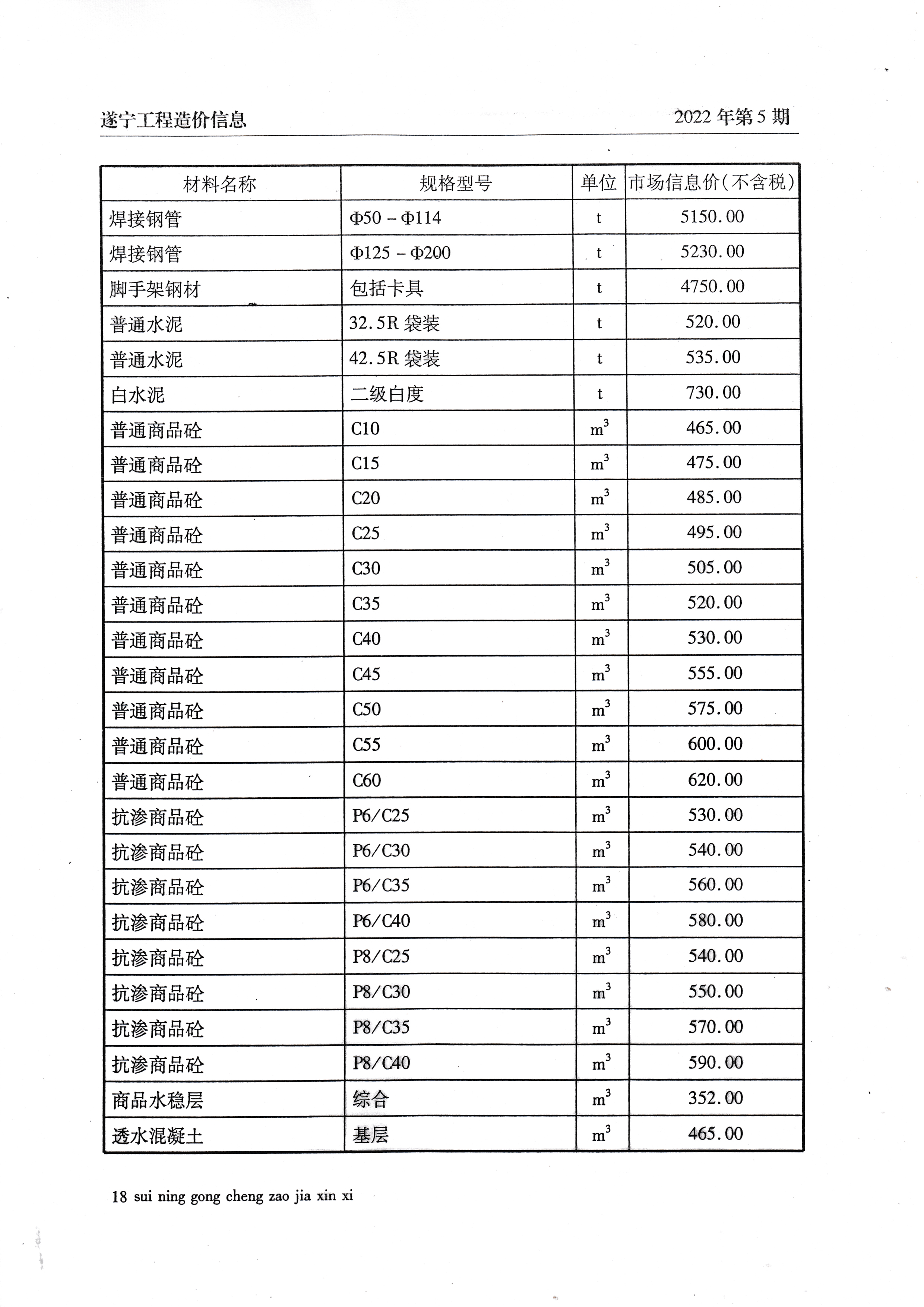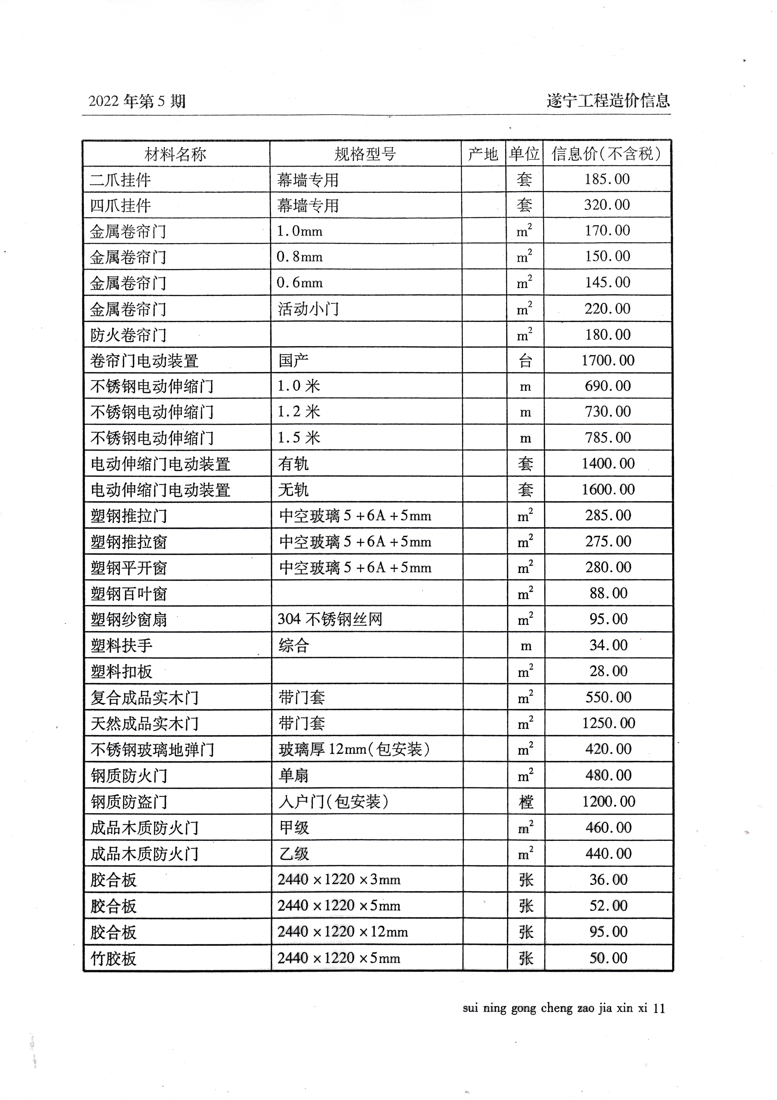 2022年5月建材价格