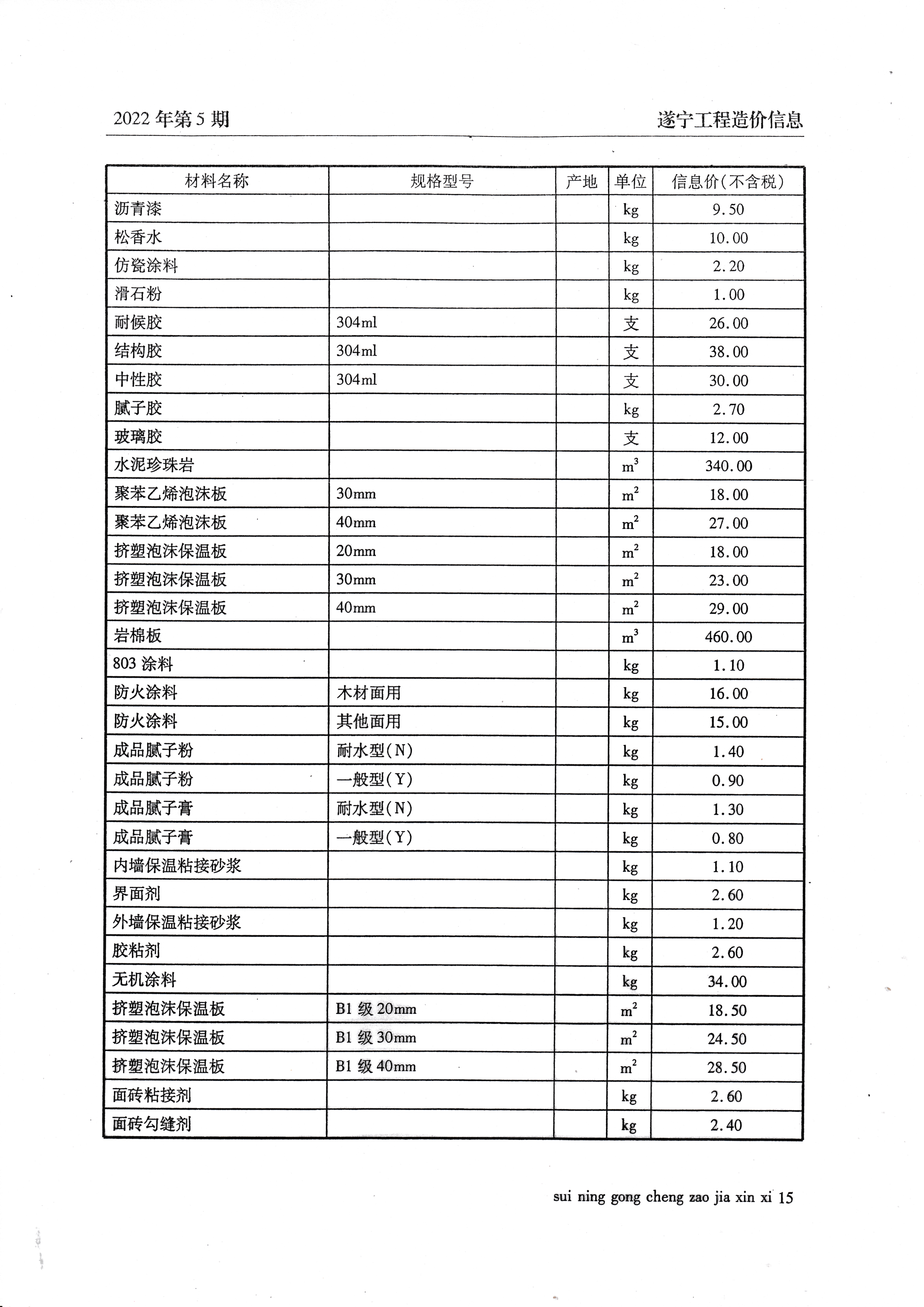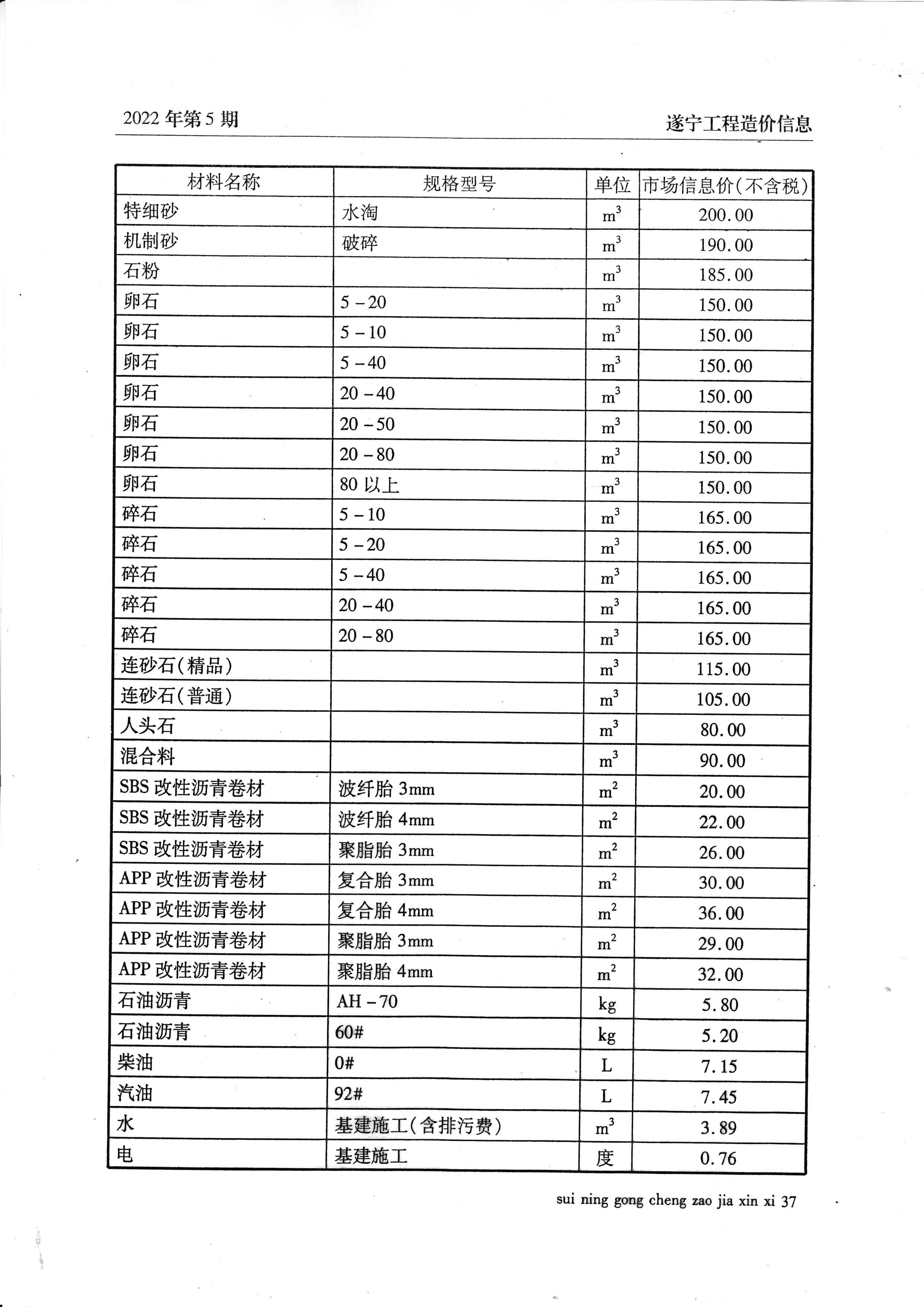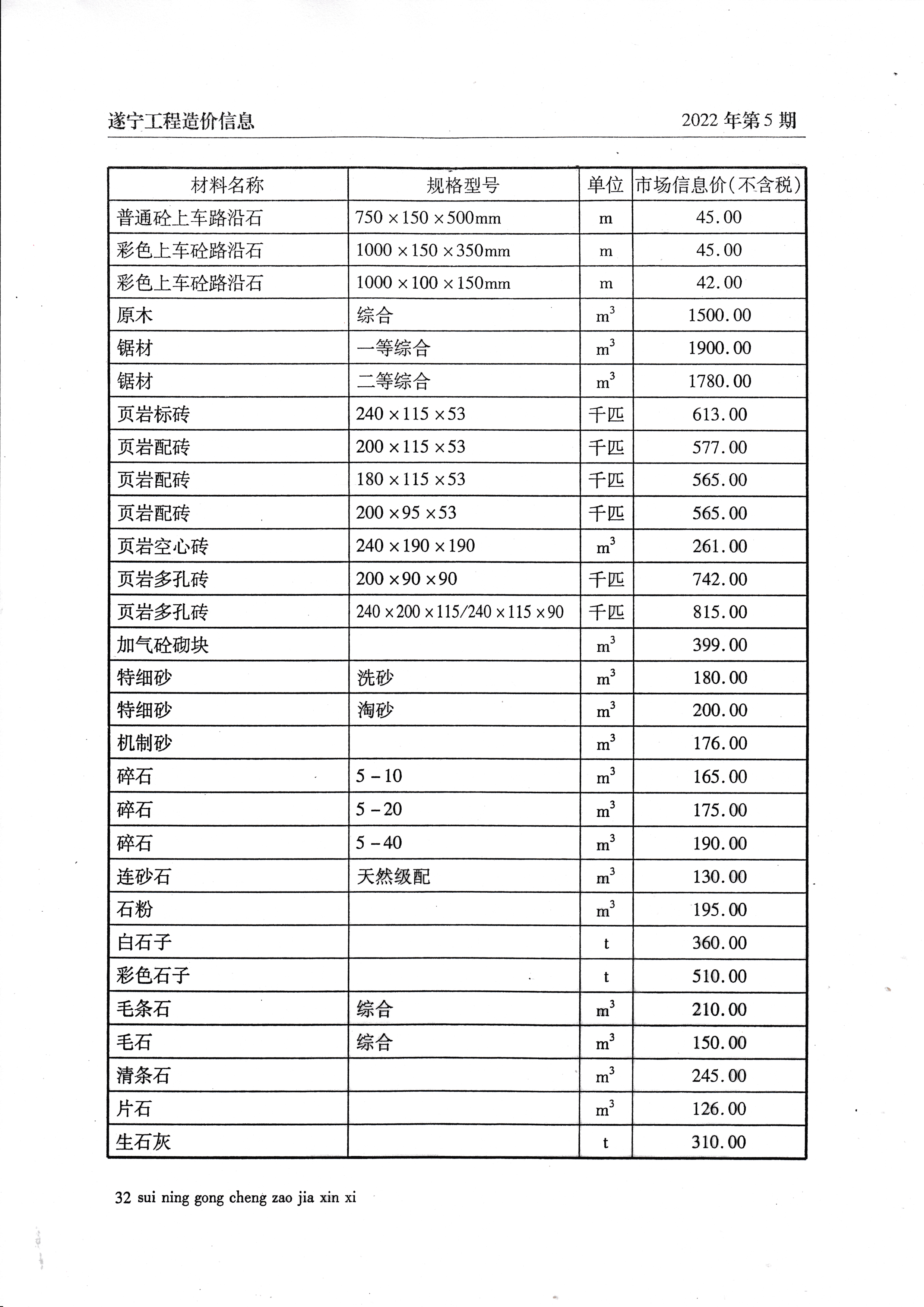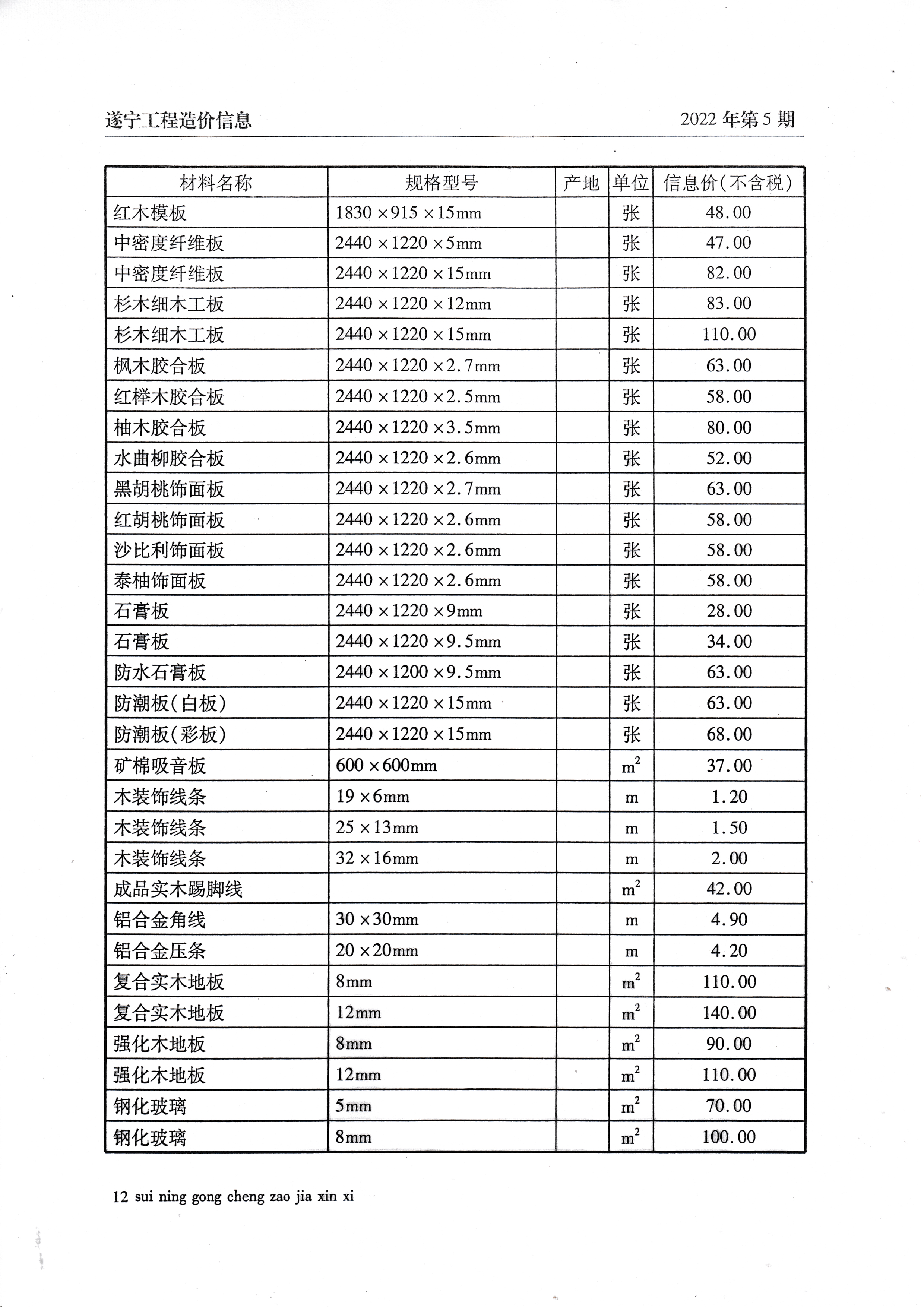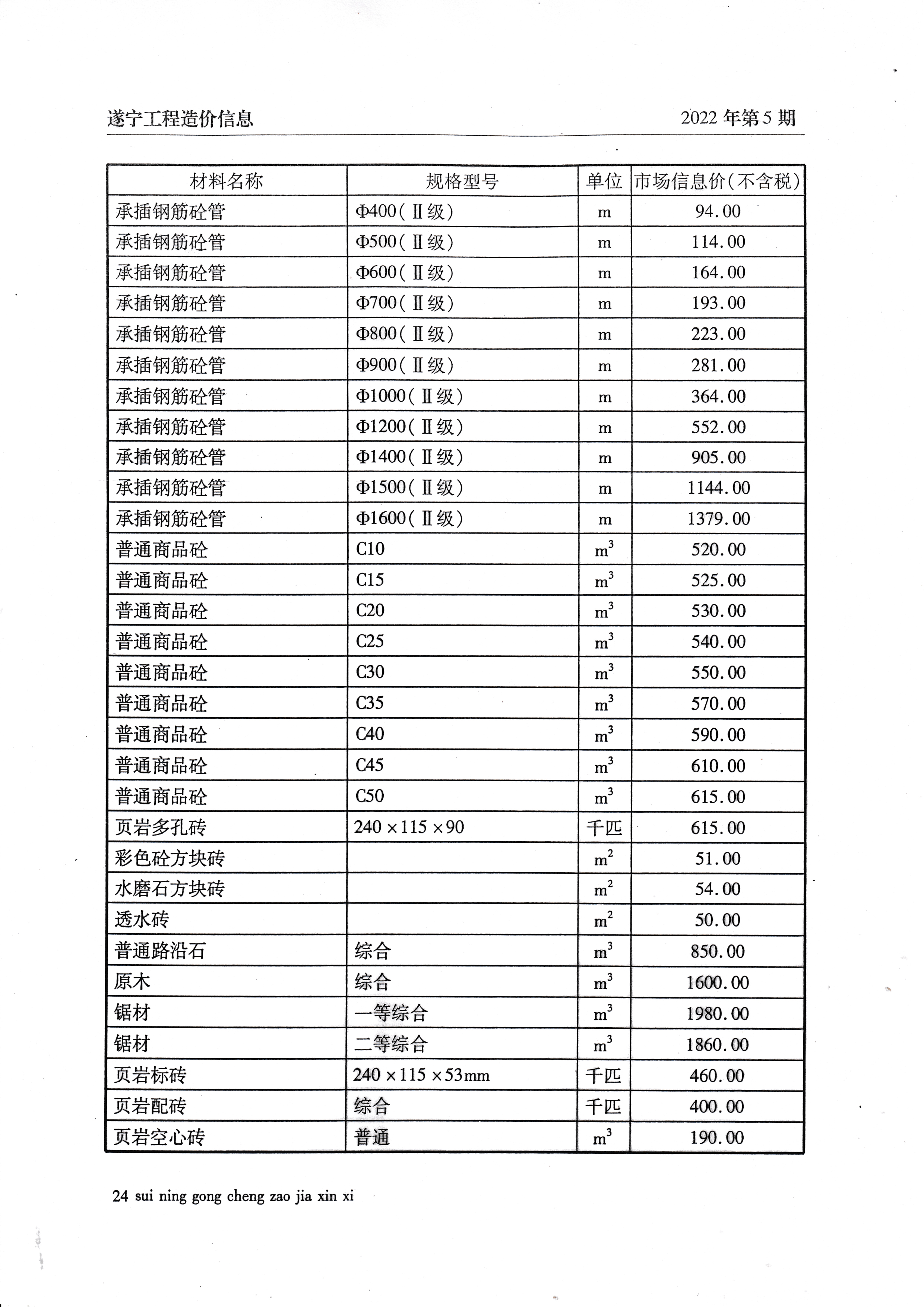 2022年5月建材价格