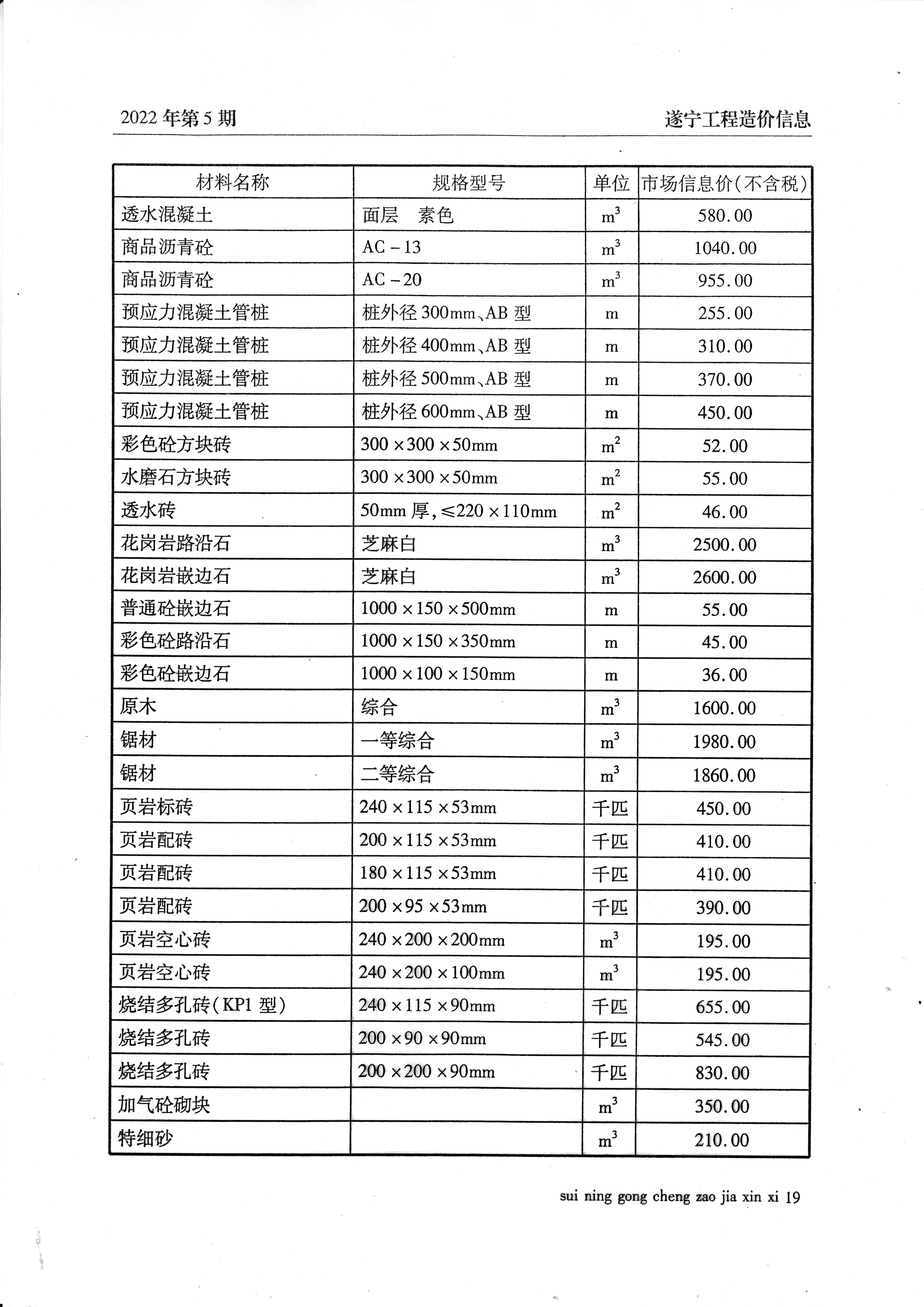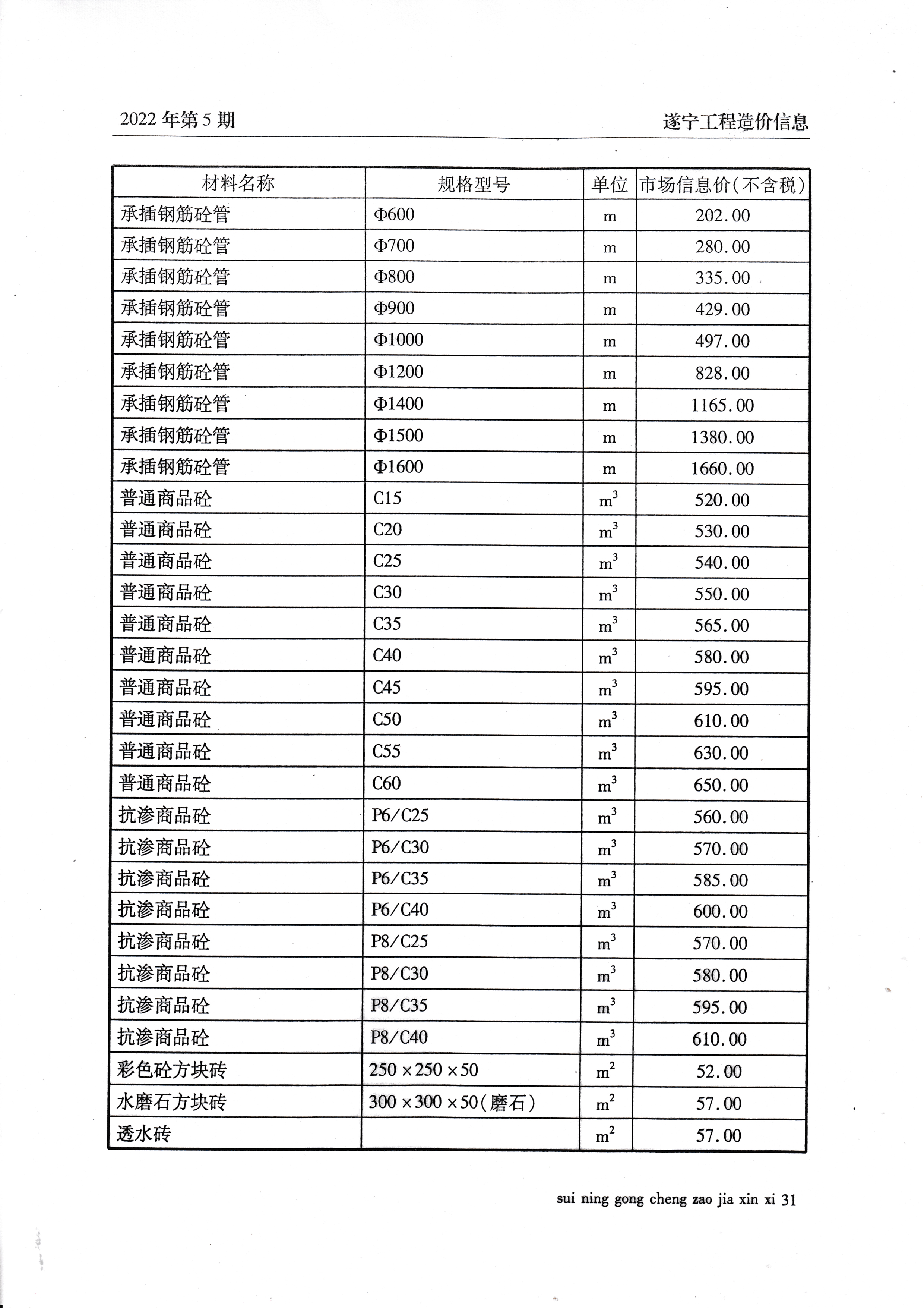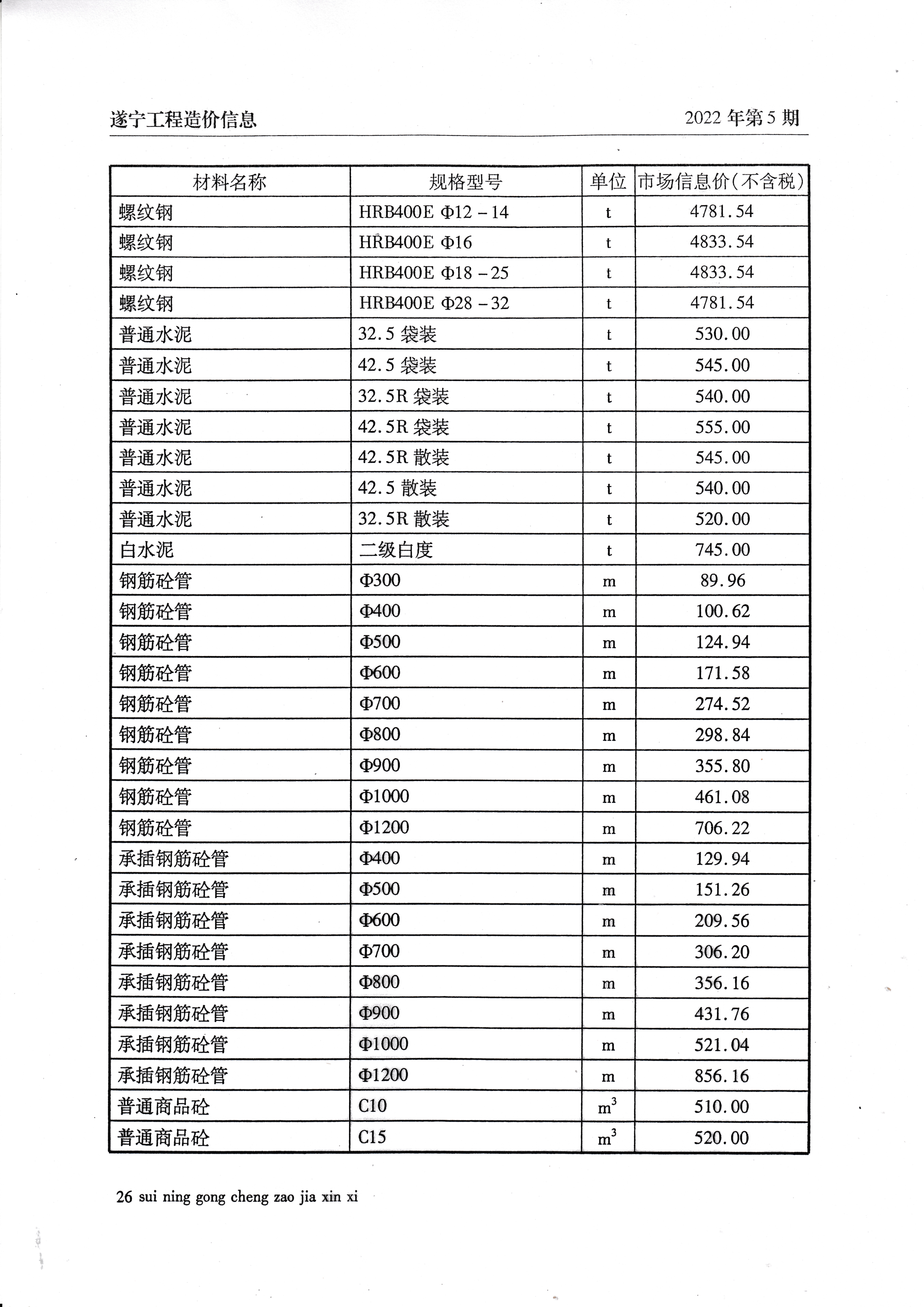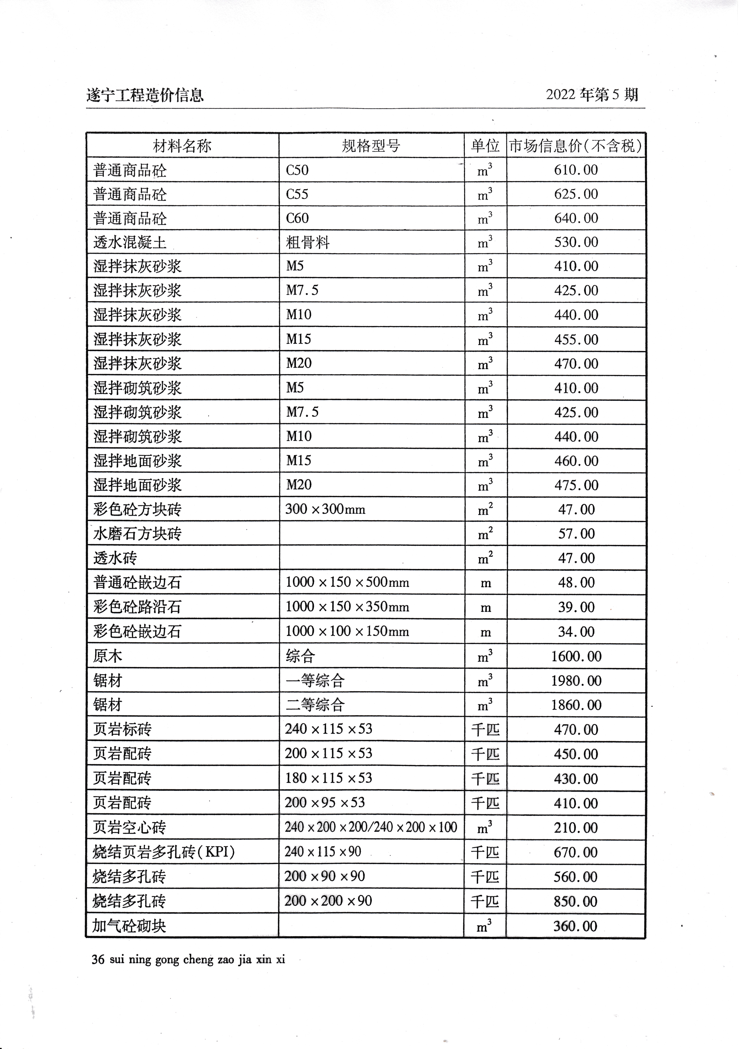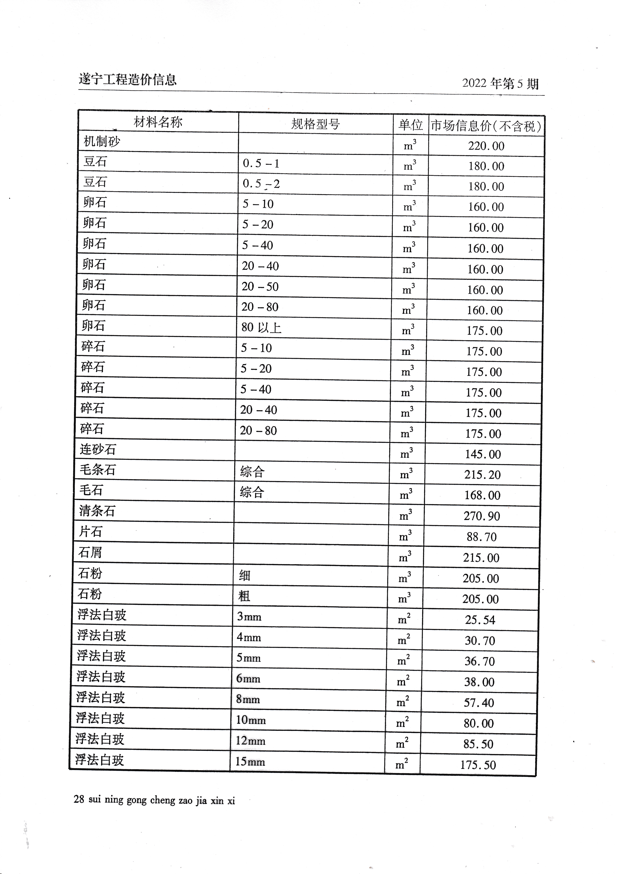 2022年5月建材价格