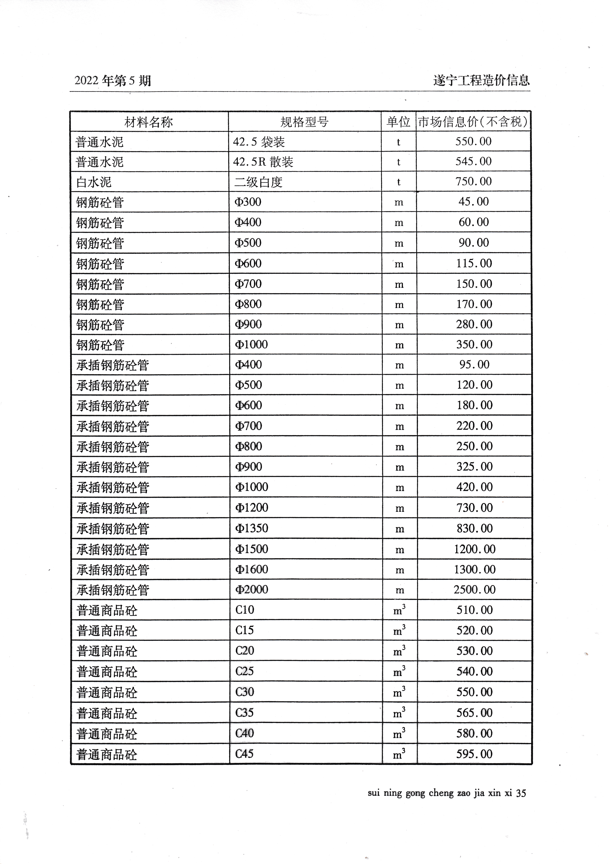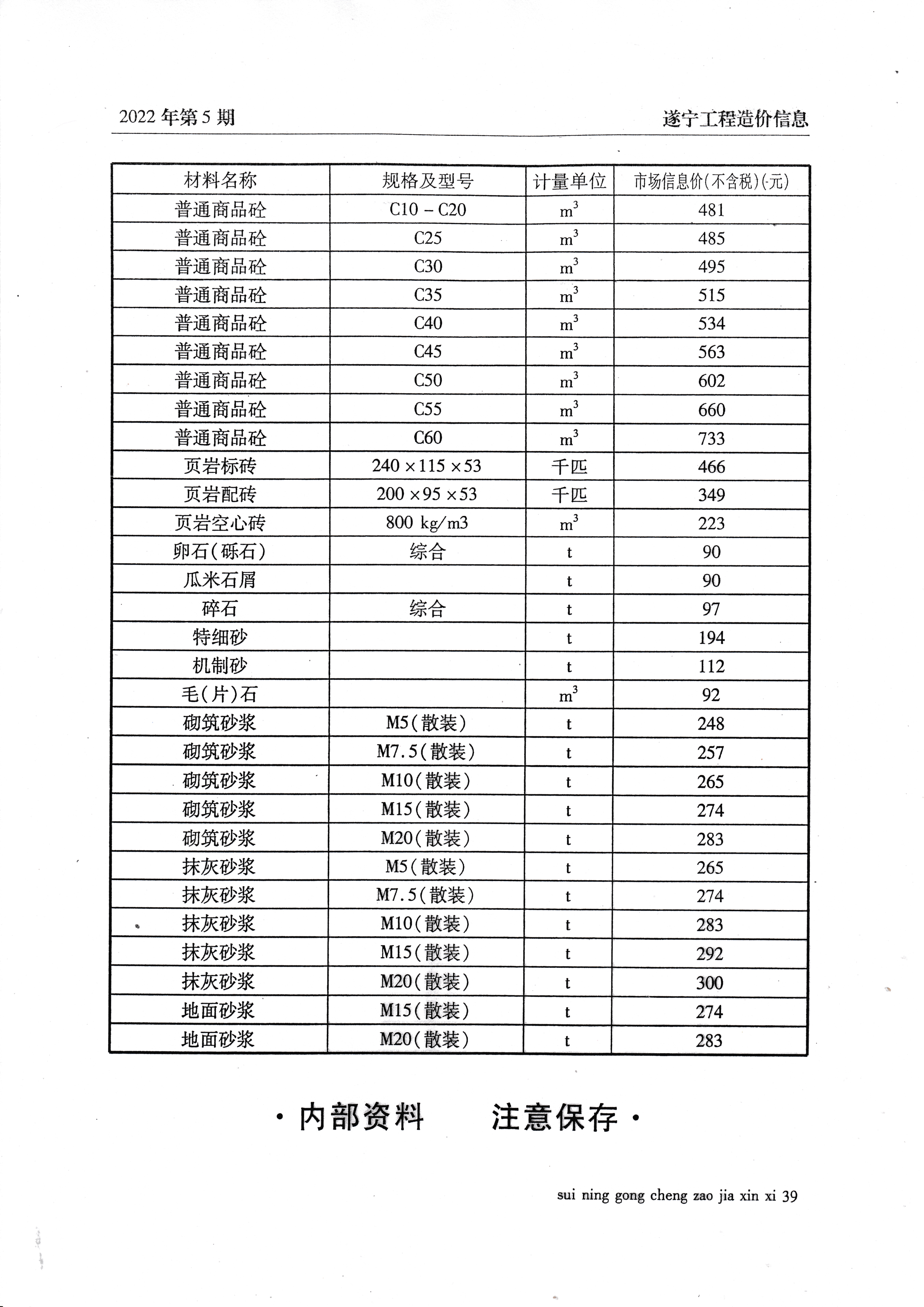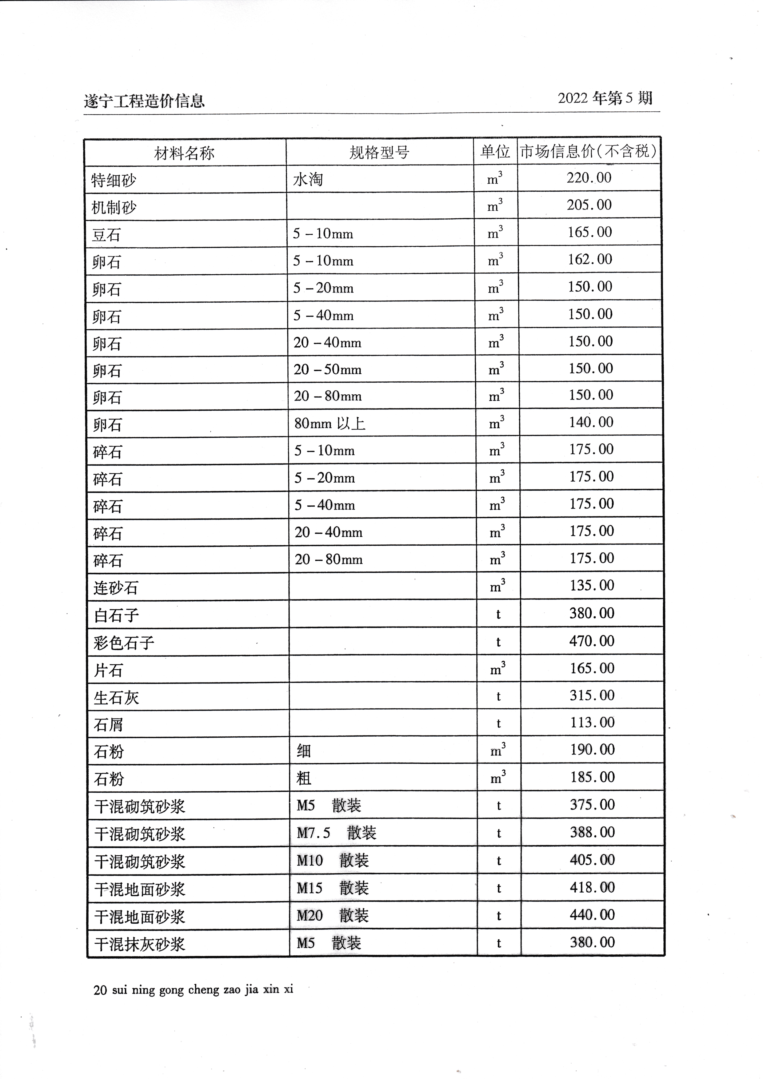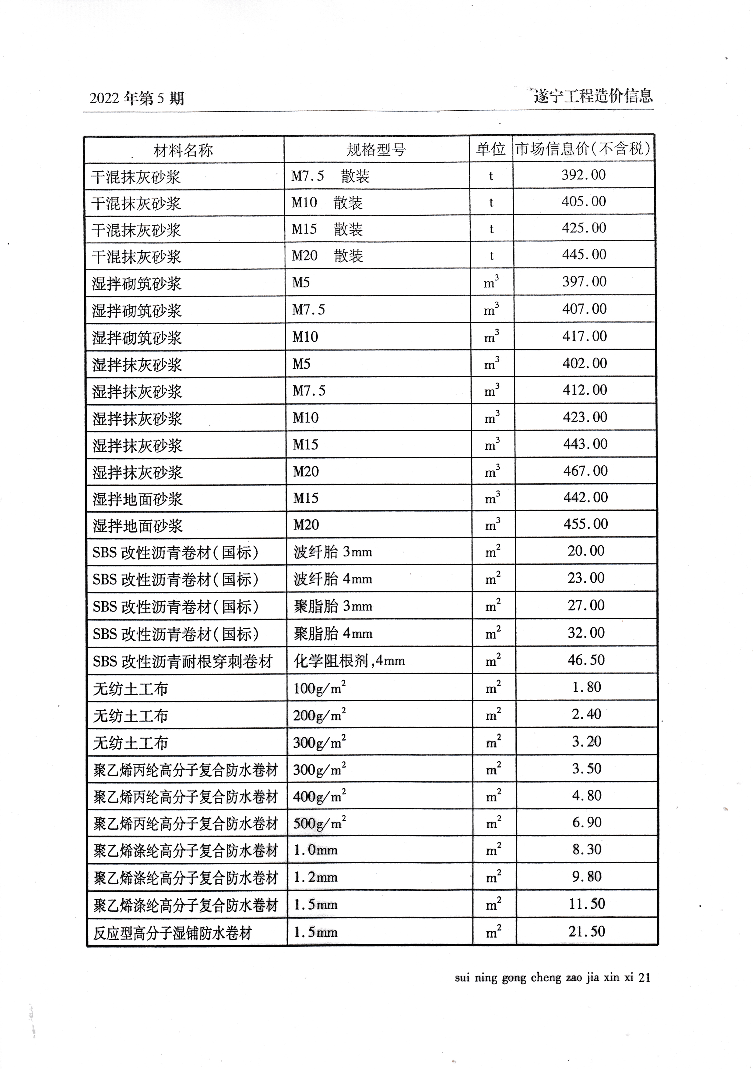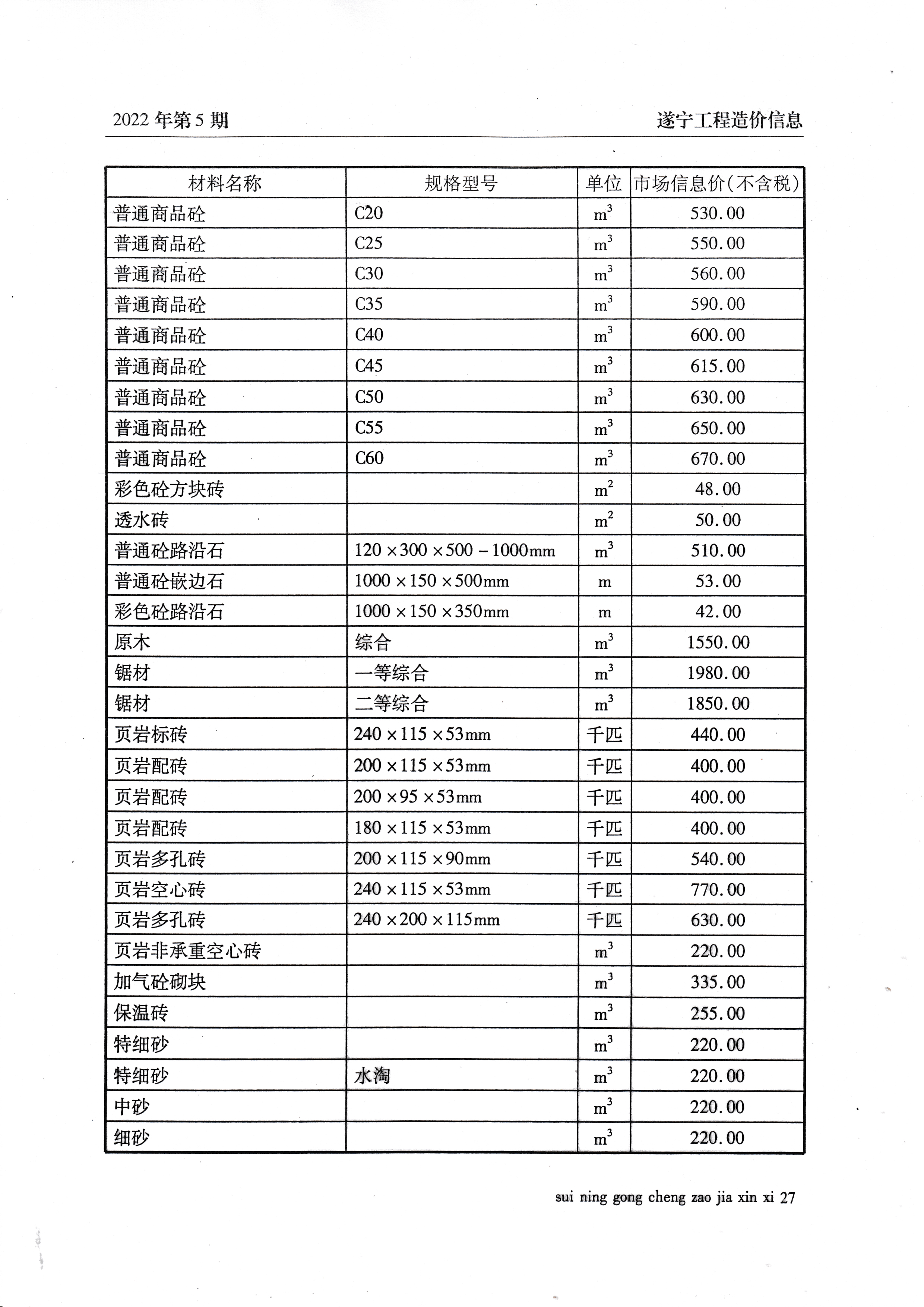 2022年5月建材价格