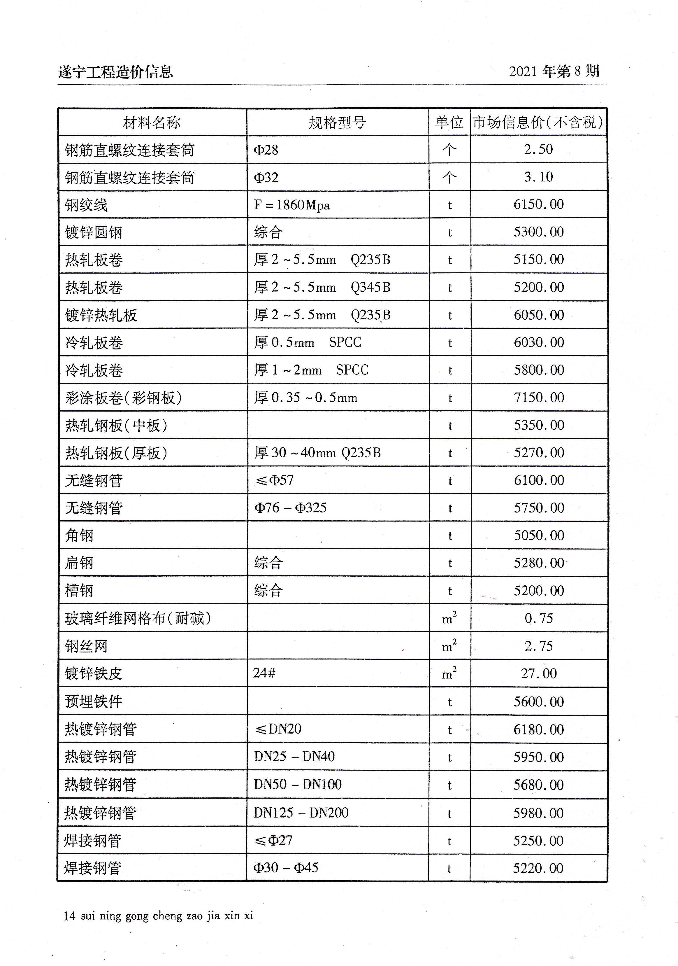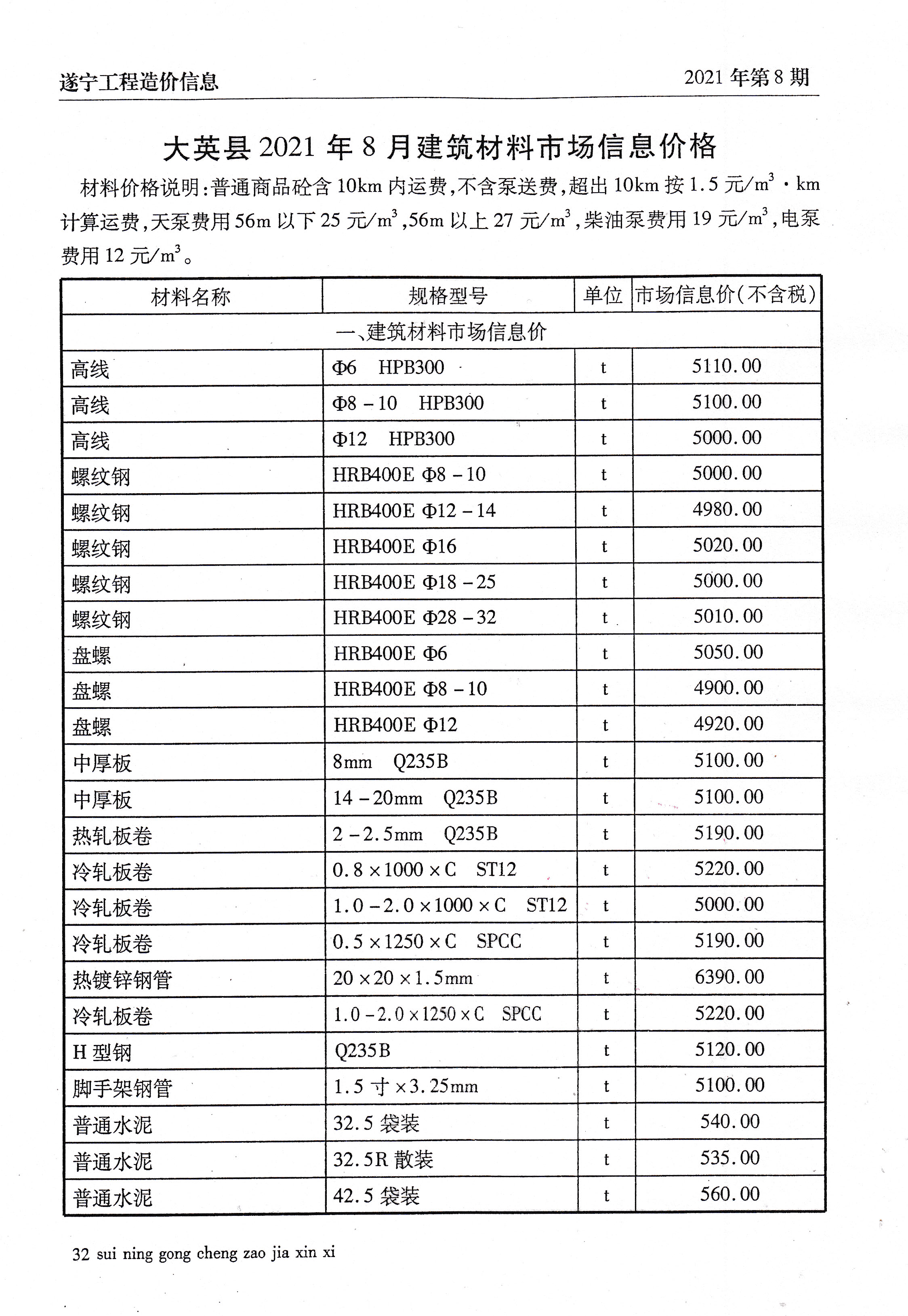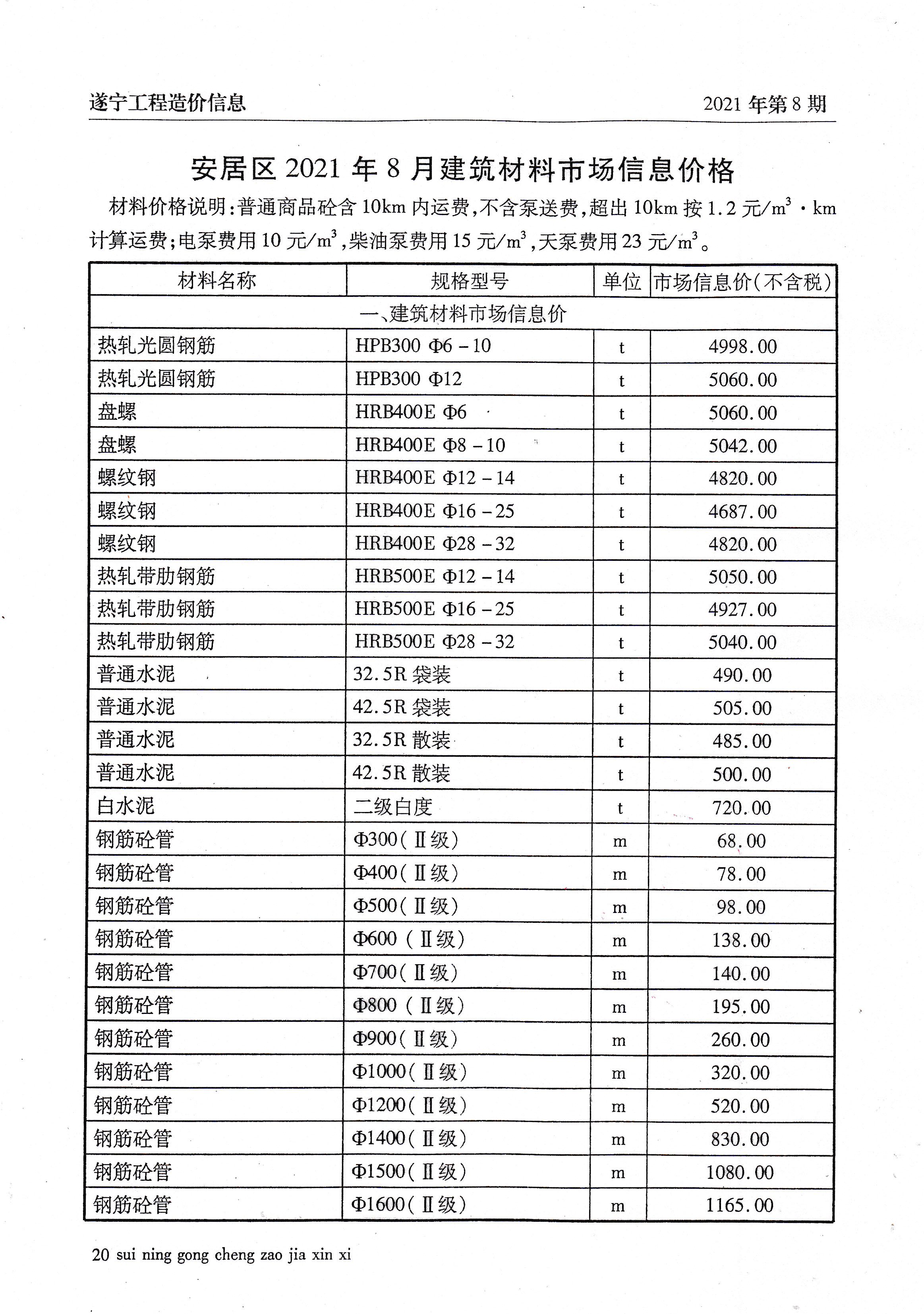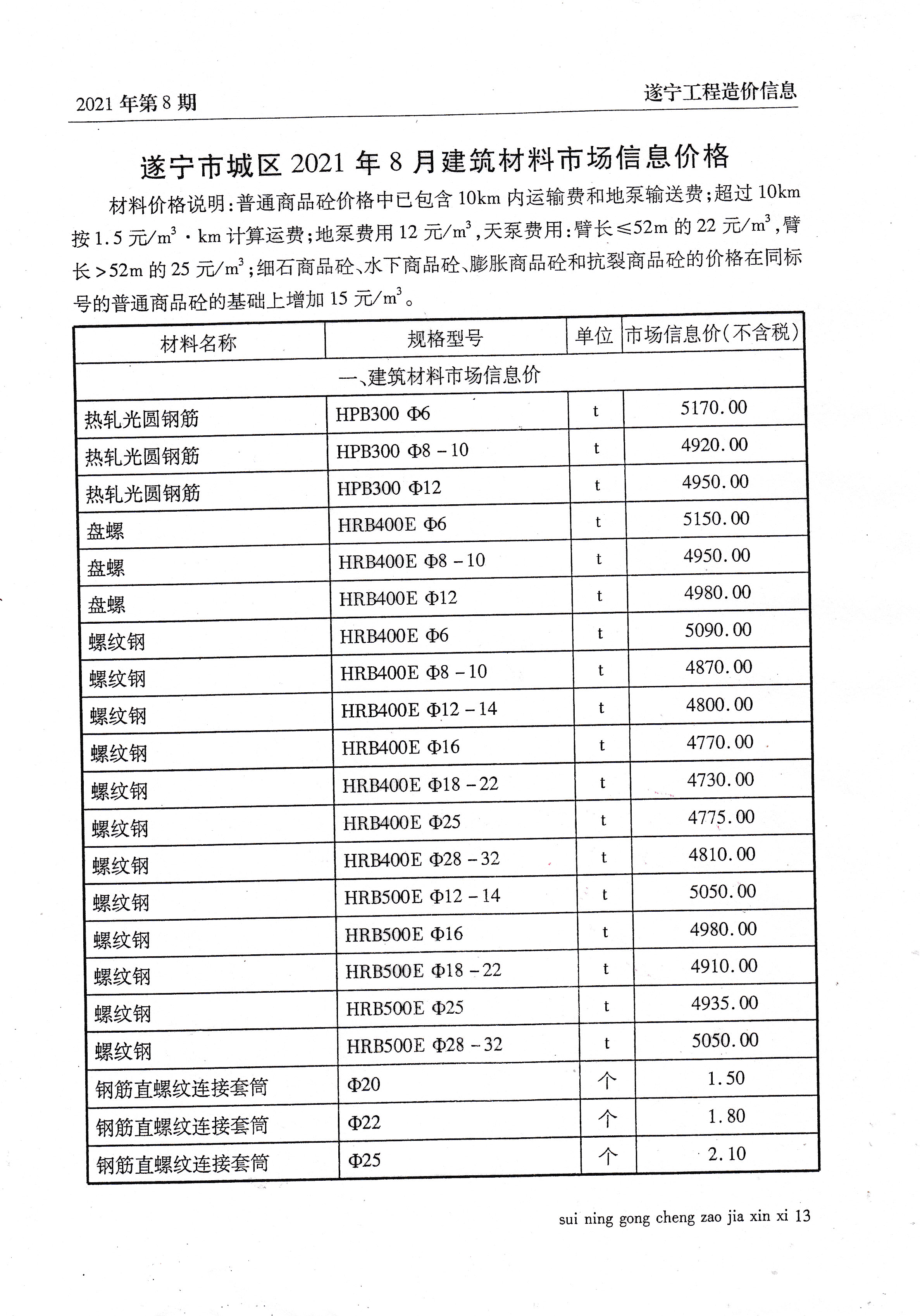 2021年8建材价格