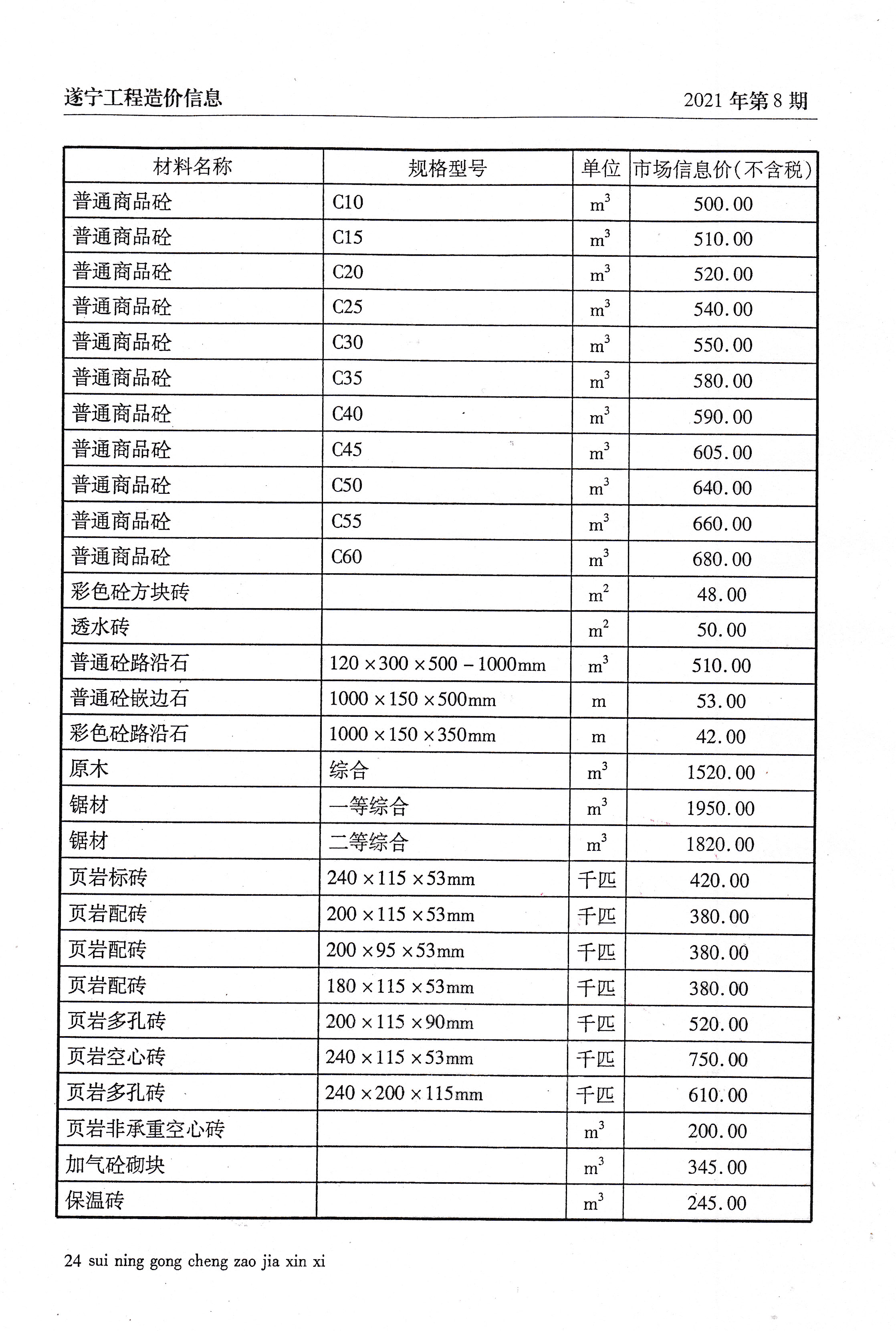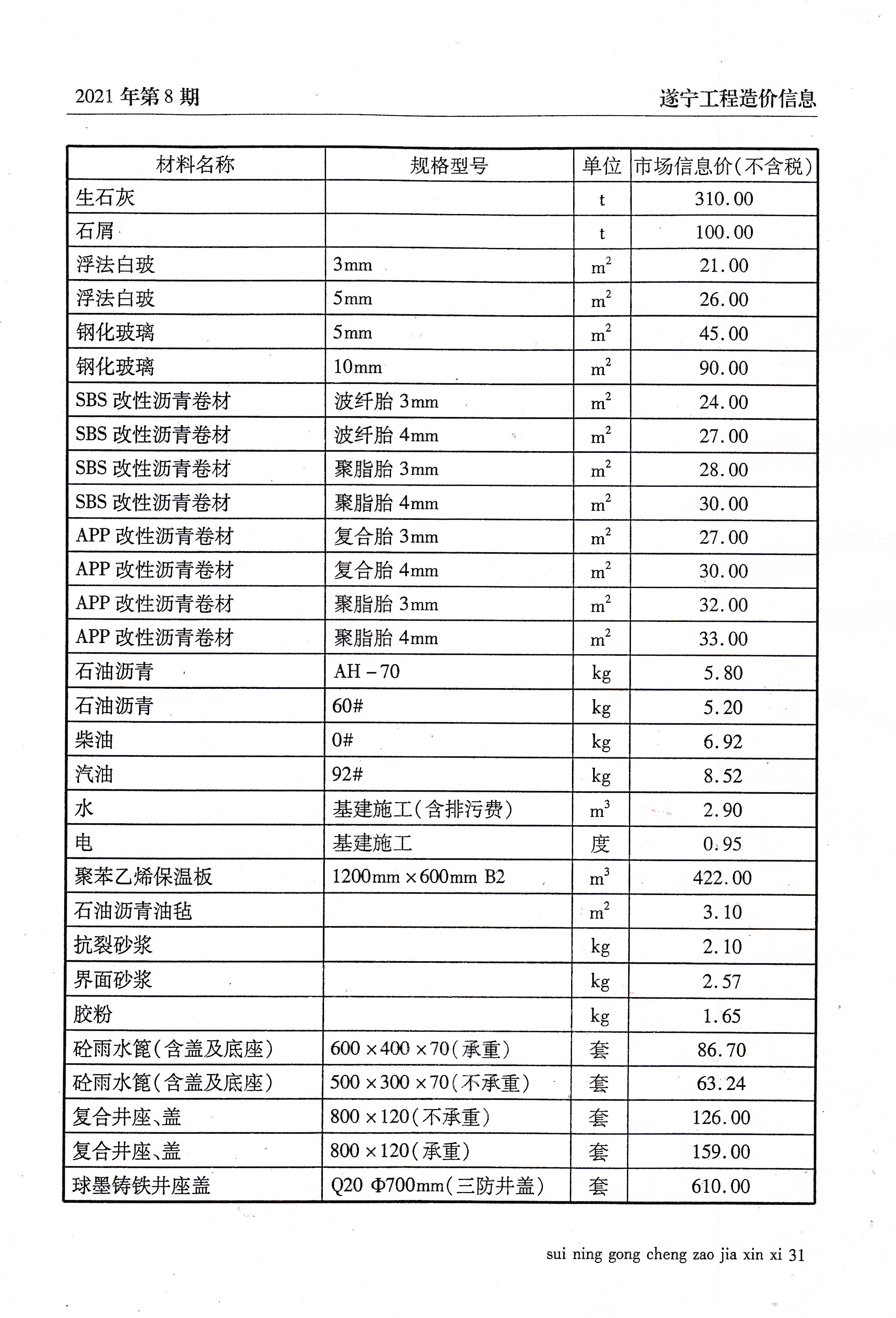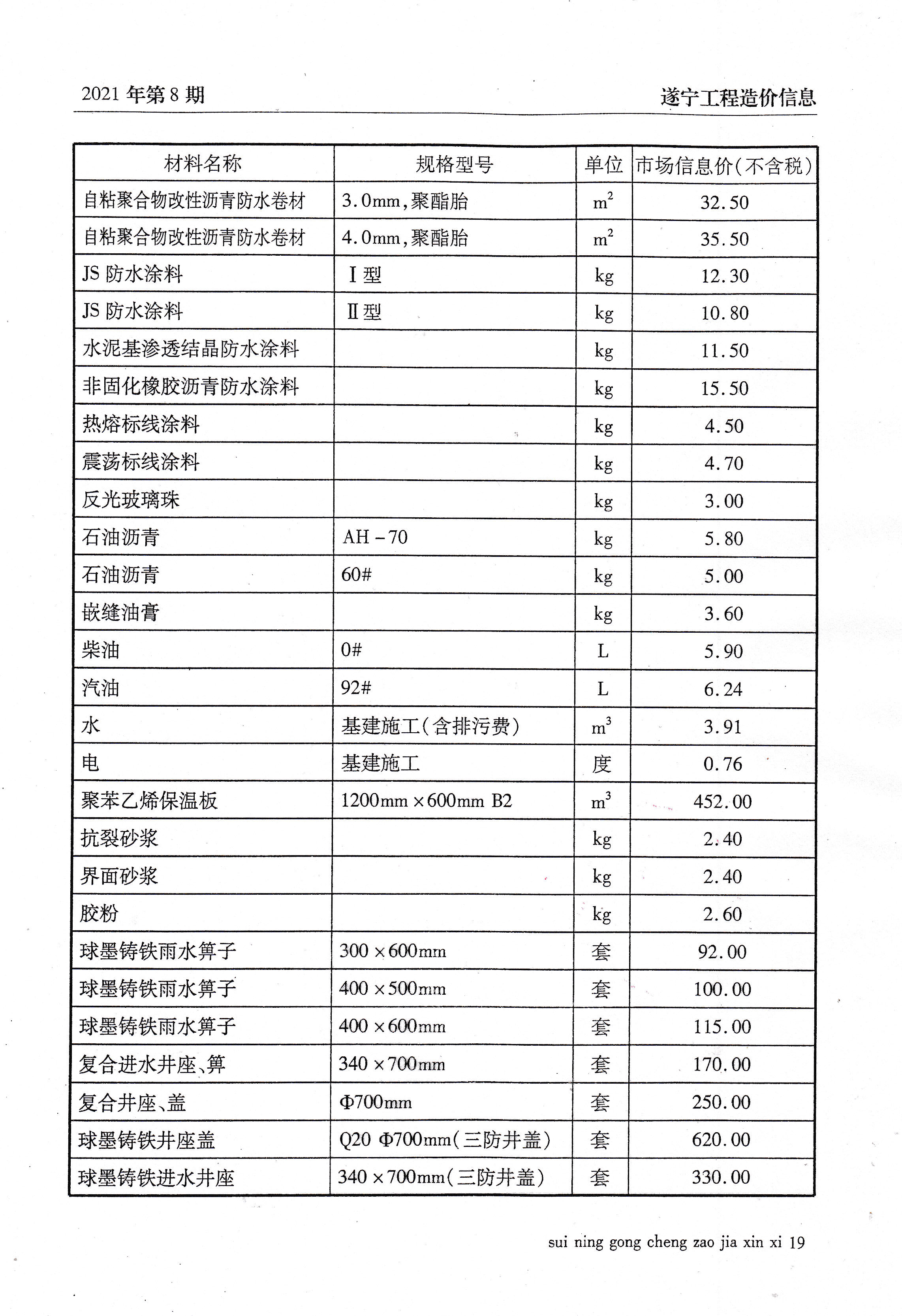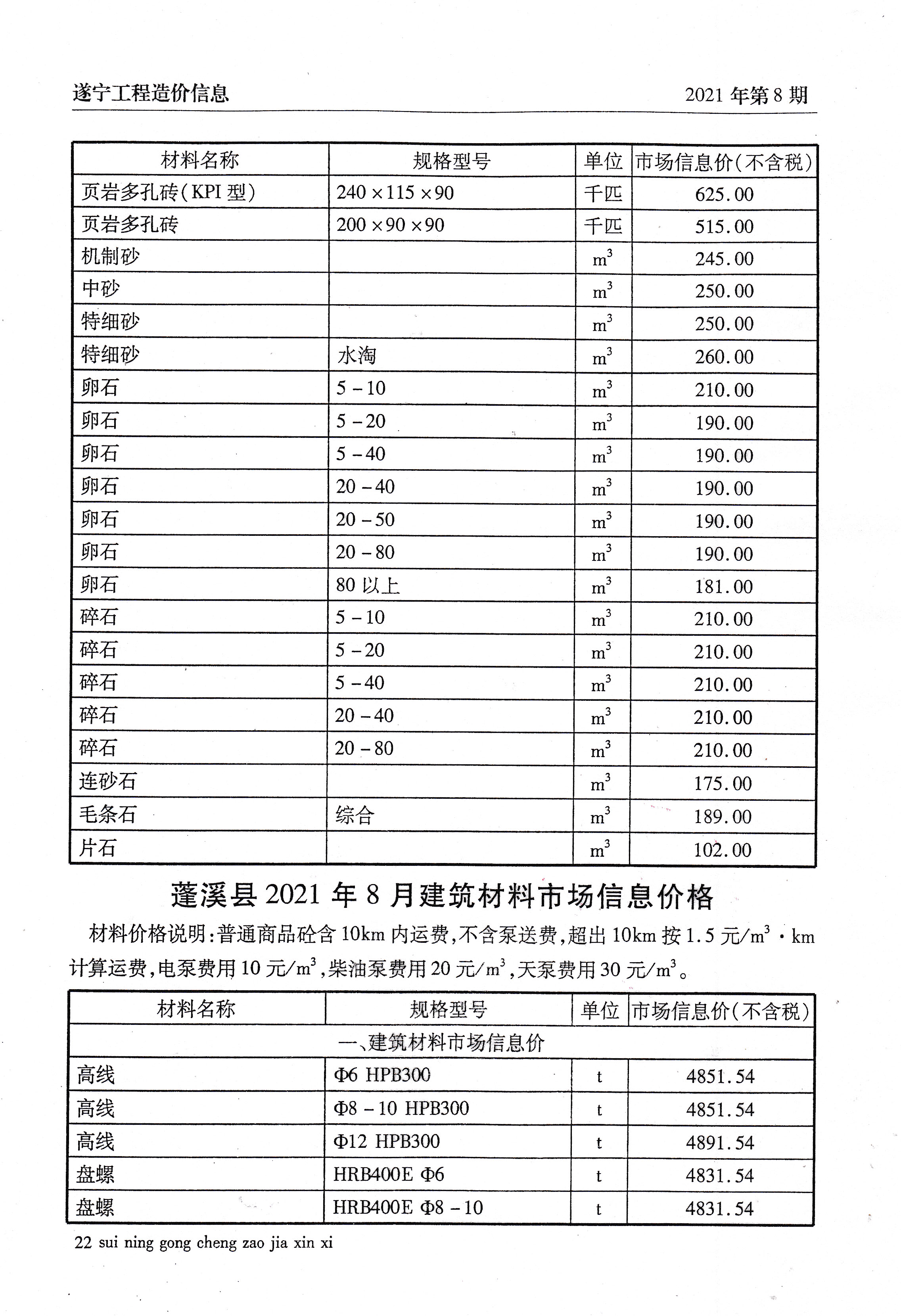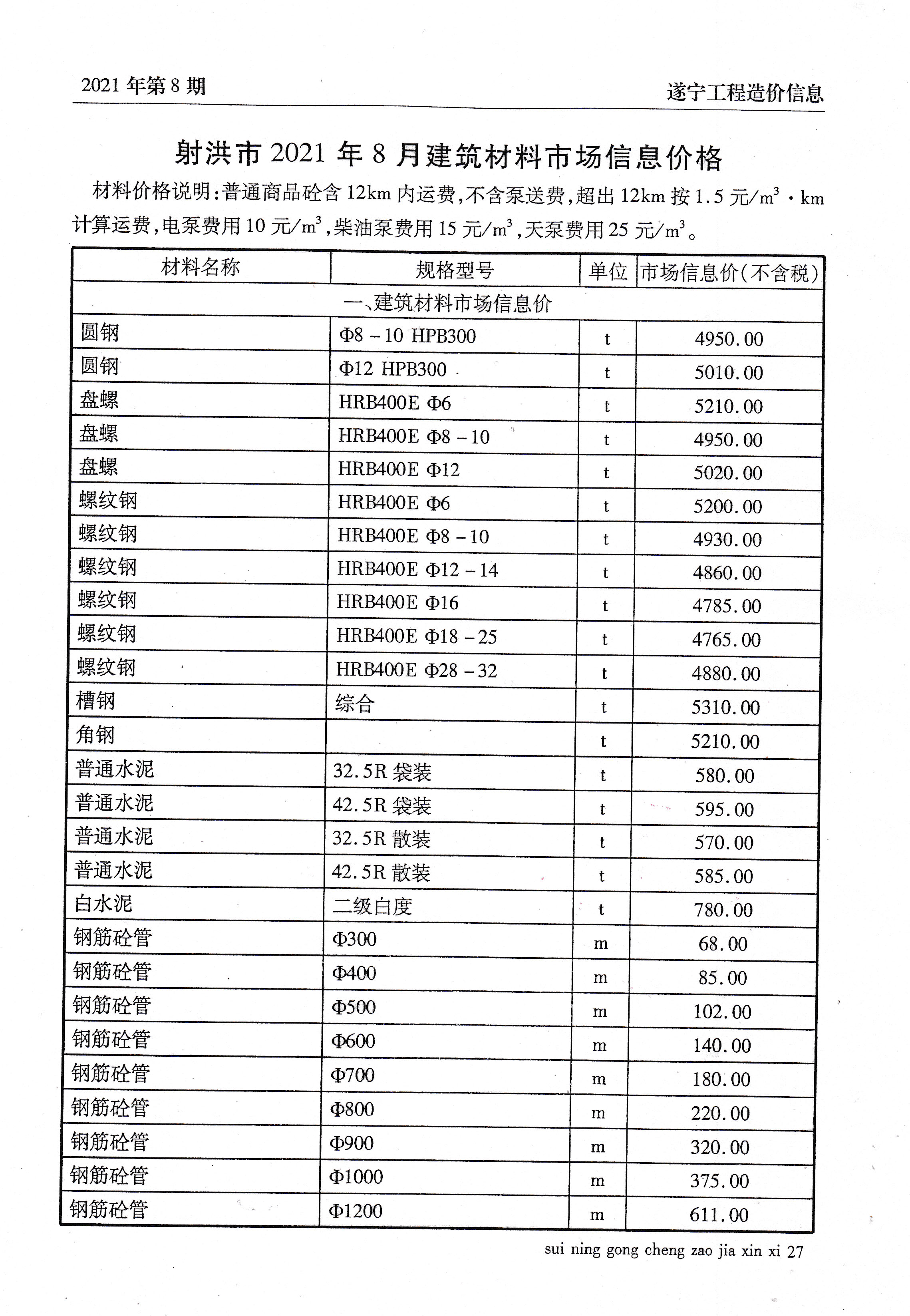 2021年8建材价格