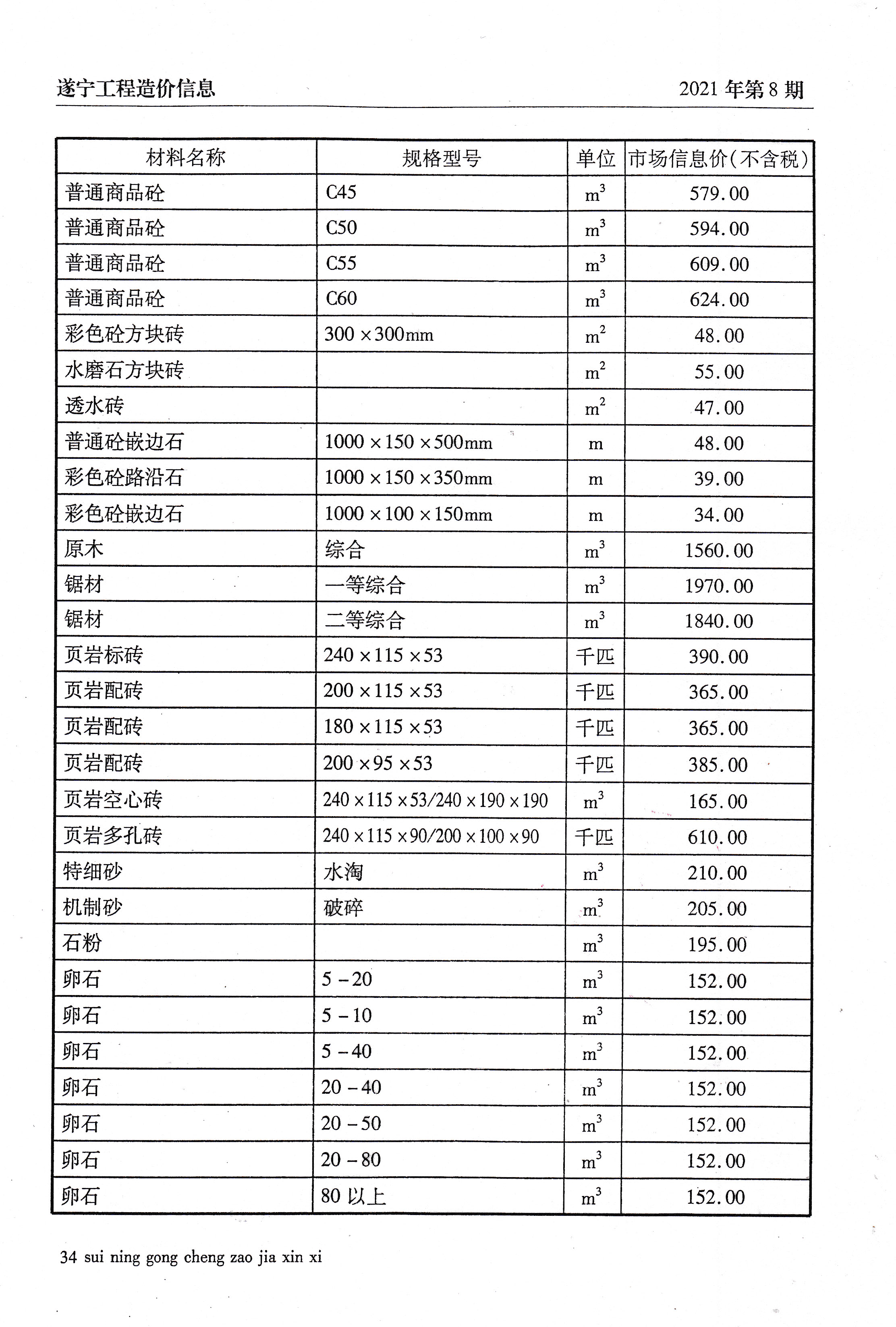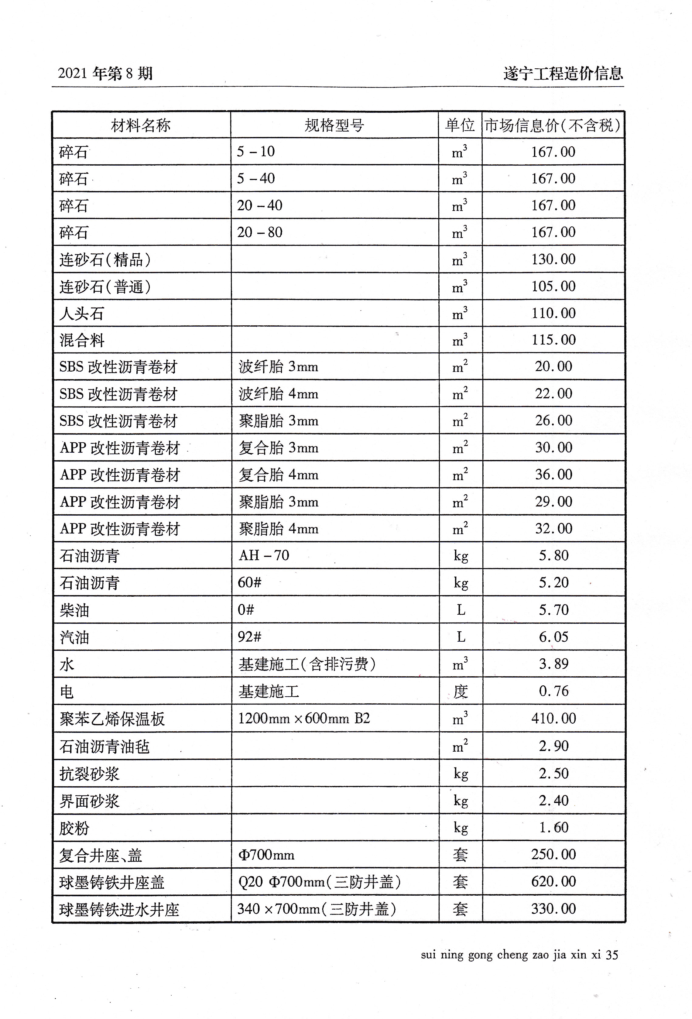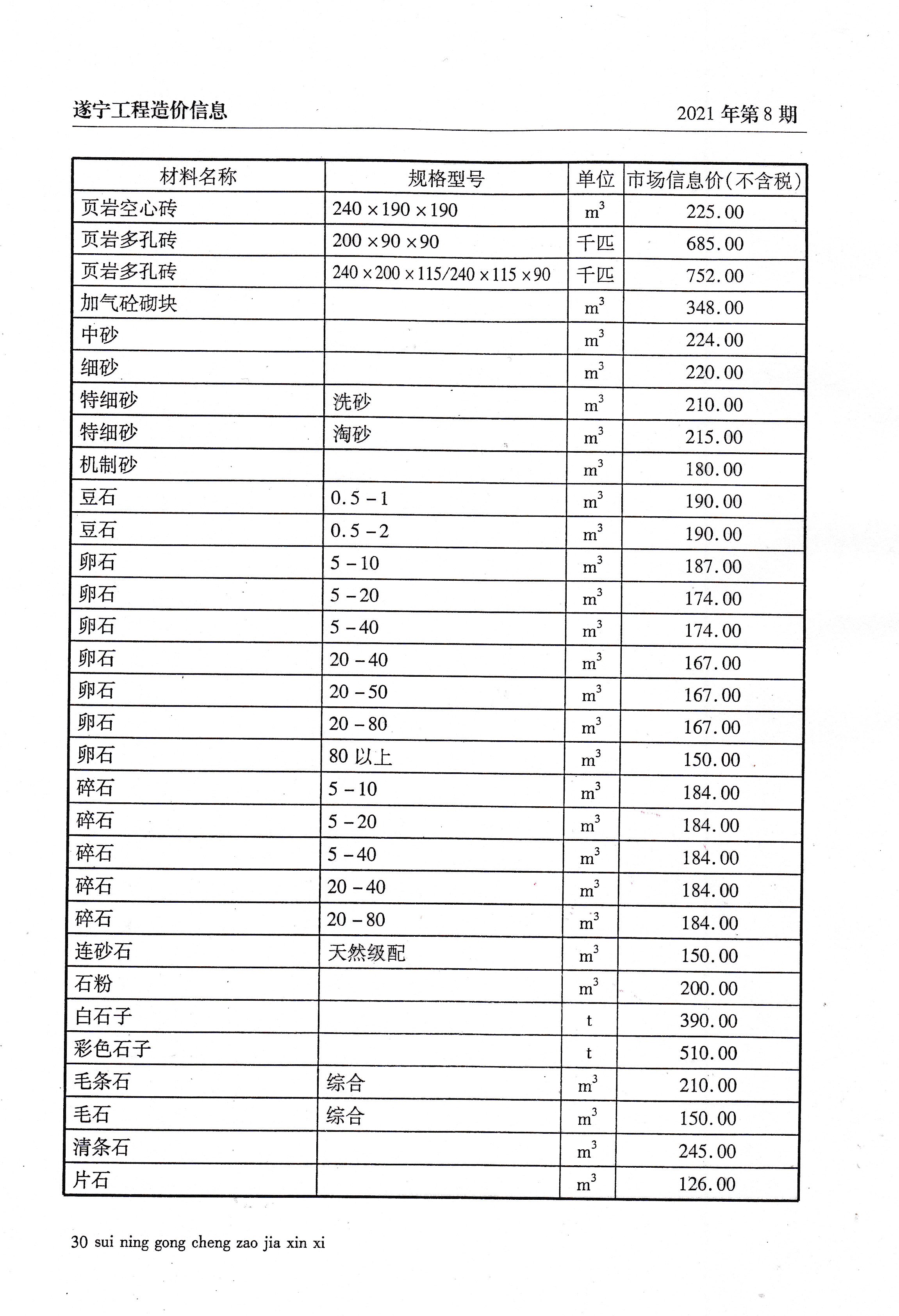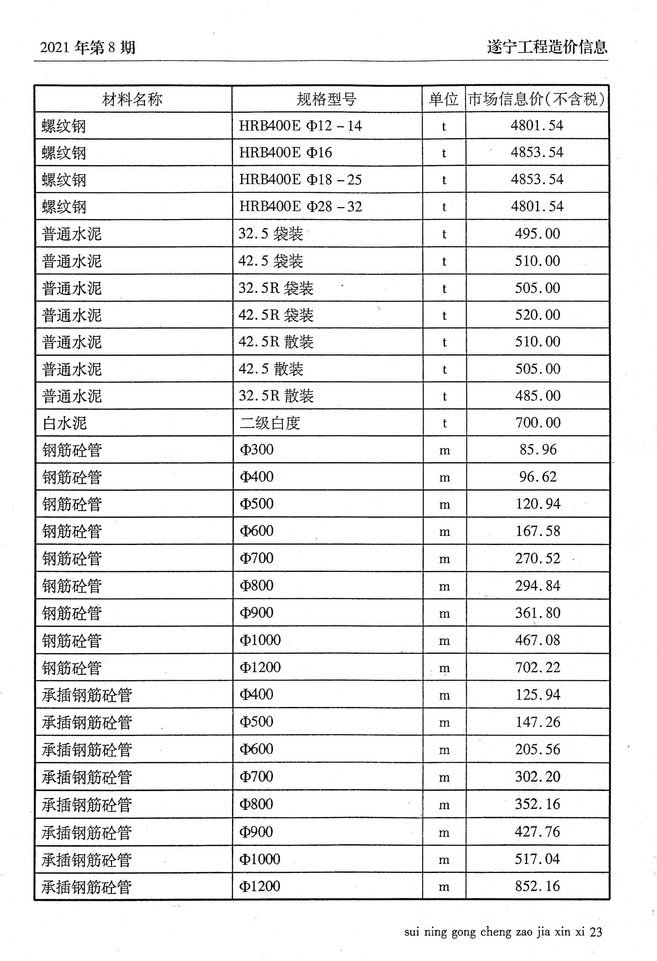 2021年8建材价格