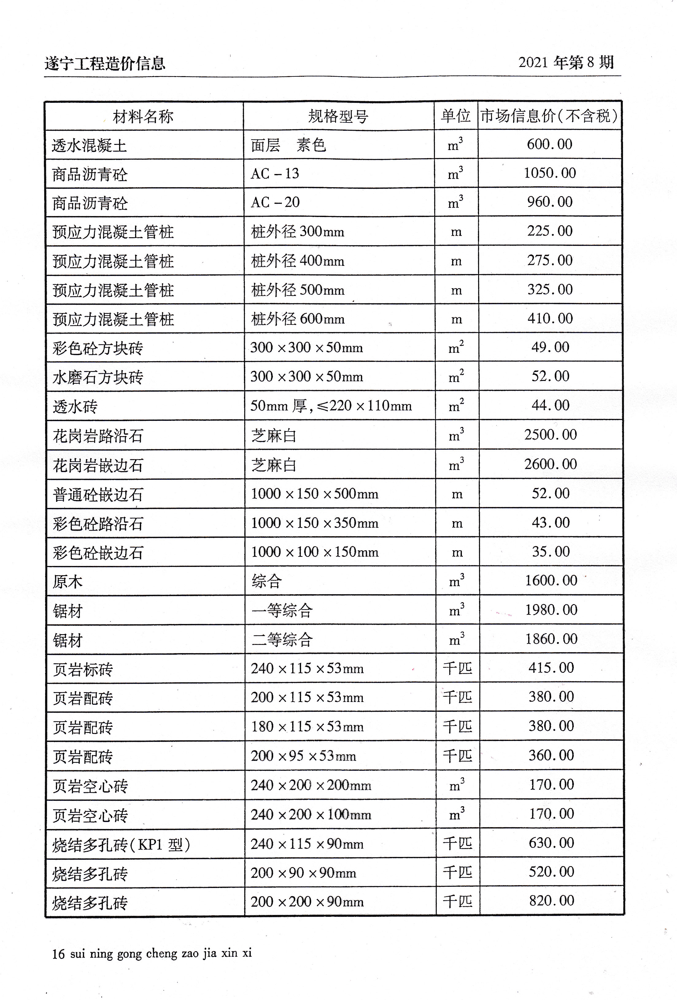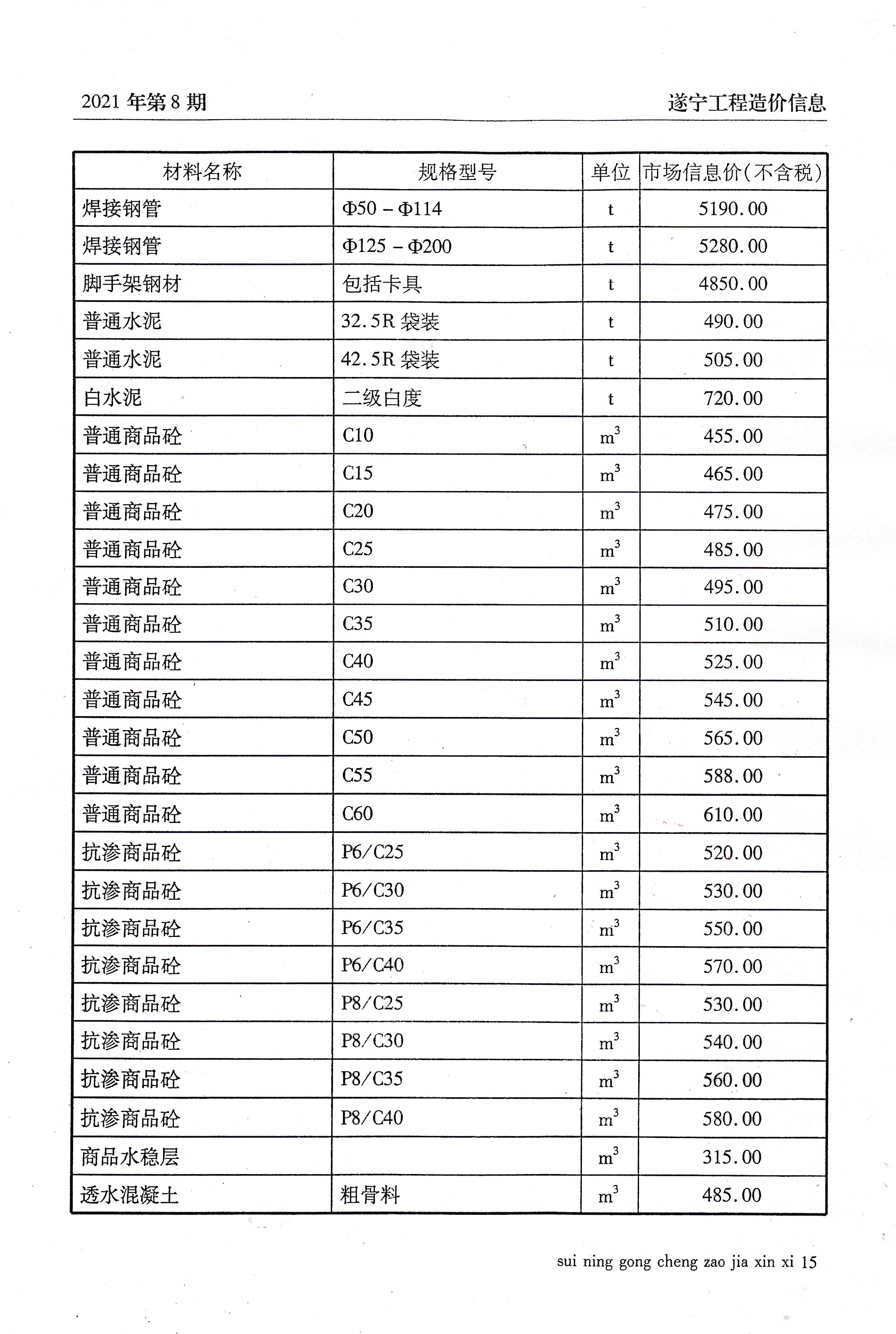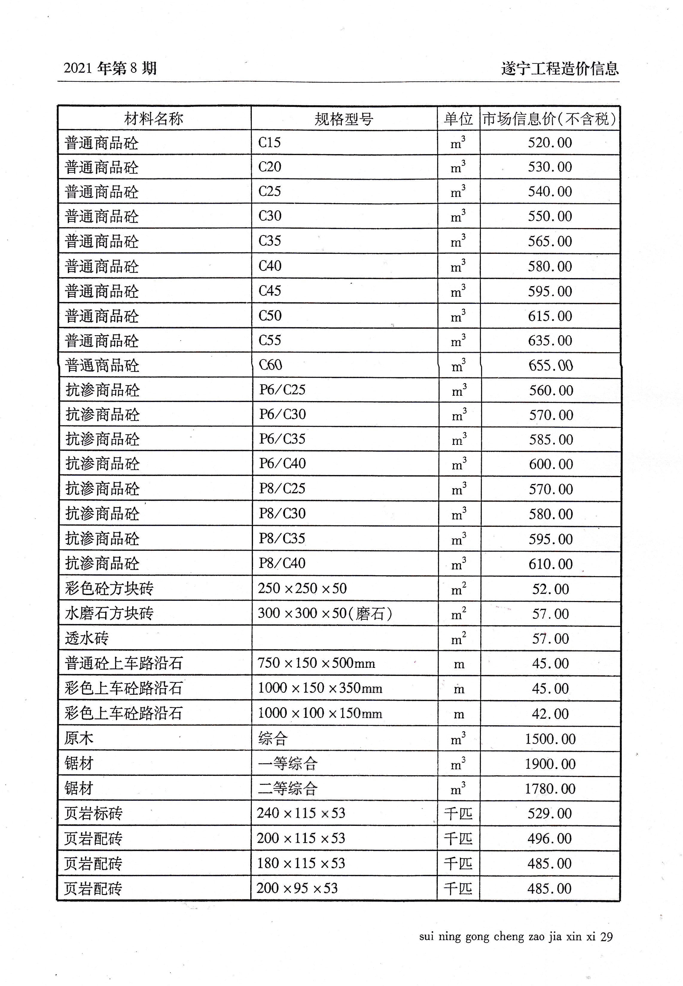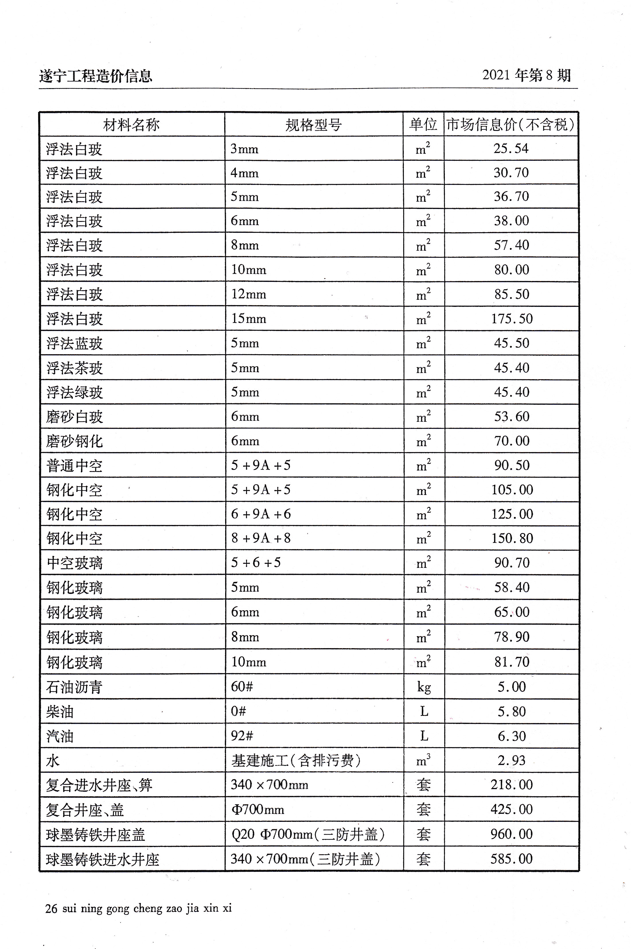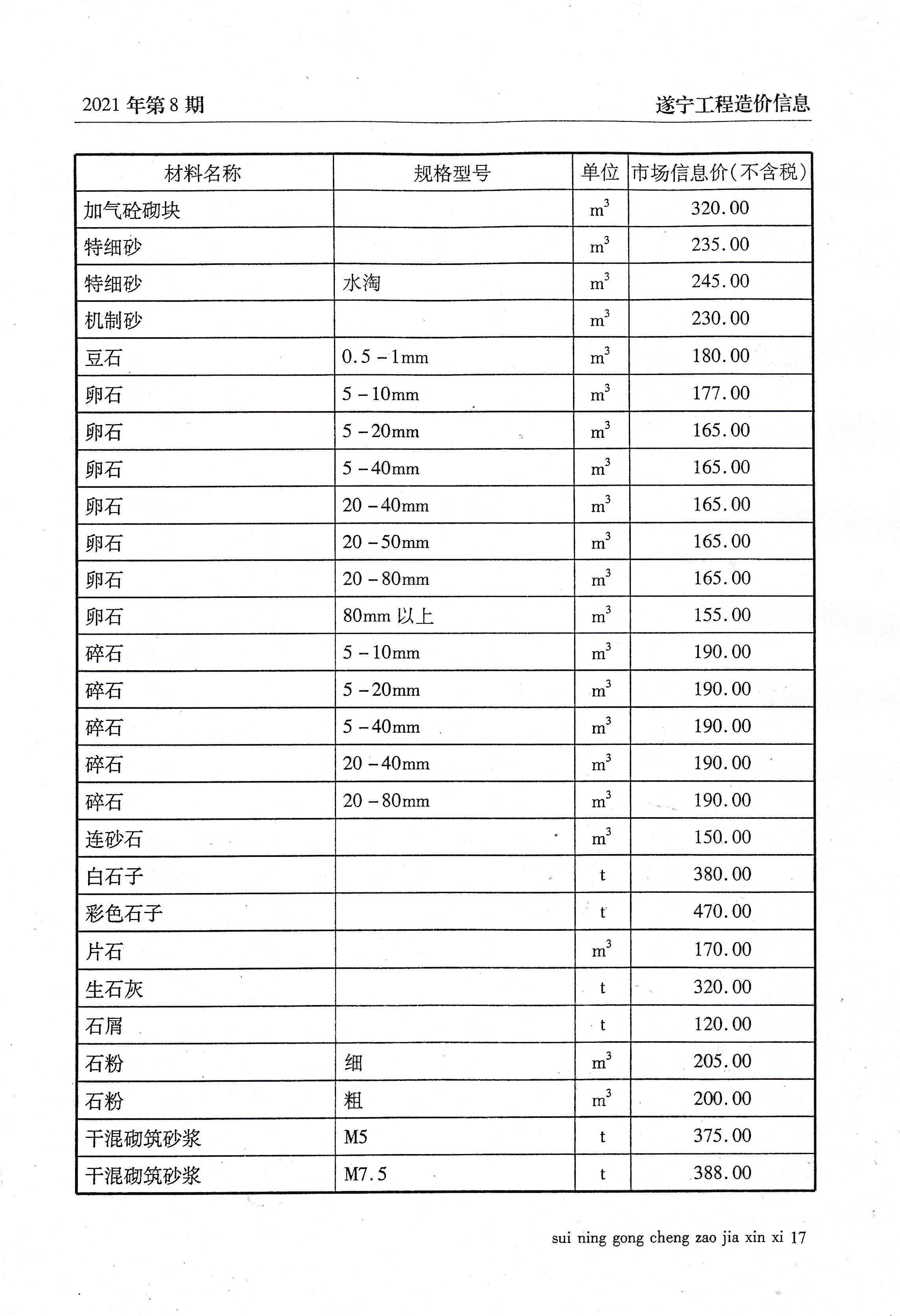 2021年8建材价格