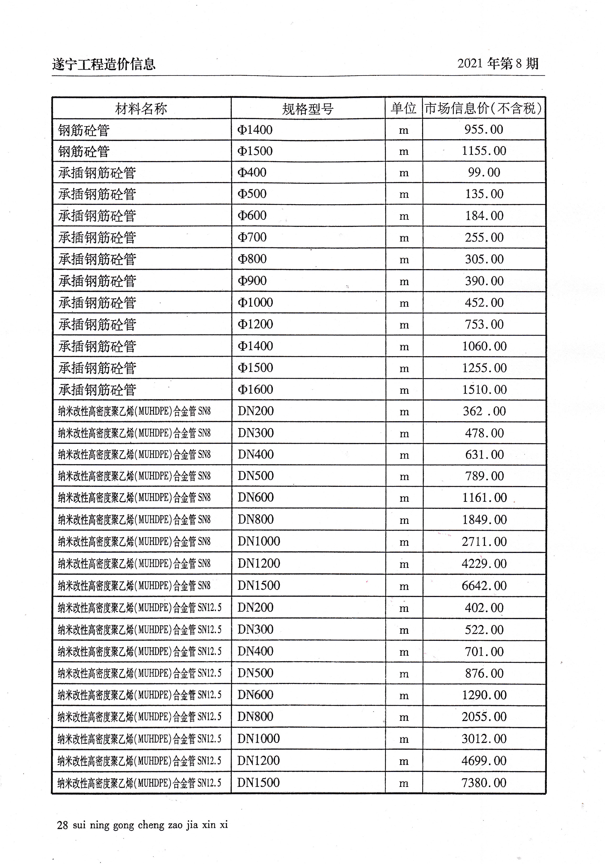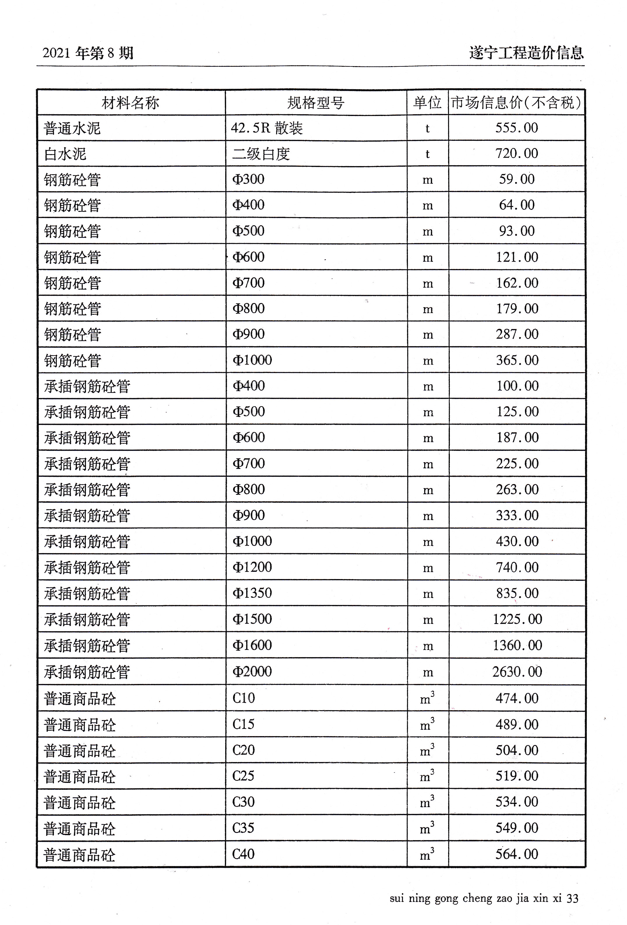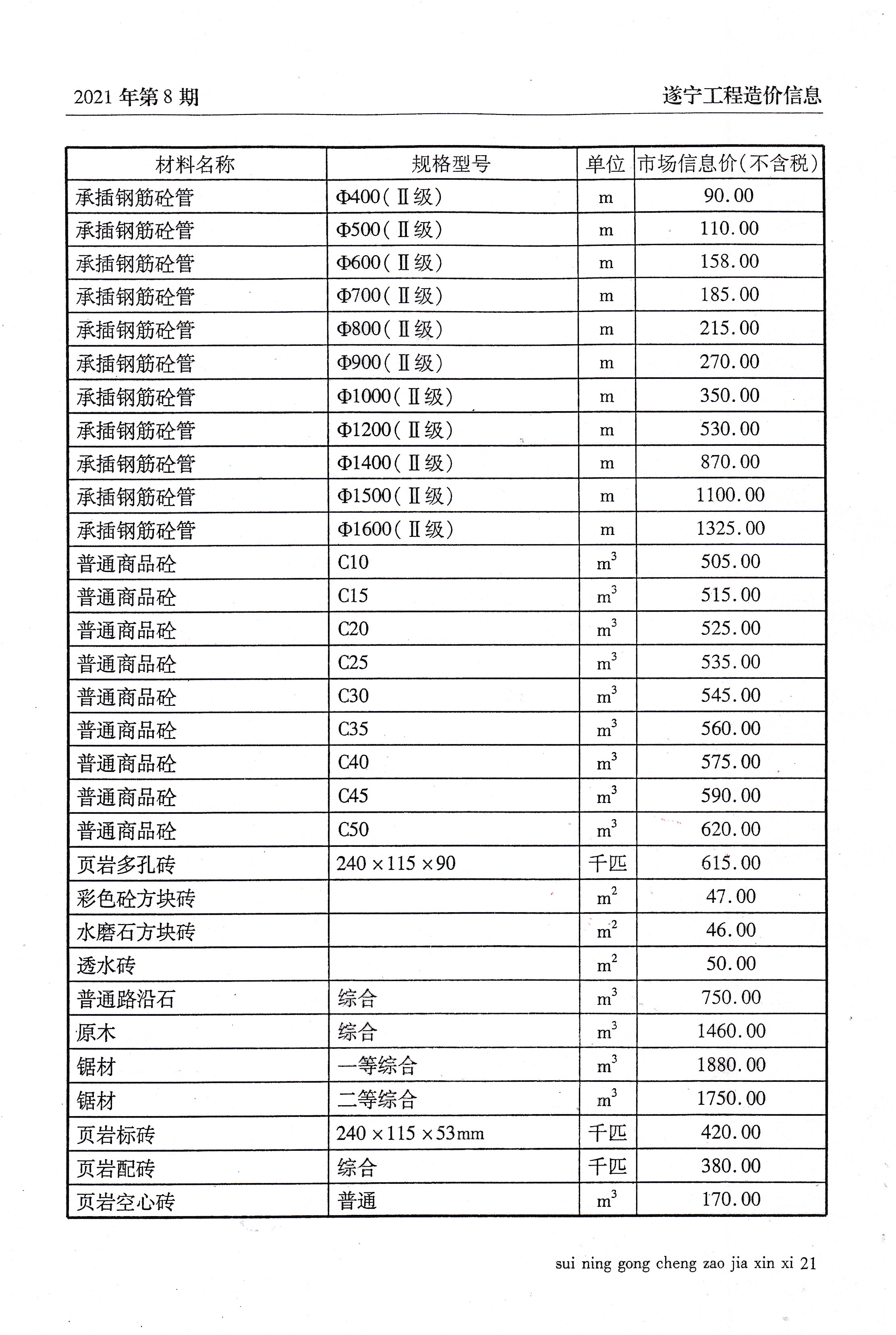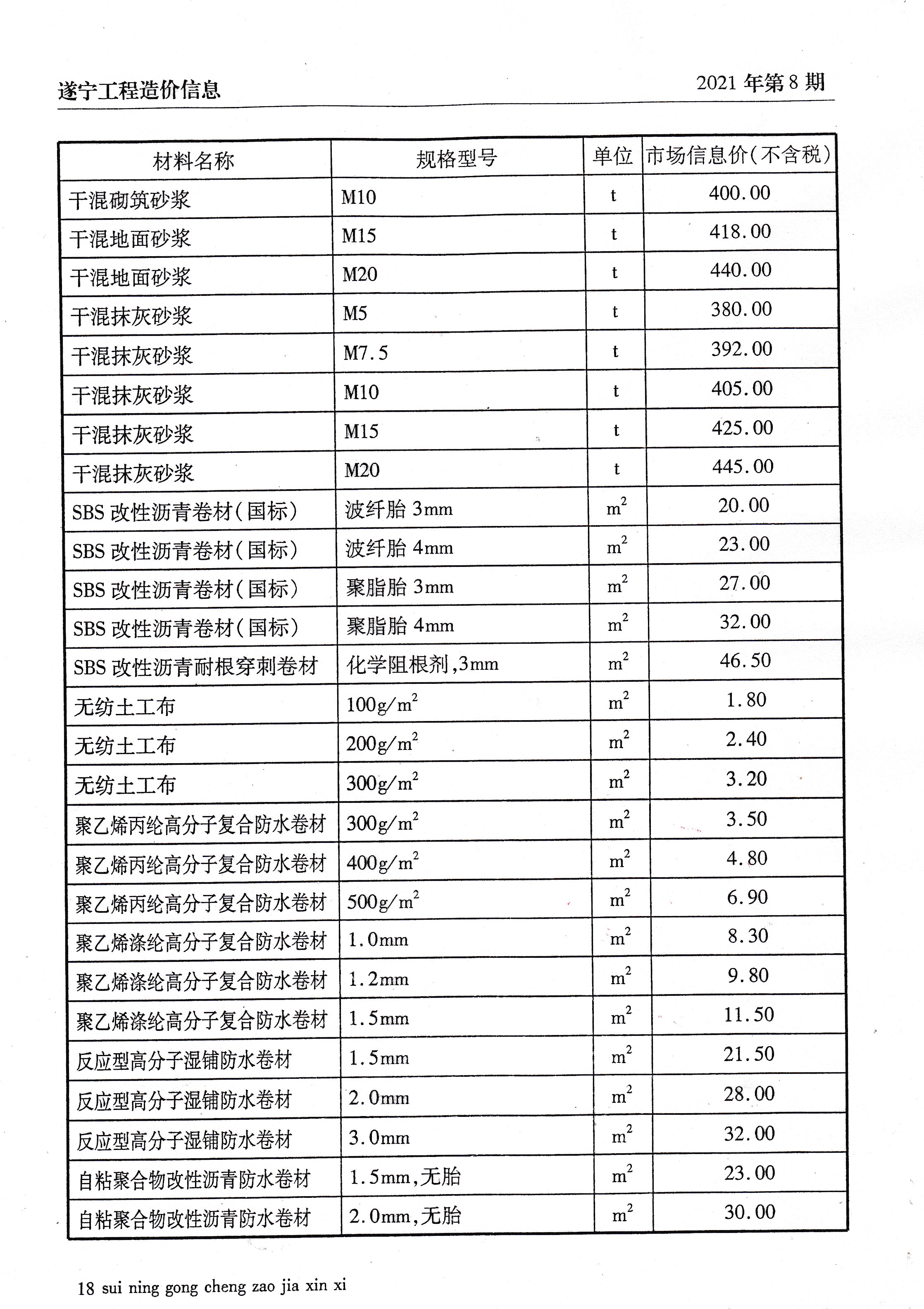 2021年8建材价格