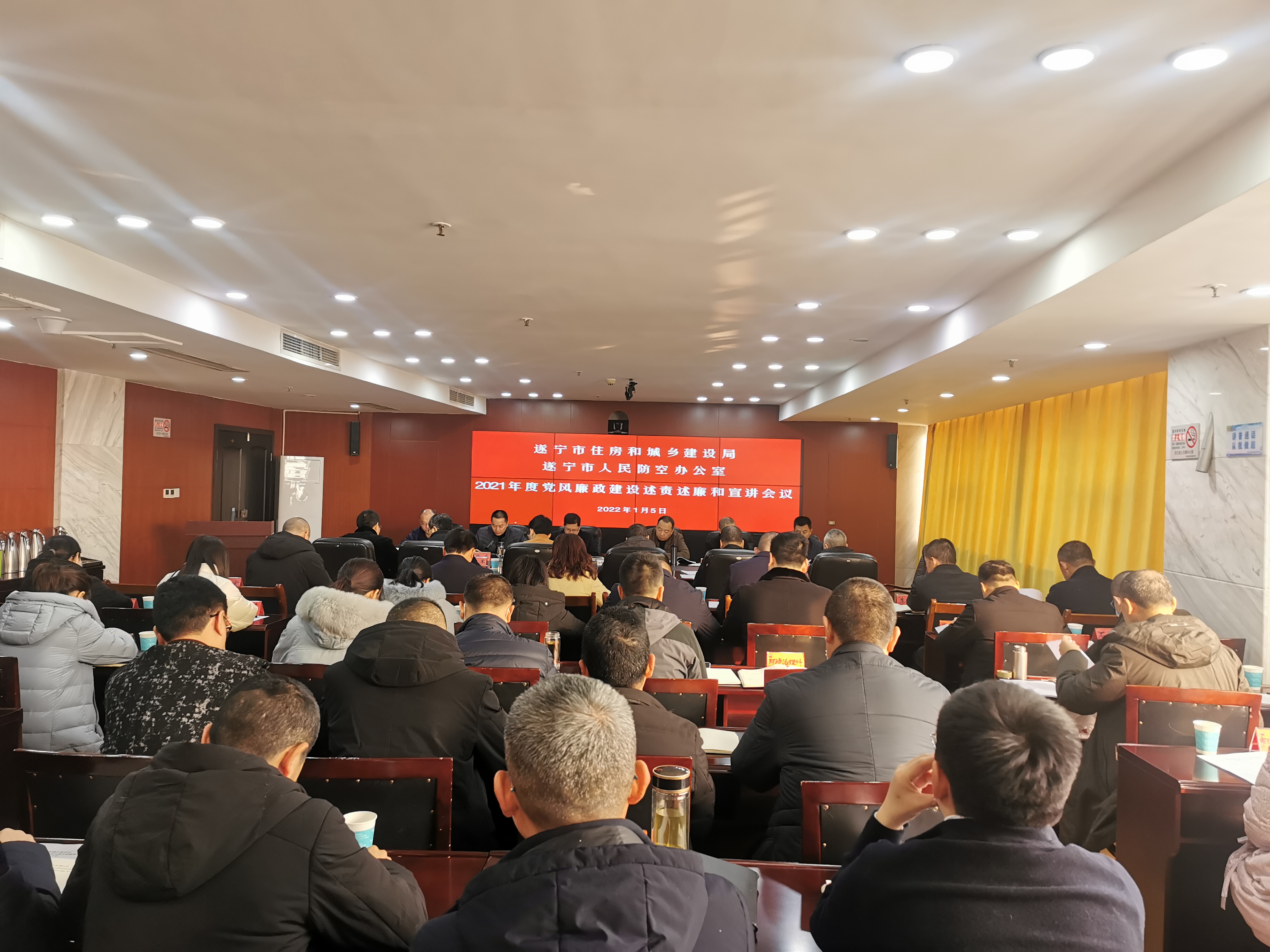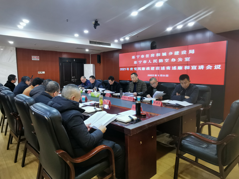 为进一步促进作风建设、党风廉政建设,增强勤政意识、宗旨意识、服务意识,确保2022年我市住建系统工作“开好头、起好步、布好局”,1月5日上午,市住房城乡建设局组织召开了2021年度党风廉政建设述责述廉和宣讲会议。会议分为两个阶段进行,第一阶段听取局党组履行党风廉政建设主体责任情况暨内设机构及直属单位负责人述责述廉;第二阶段召开党风廉政宣讲会议。会议由驻局纪检监察组三级调研员唐运福主持,驻局纪检监察组组长蒲岸参加会议并作宣讲。局领导班子成员、机关科室和局属单位副科职以上干部、廉情监督员、服务对象代表参加会议。