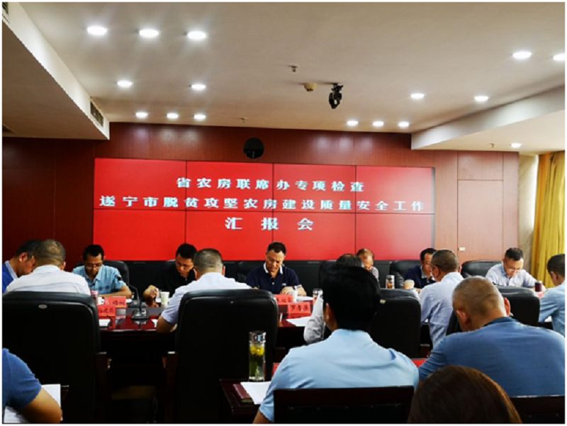 6月8日-6月10日,四川省农村住房建设统筹管理联席会议办公室检查组莅遂专项检查我市脱贫攻坚农房建设质量安全工作。检查组由省市场监督管理局二级巡视员朱佑富带队,通过听取汇报、查阅资料、入户核查、意见反馈等形式,对市直相关部门和射洪市脱贫攻坚农房建设质量安全工作进行检查。