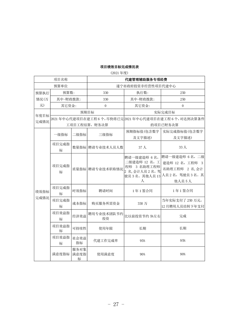 遂宁市政府投资非经营性项目代建中心2021年单位决算公开编制说明