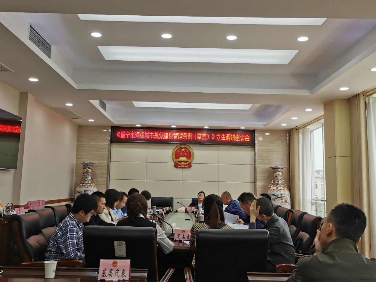 为做好《遂宁市海绵城市规划建设条例(草案)》审议前有关工作,4月23日上午,市人大法制委主任委员杨清洪、市人大环资委主任委员白辉龙等一行到大英县调研海绵城市建设工作并听取相关单位对草案的意见建议。