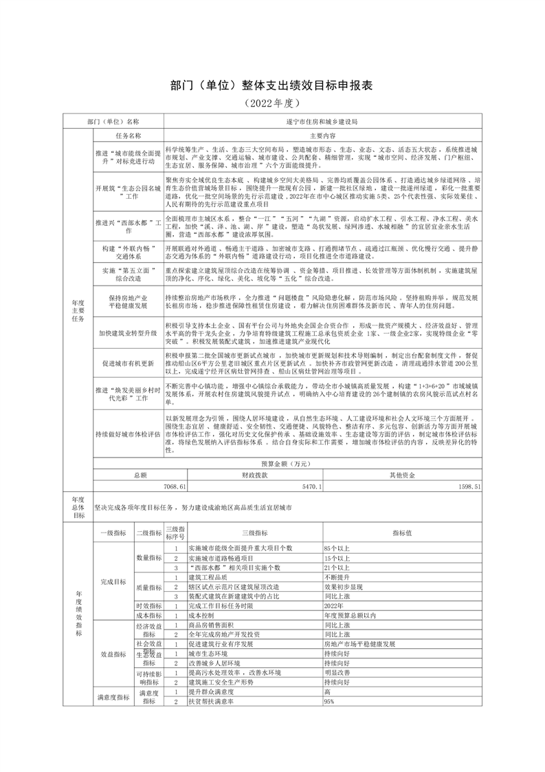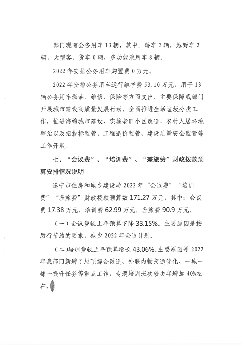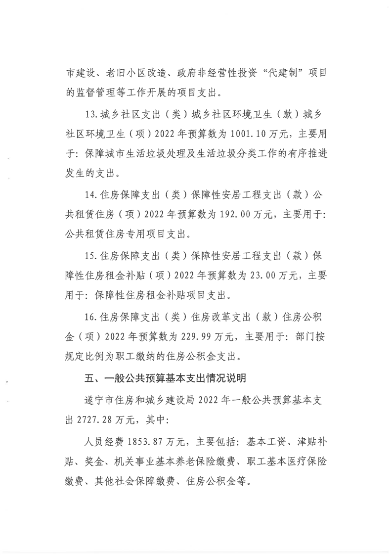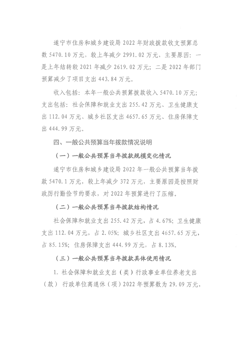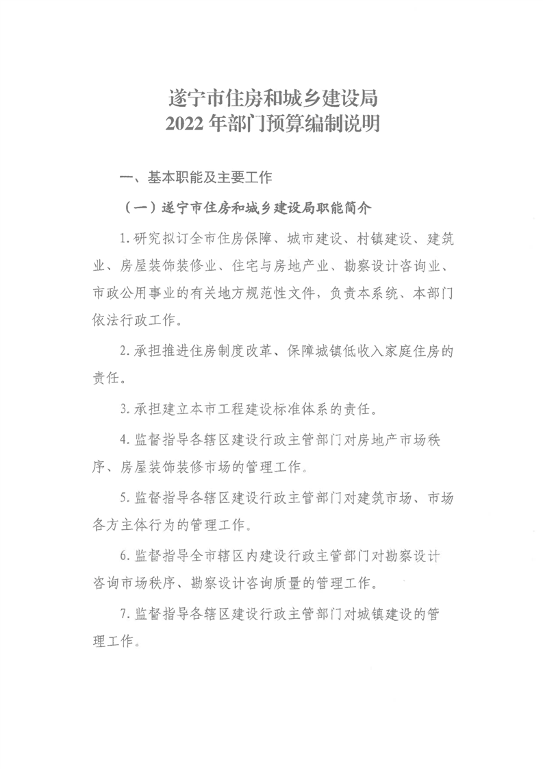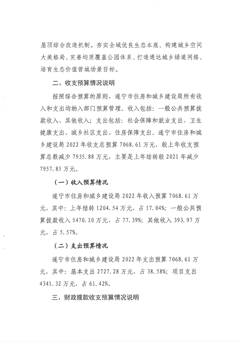 遂宁市住房和城乡建设局2022年部门预算(部门含下属预算单位)