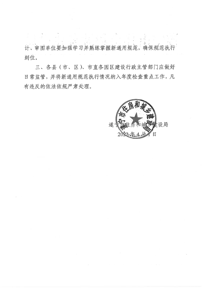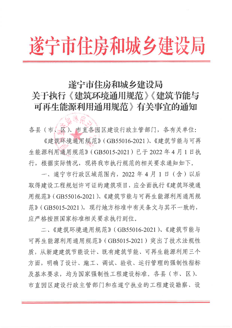 遂宁市住房和城乡建设局关于执行《建筑环境通用规范》《建筑节能与可再生能源利用通用规范》有关事宜的通知