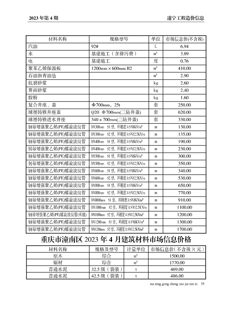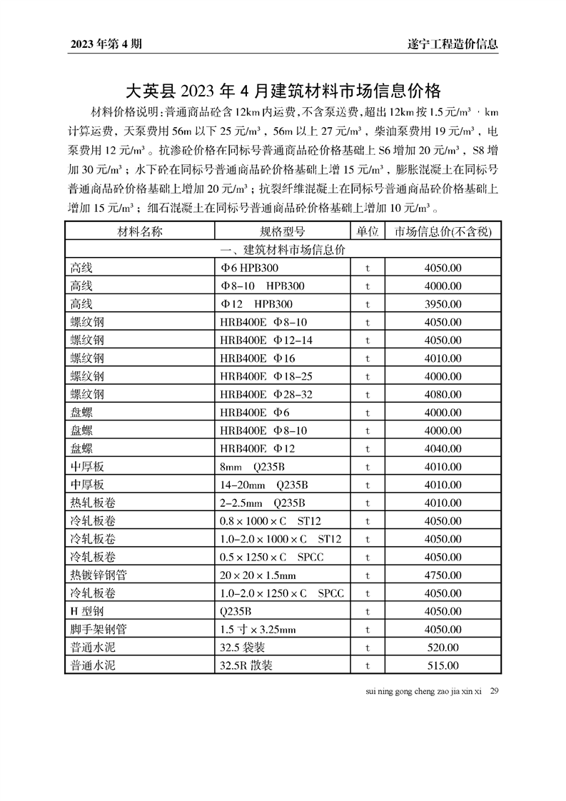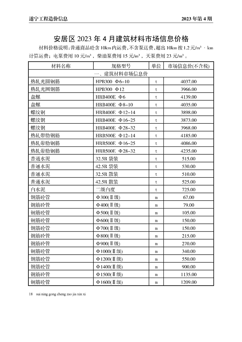 2023年4月建材价格