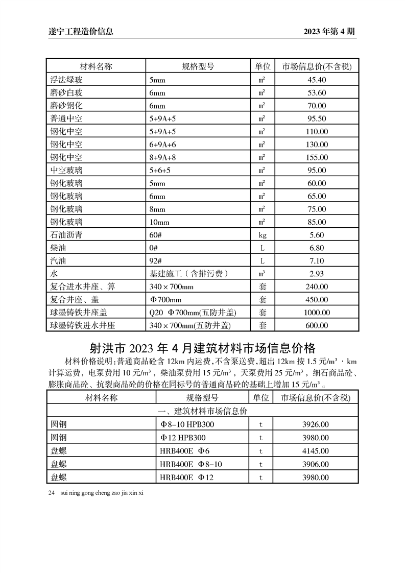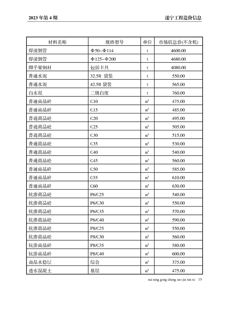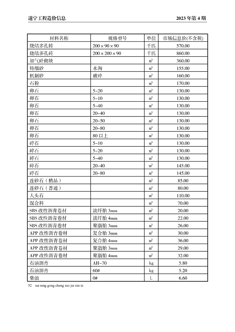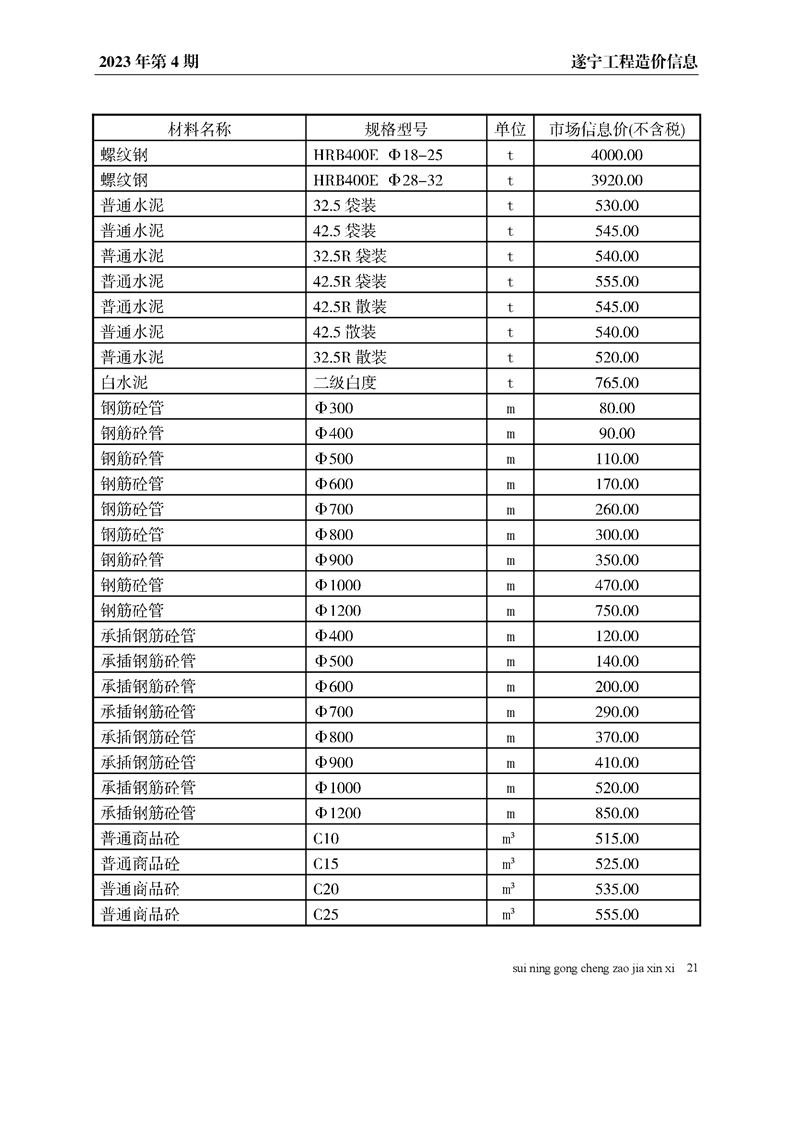 2023年4月建材价格