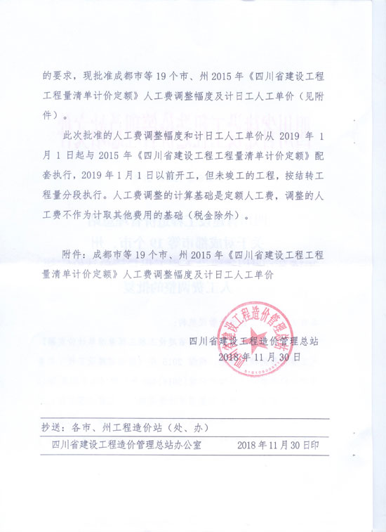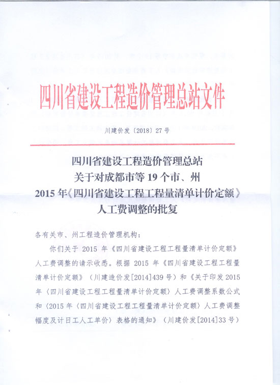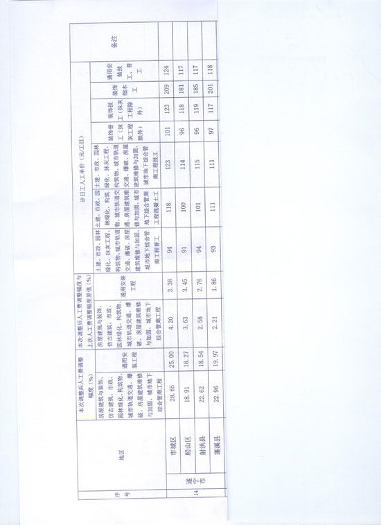 遂宁市2019年15定额人工费调整