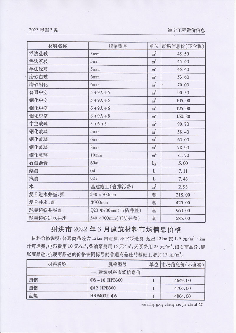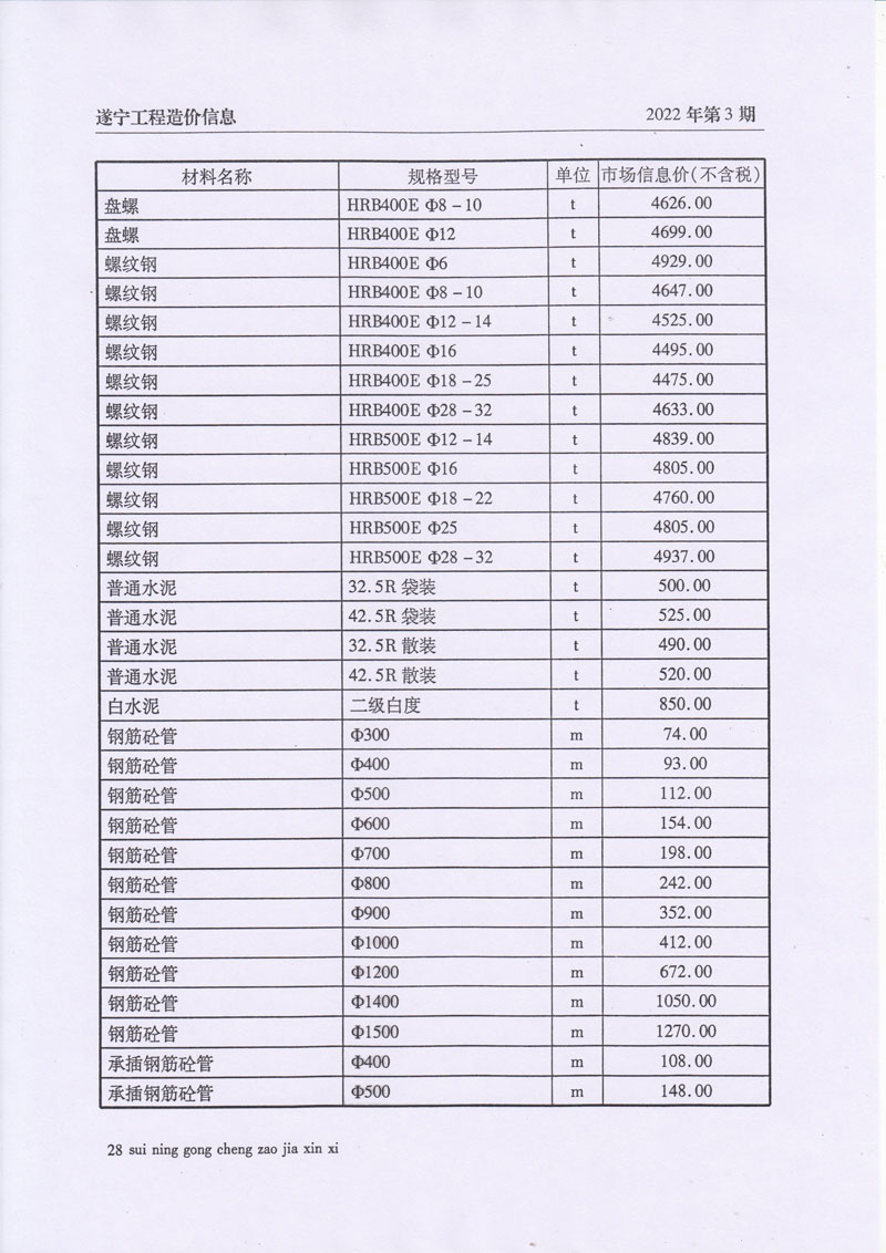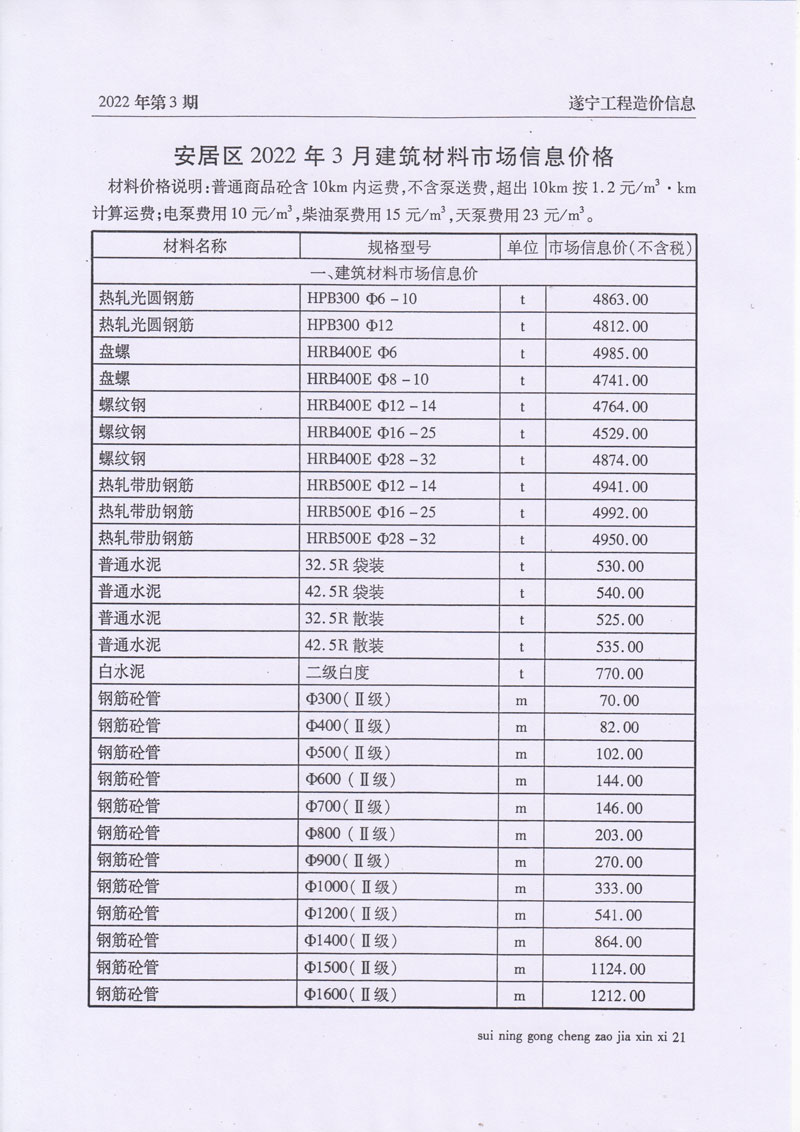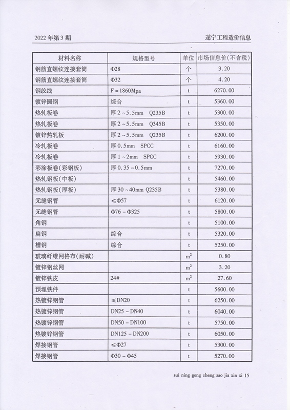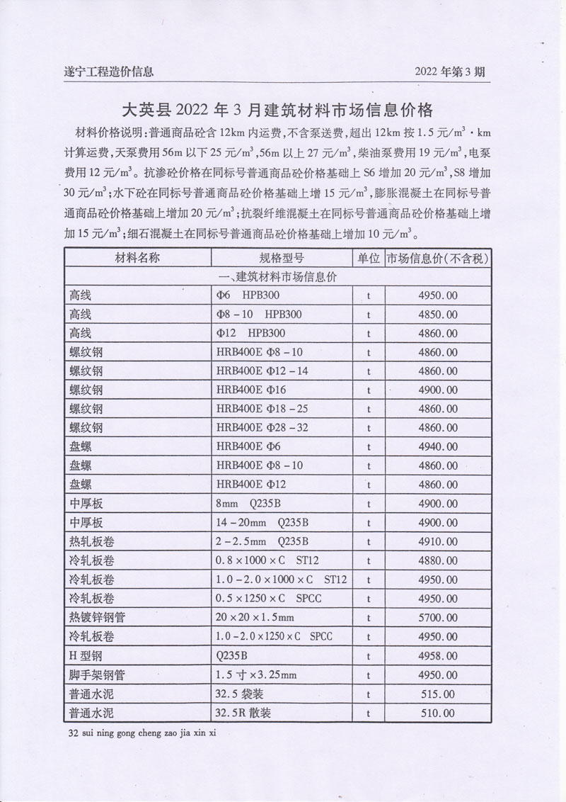 2022年3月建材价格
