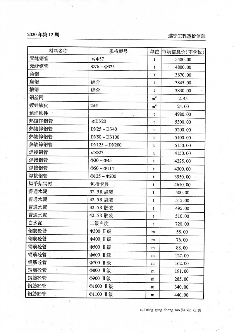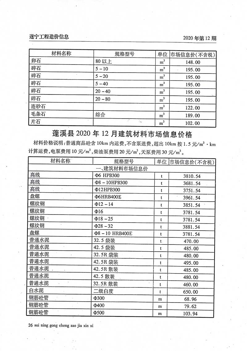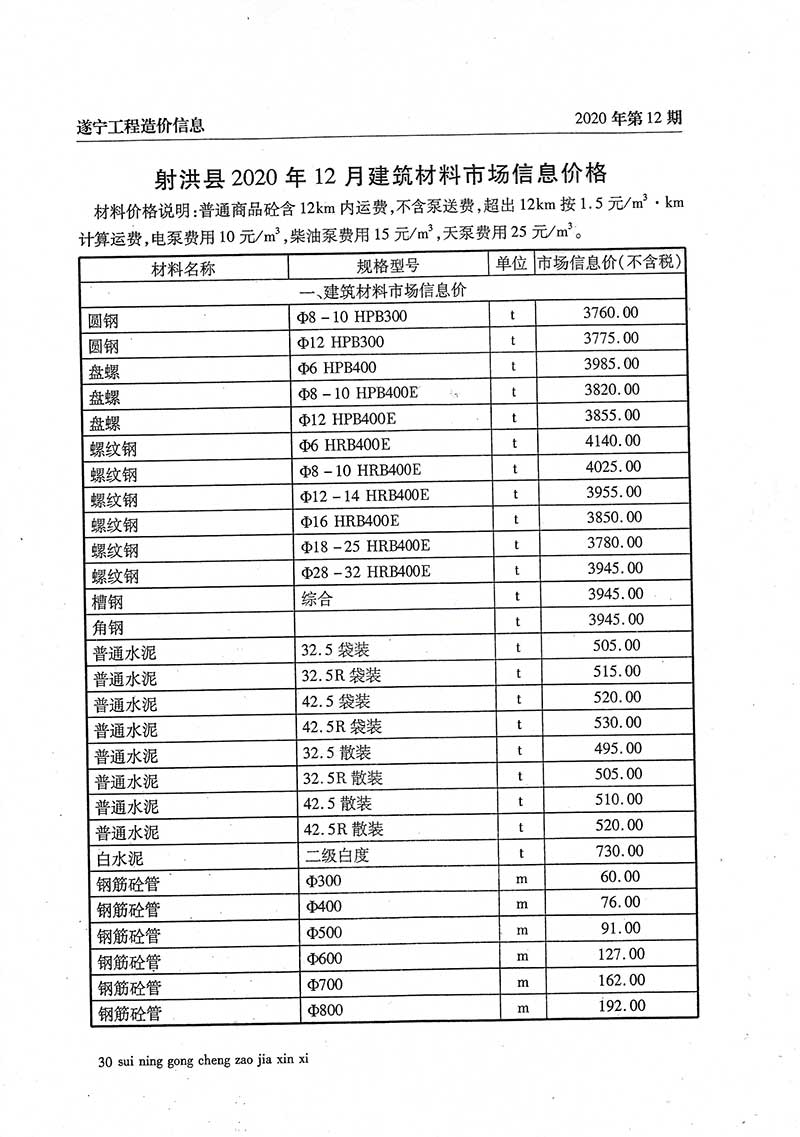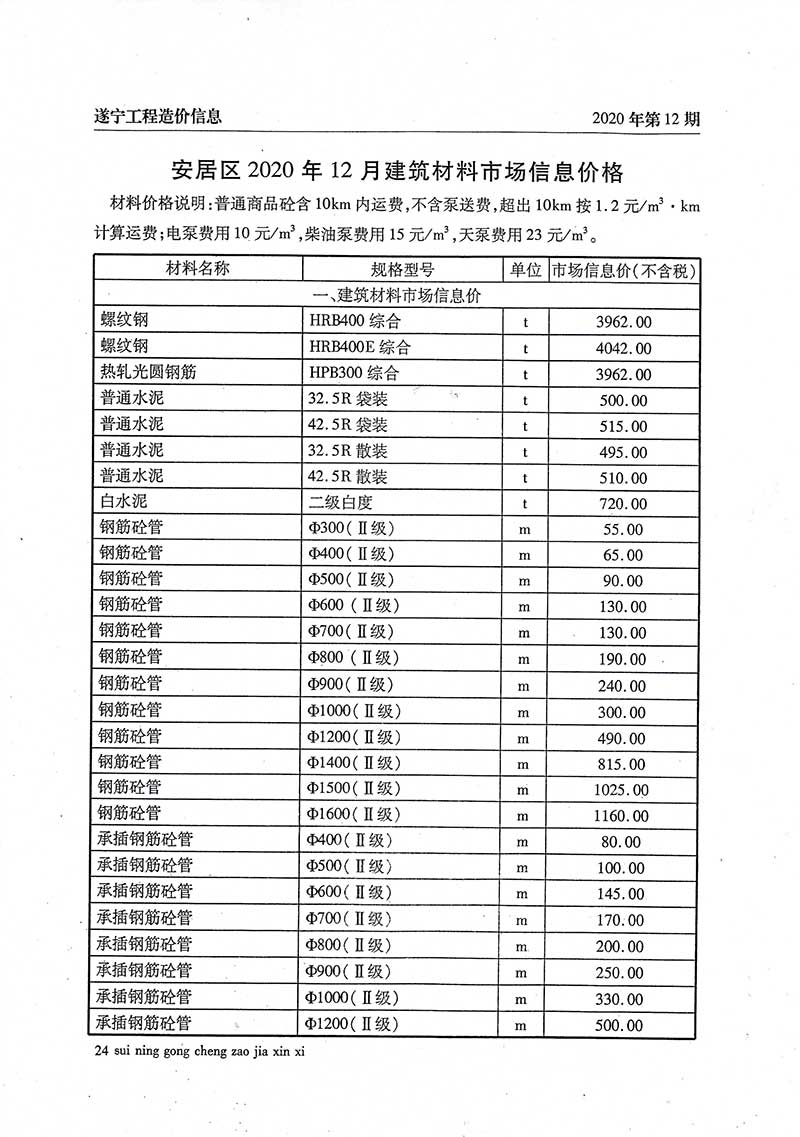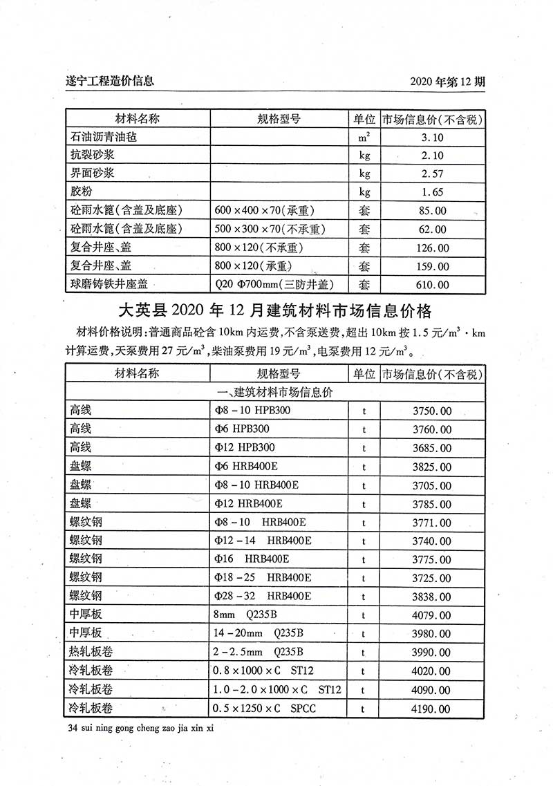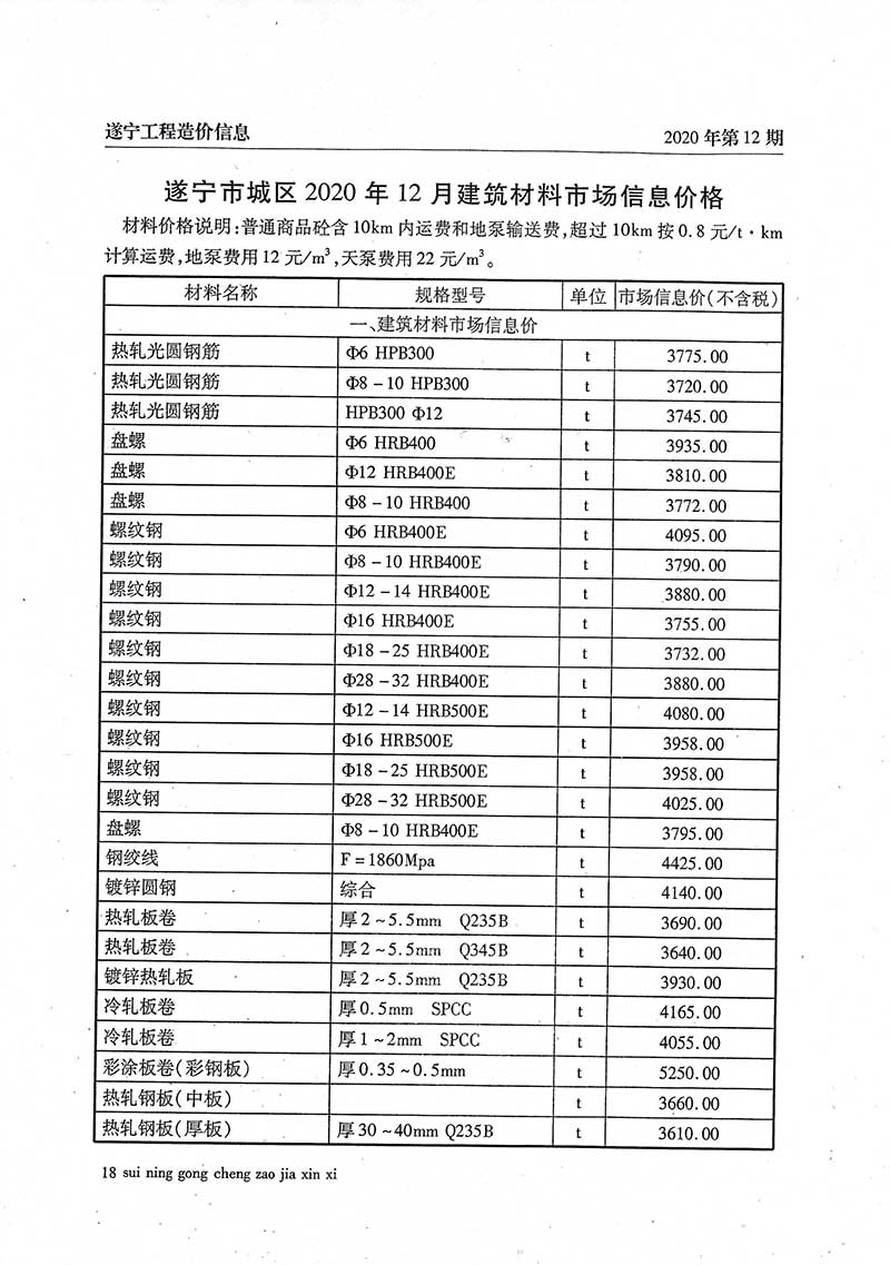 2020年12月建材价格