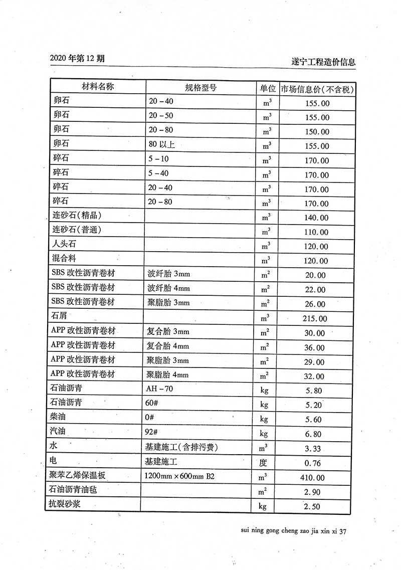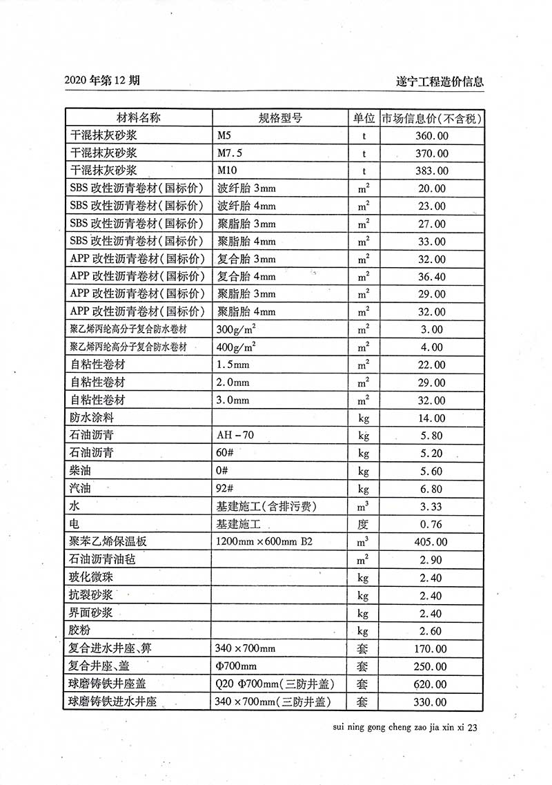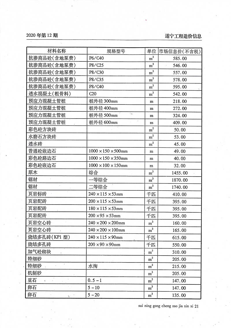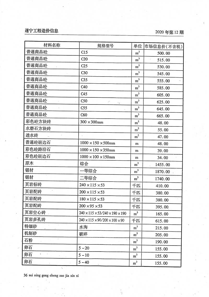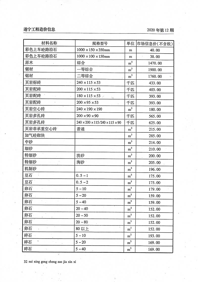 2020年12月建材价格
