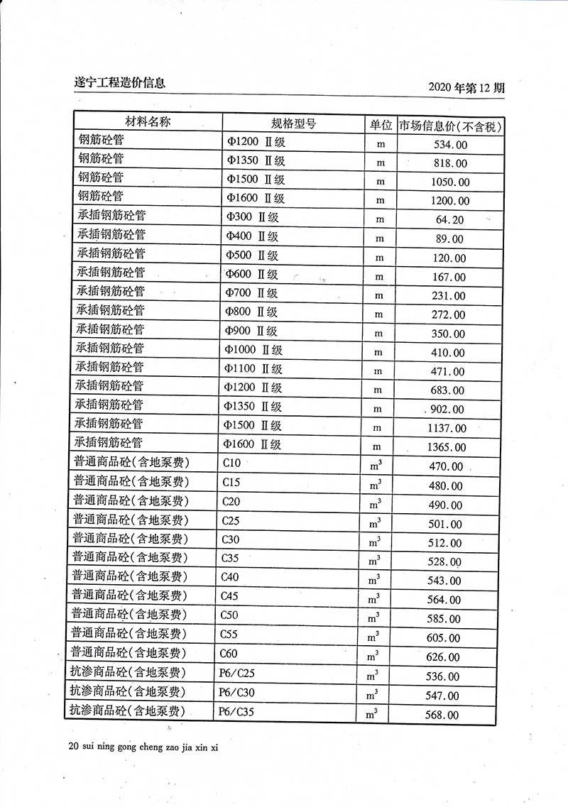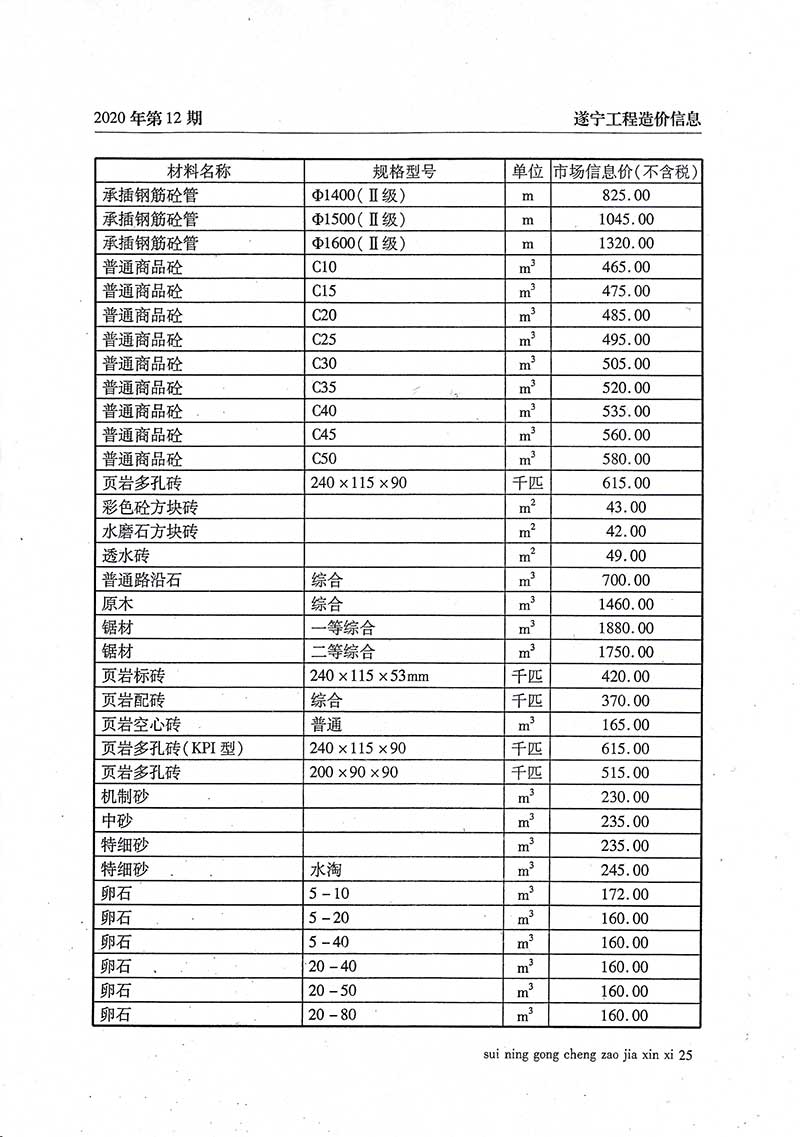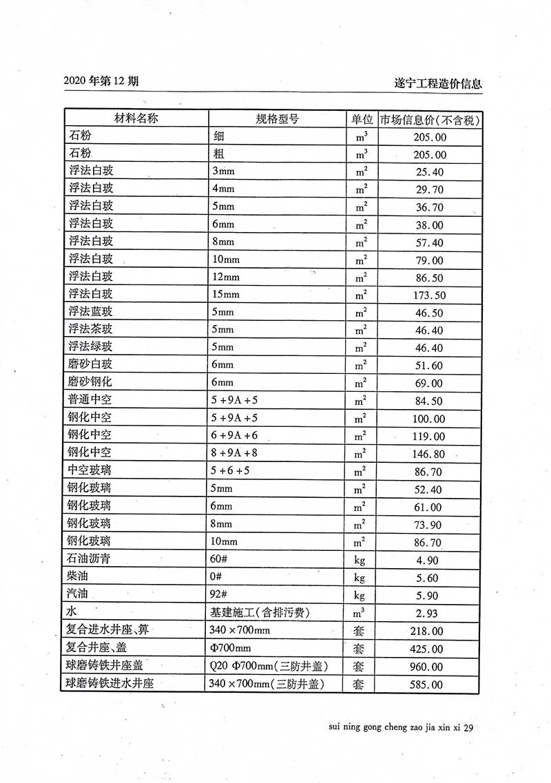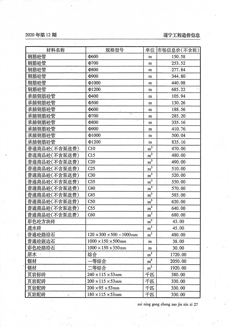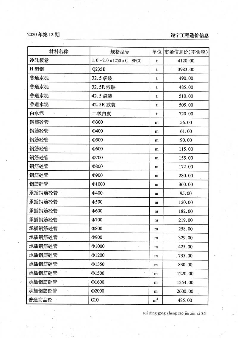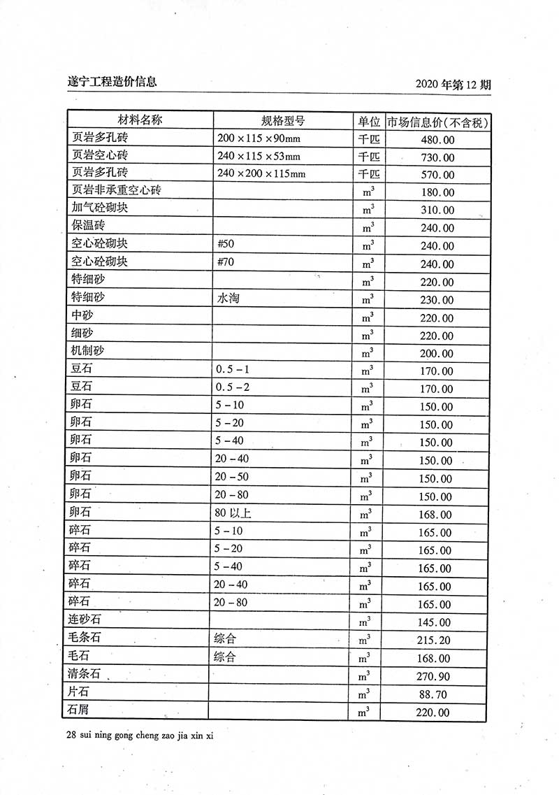 2020年12月建材价格