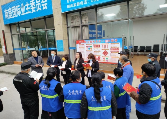 12月7日,区住房城乡建设局副局长郑敏在柔刚街道办事处南庭国际小区给社区和物业工作人员宣讲党的二十大精神,督导“五心”物业打造情况,强调要深入学习贯彻党的二十大精神,坚持大抓基层提升民生福祉,紧盯盯紧疫情防控、物业管理服务等重点工作,全力以赴打造“五心”物业,全面提升城镇居民小区治理水平,推动党的二十大和省委十二届二次全会精神落地见效。