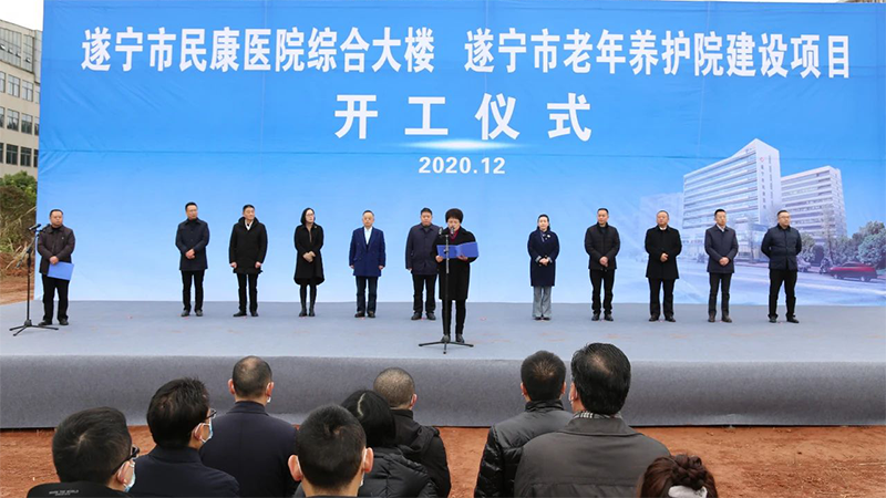 遂宁市民康医院第一期项目(门诊楼、住院楼、康复大楼及附属设施)已于2016年8月建成并投入使用。新开工建设的二期项目占地57亩,含遂宁市老年养护院建设项目、医院综合大楼建设项目,概算投资总额2.42亿元。其中遂宁市老年养护院建设项目建筑面积2.8万平方米,概算投资1.29亿元;医院综合大楼建设项目建筑面积2.3万平方米,概算投资1.12亿元。合同工期24个月,该项目的建成,将为推进遂宁在成渝地区双城经济圈建设中实现中部崛起作出积极贡献。