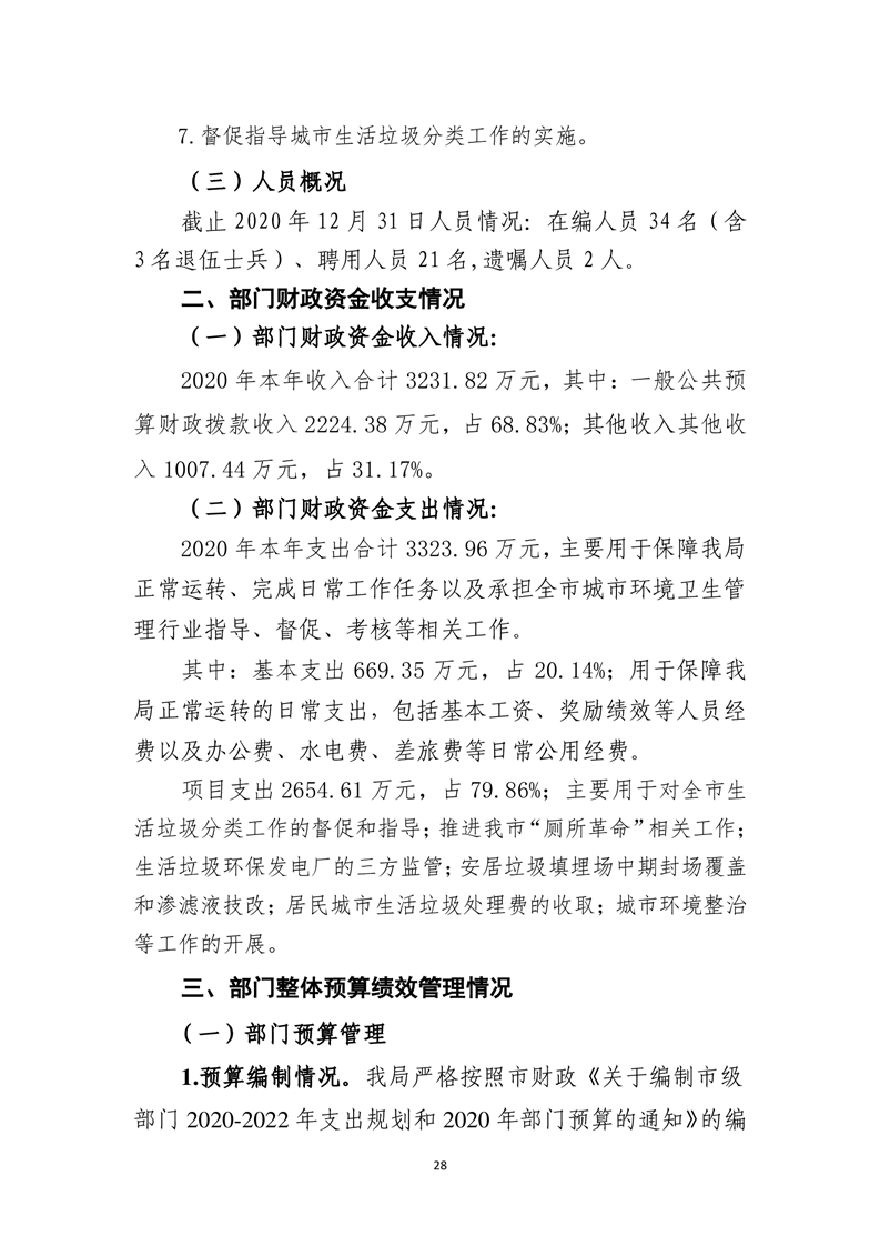 遂宁市城市环境卫生管理局2020年部门决算编制说明