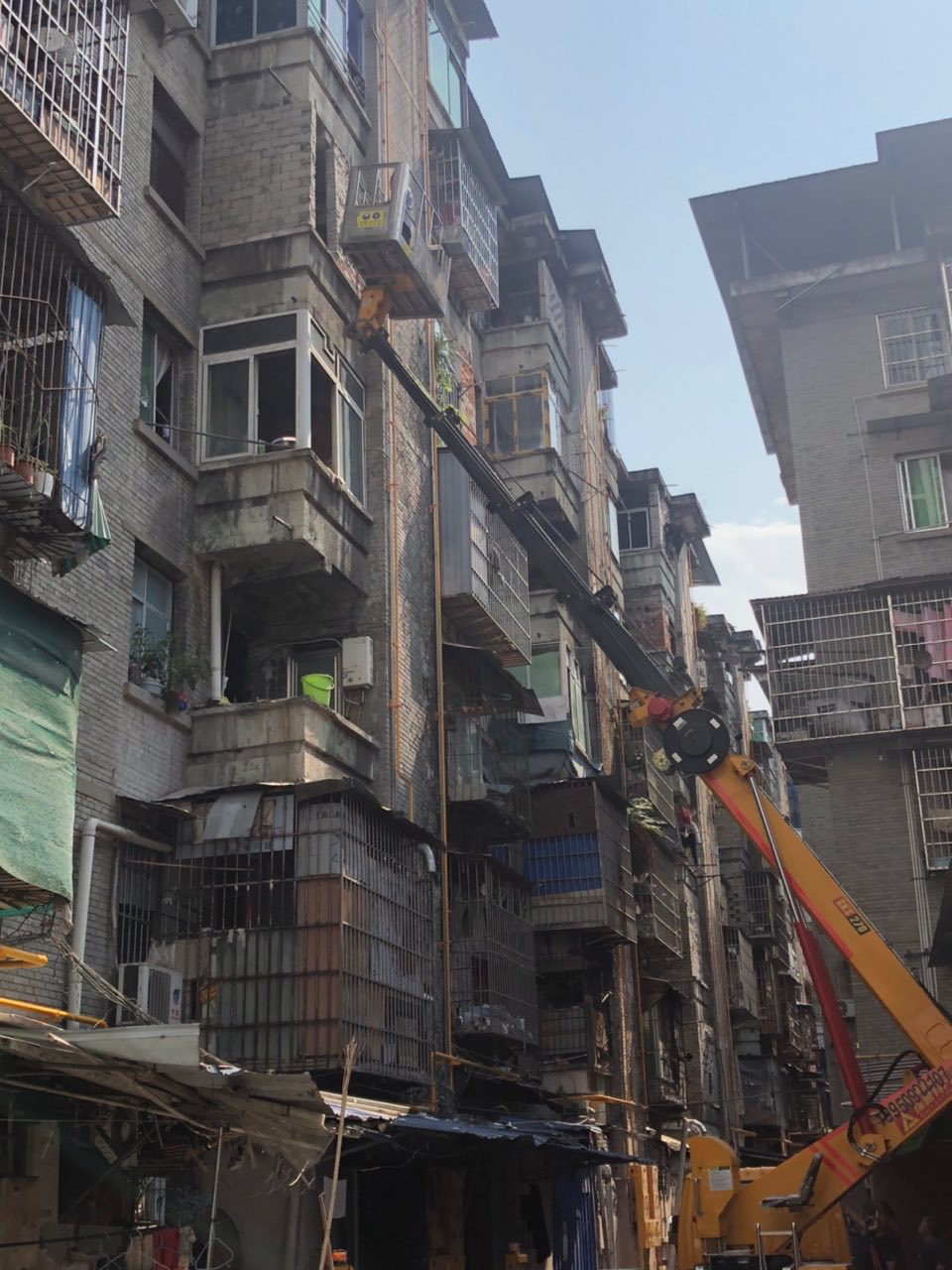 船山区和平东路56号直管公房修建于二十世纪八十年代,房屋老化较为严重,部分房屋存在局部脱落问题,同时部分住户在阳台违规搭建围墙,存在垮塌和高空坠物安全风险。