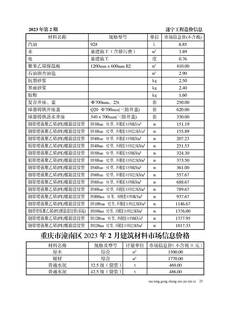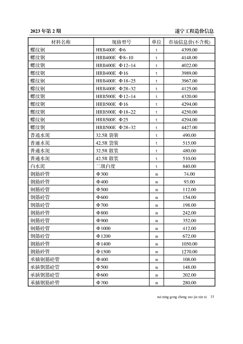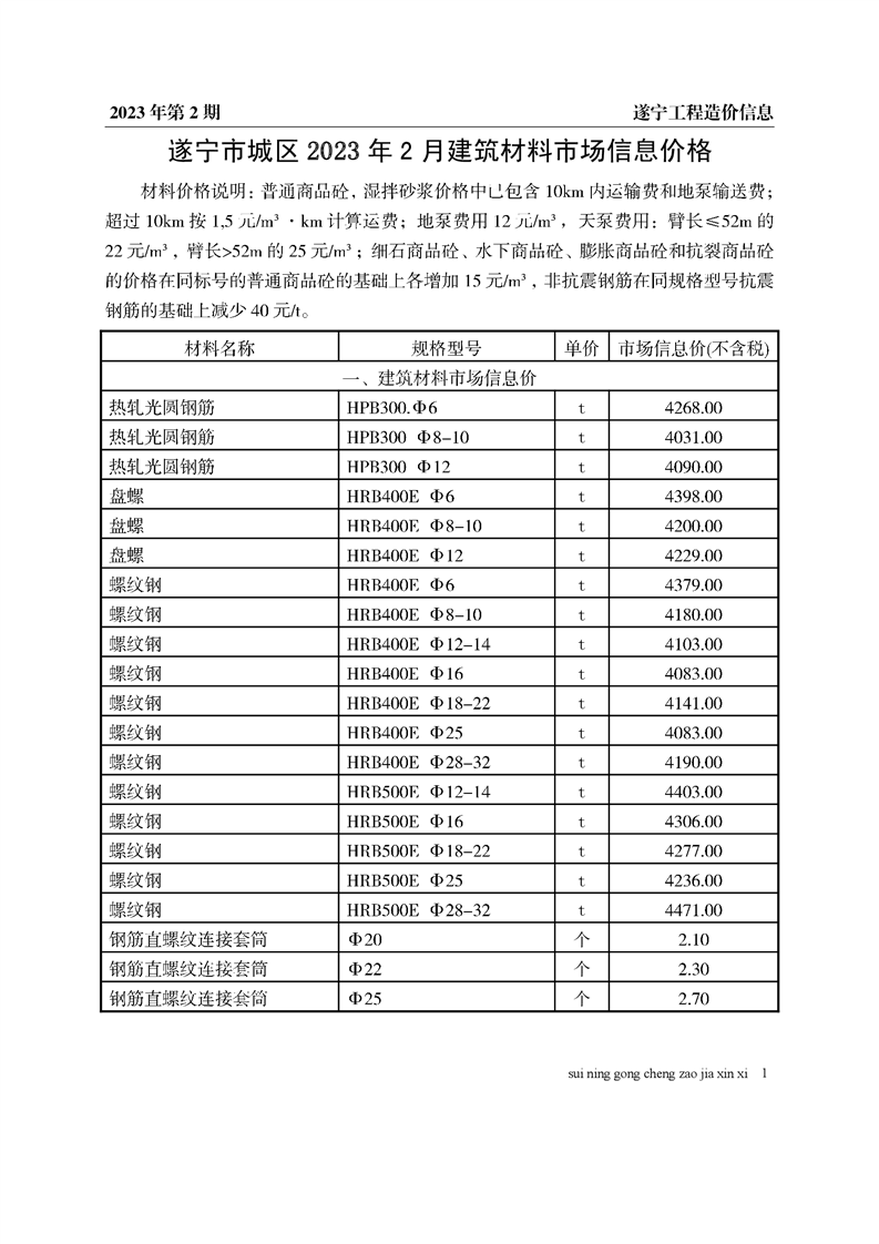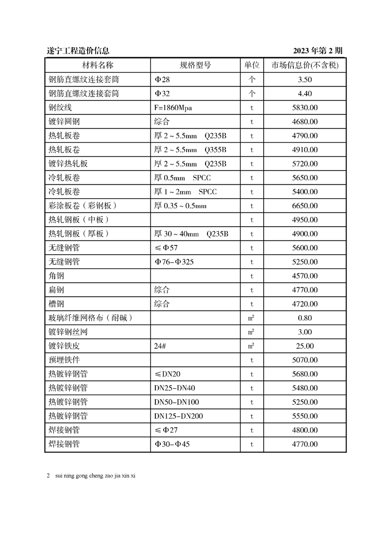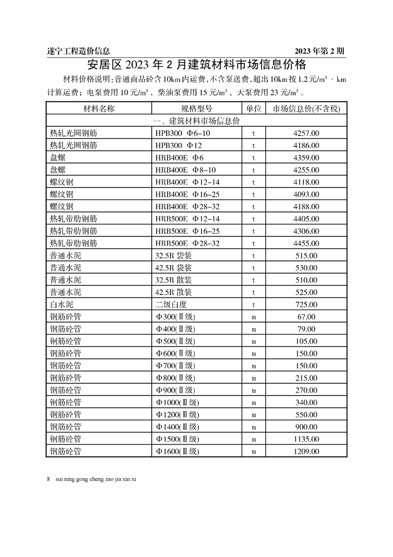 2023年2月建材价格
