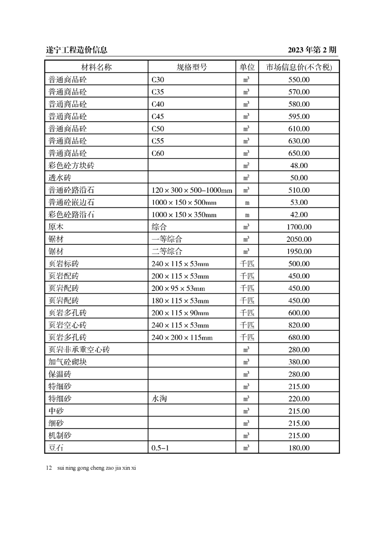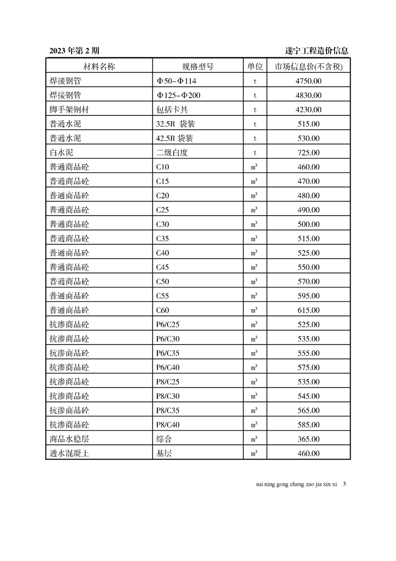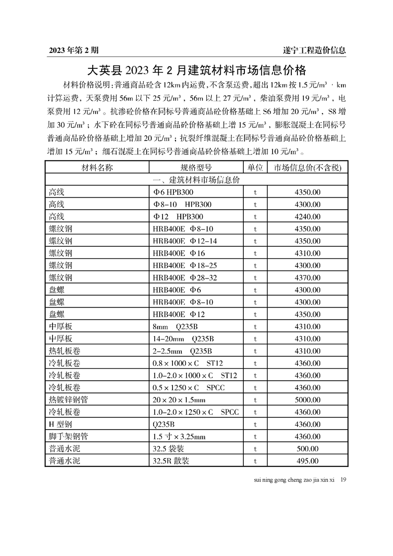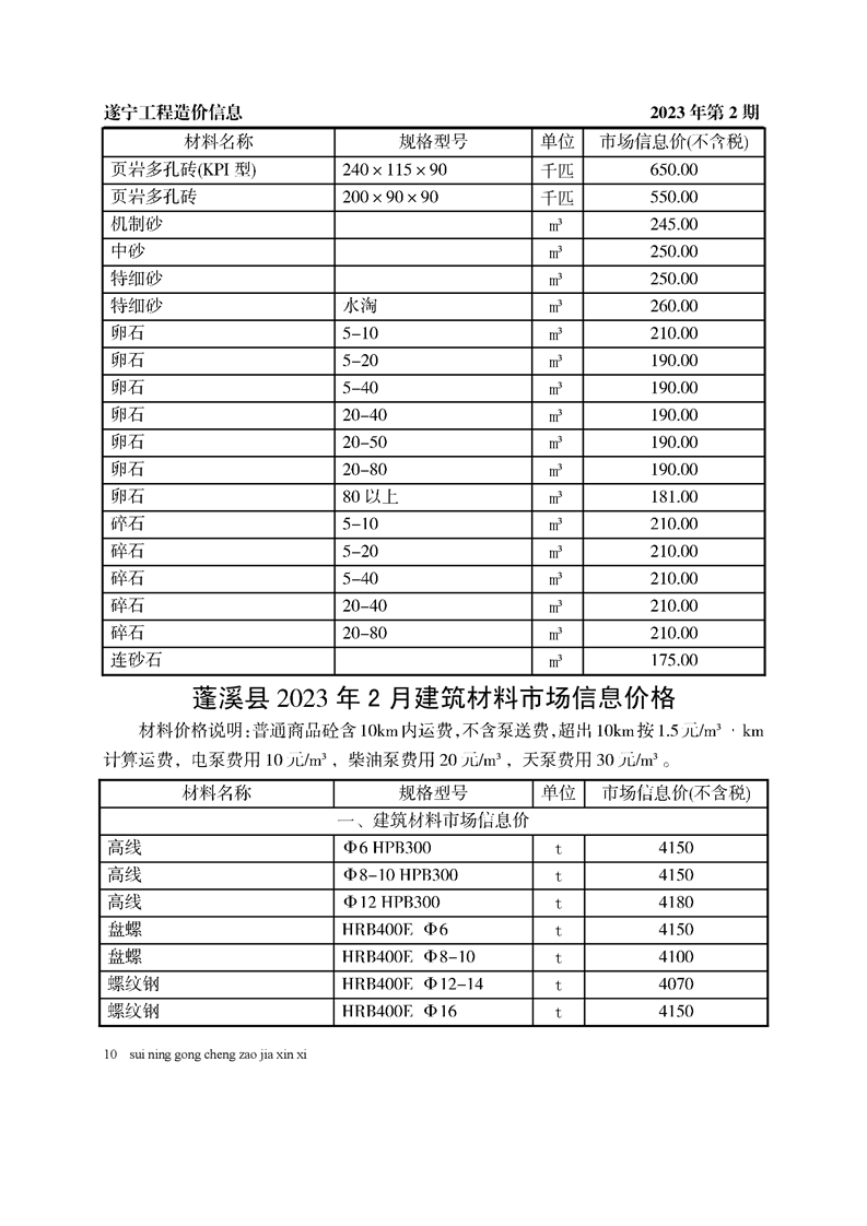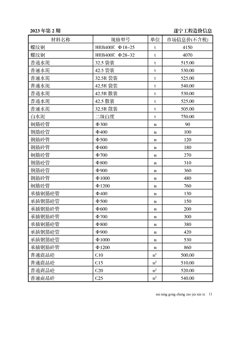 2023年2月建材价格