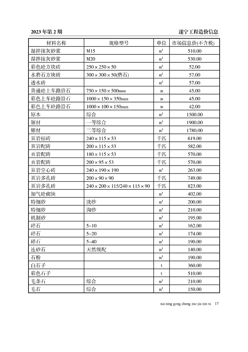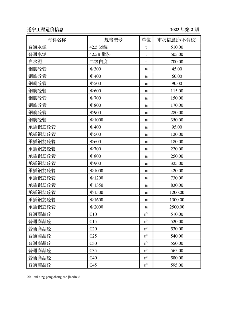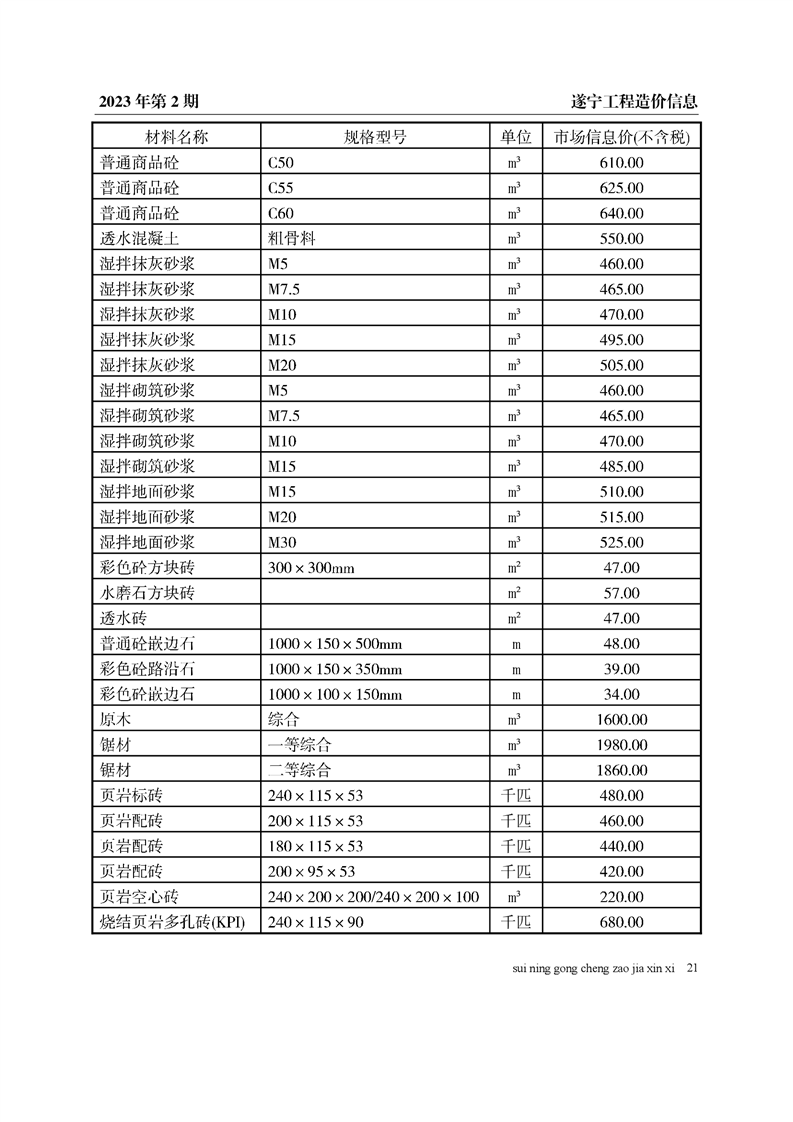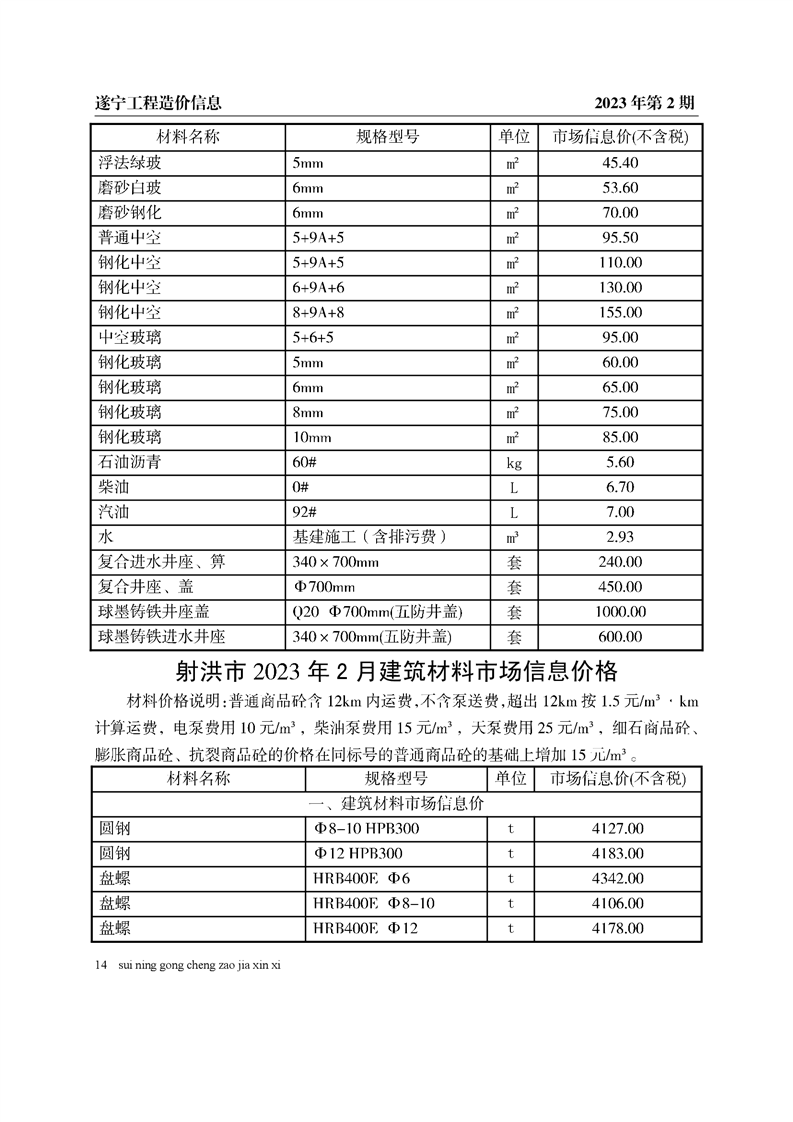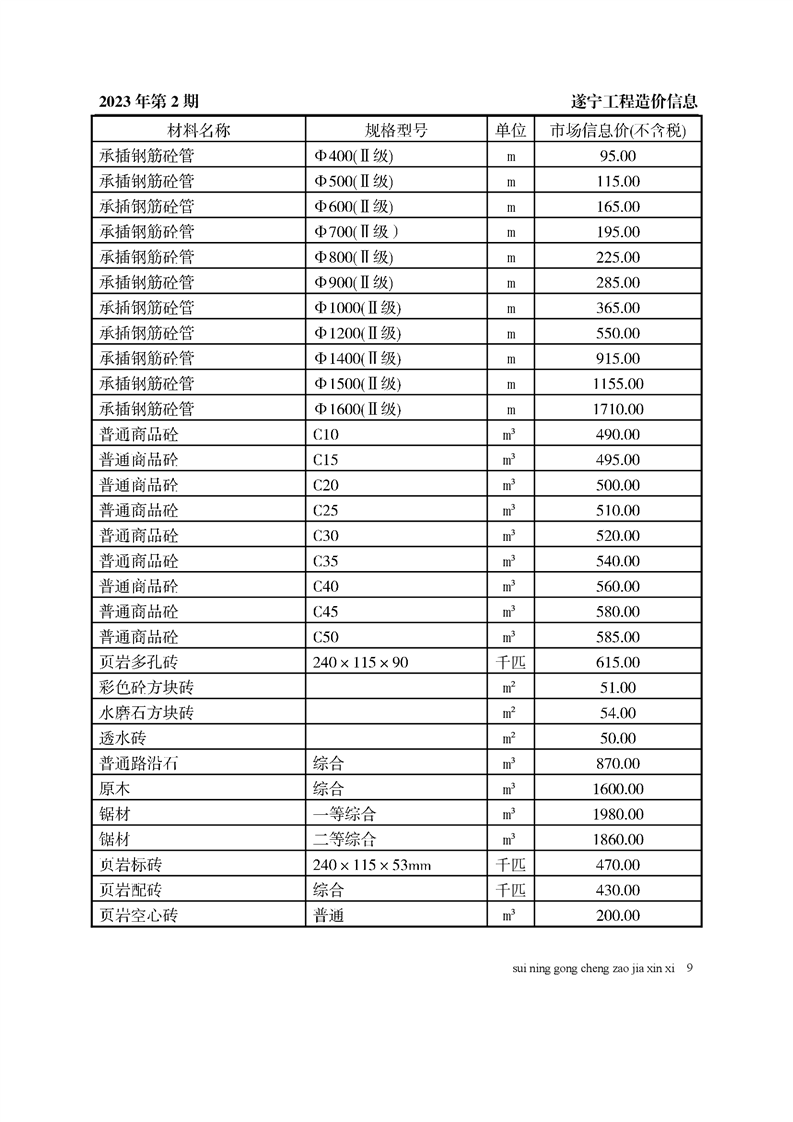 2023年2月建材价格