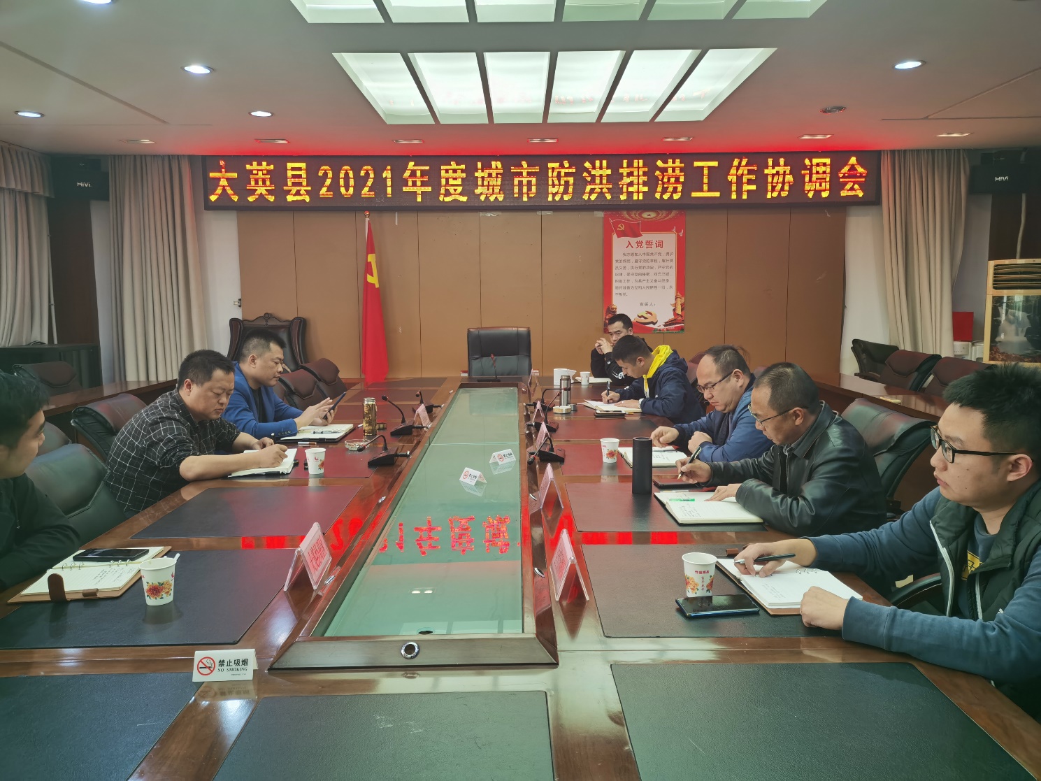 为进一步排查全县城区汛期易涝点,全力做好大英县2021年度城市防洪排涝工作,4月14日上午,县政府办包成鹏副主任在县住房城乡建设局307会议室主持召开了大英县2021年度城市防洪排涝工作协调会。县住房城乡建设局、县自然资源规划局、大英经开区、文旅产业园、蓬莱镇、盐井街道办等相关单位负责同志共同参加,县住建局相关业务股室负责人列席会议。