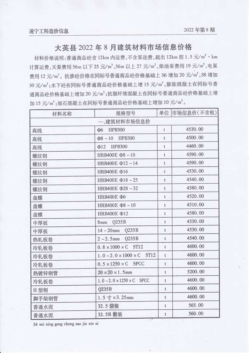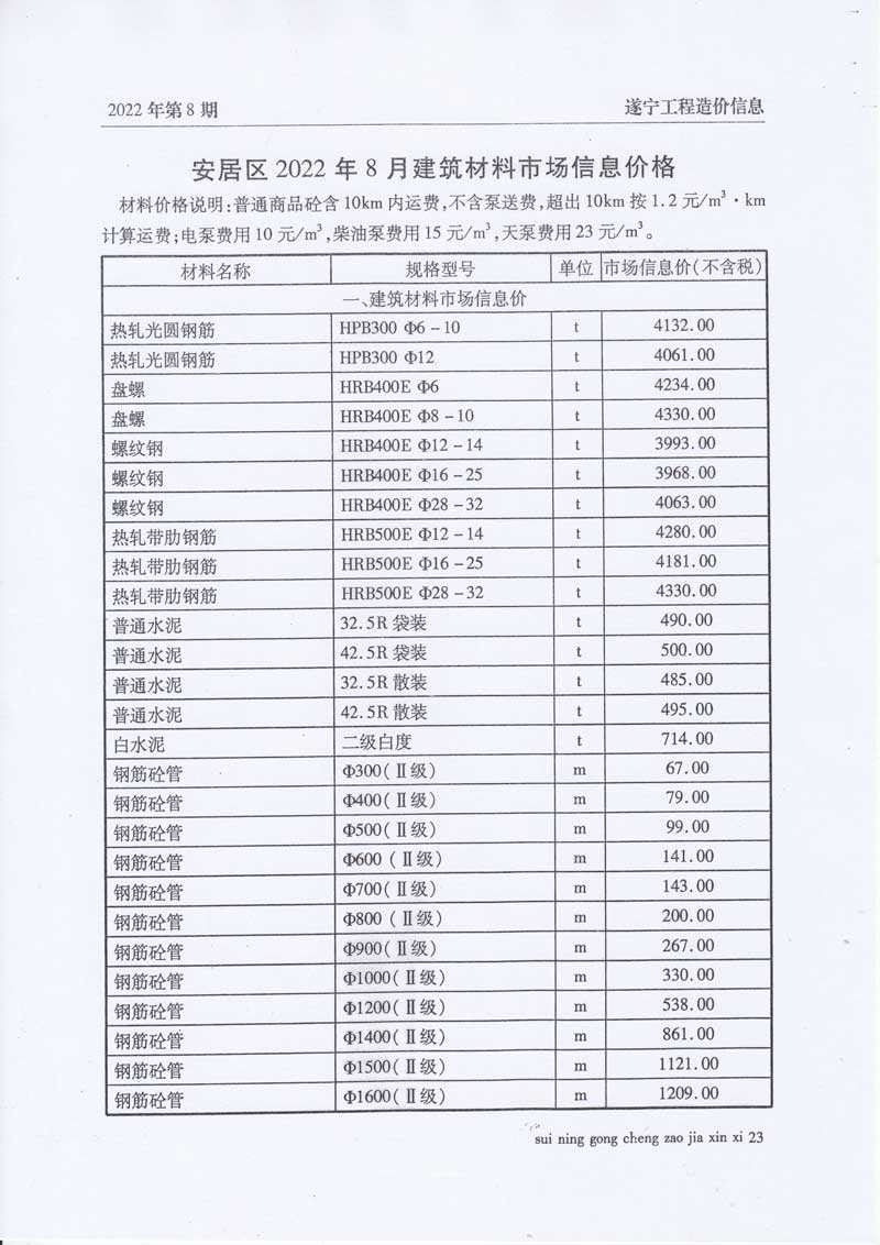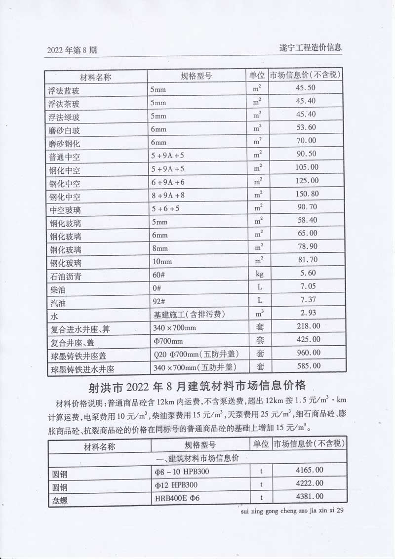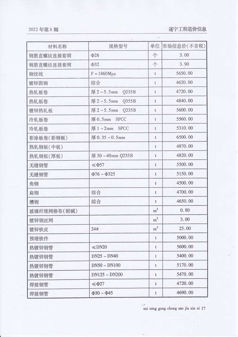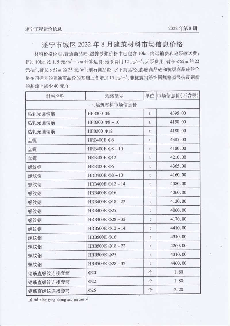 2022年8月建材价格