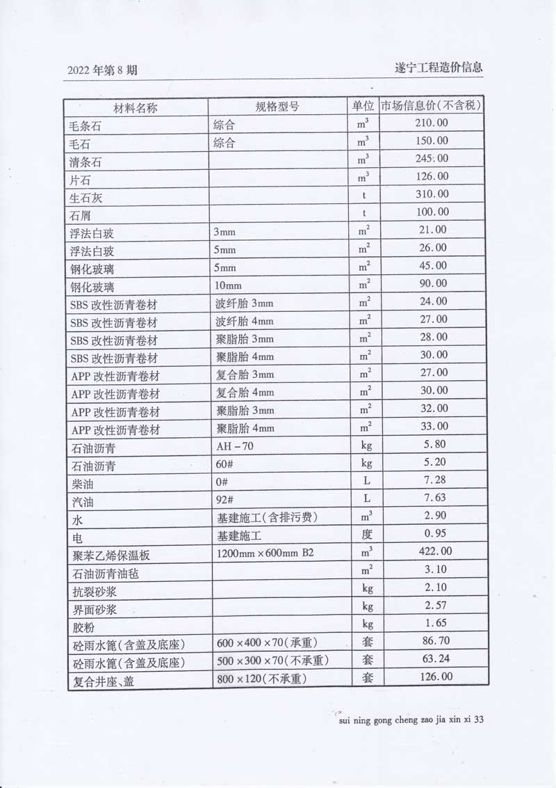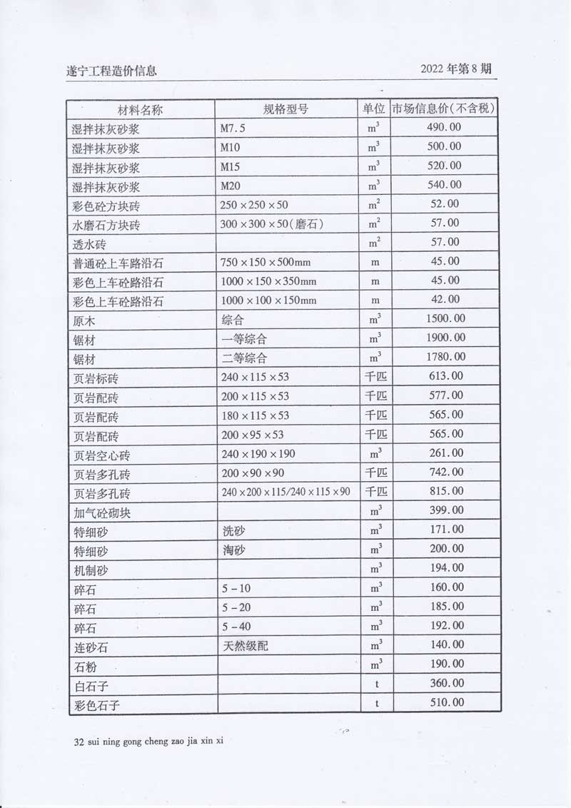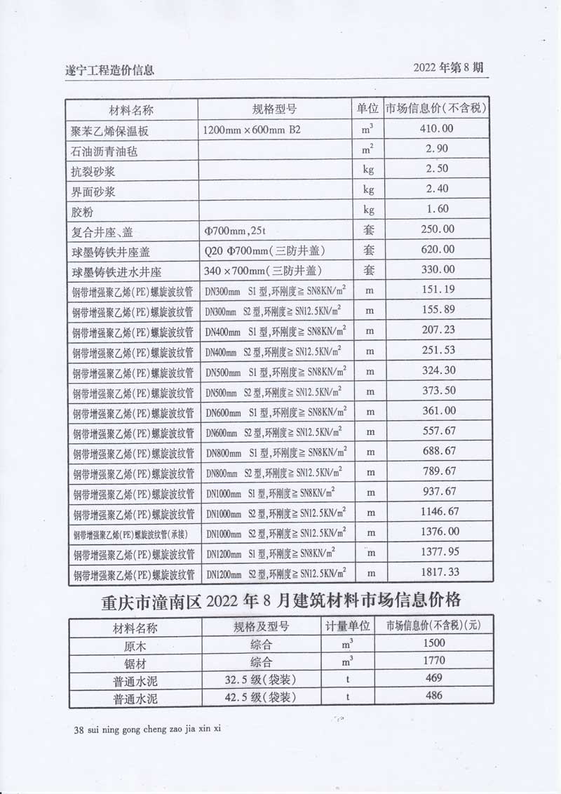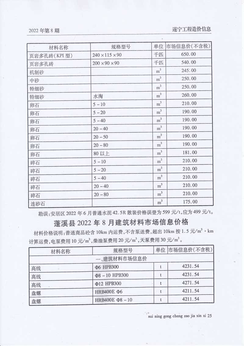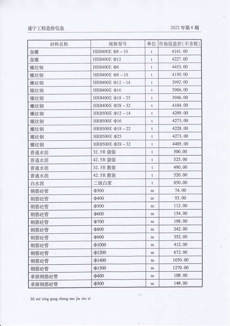 2022年8月建材价格