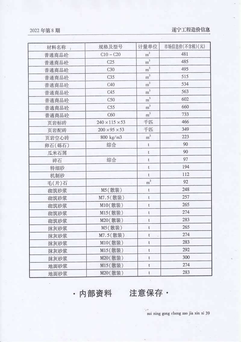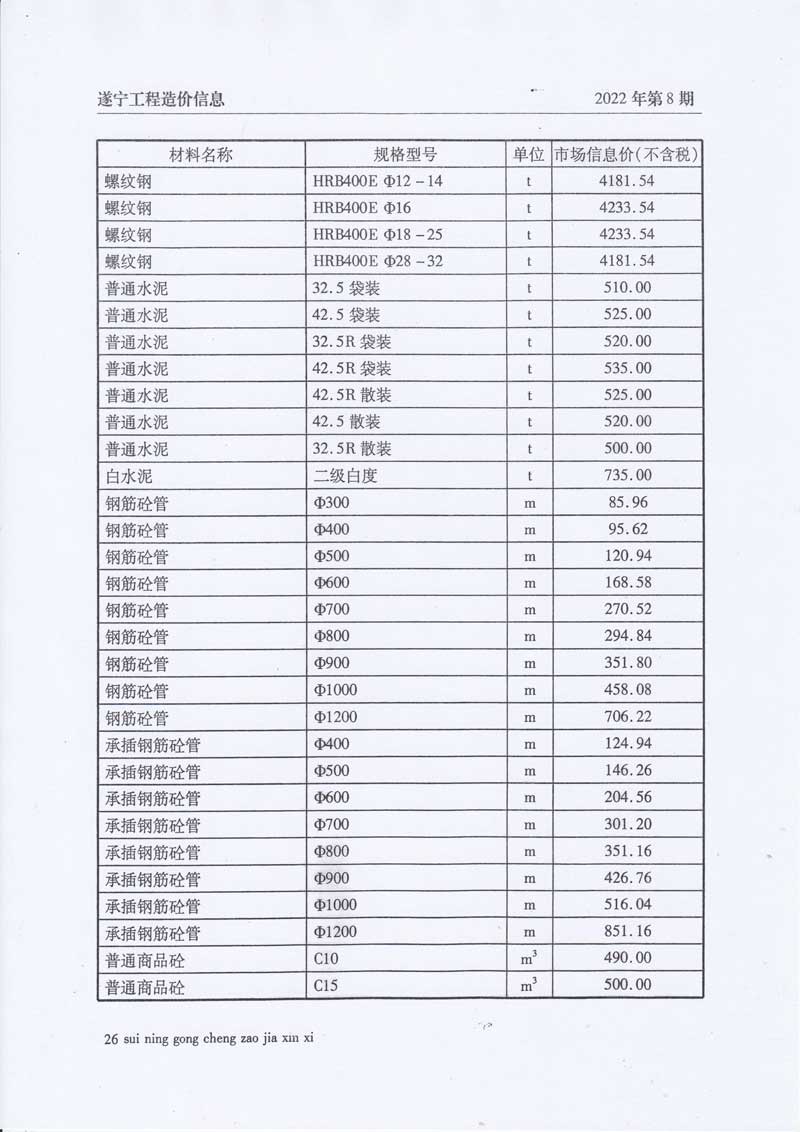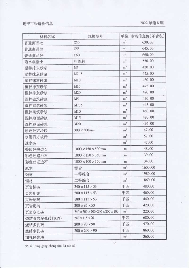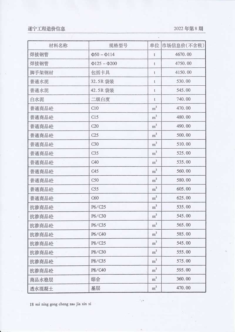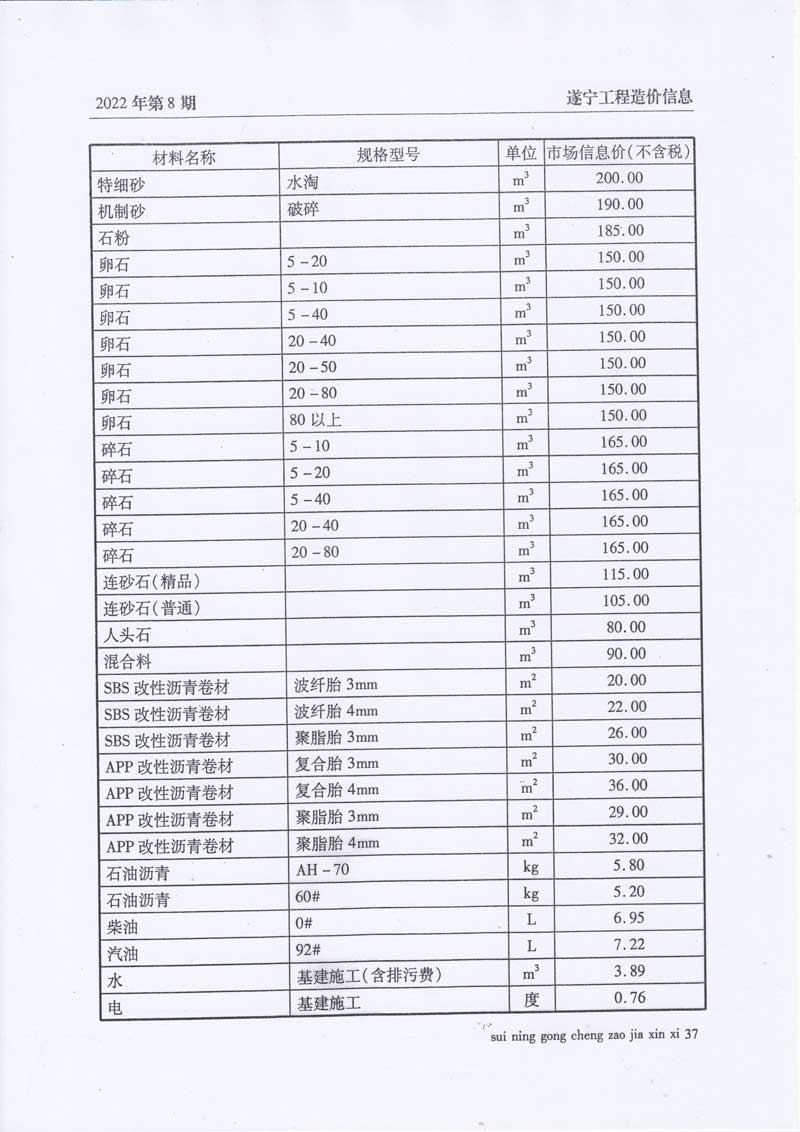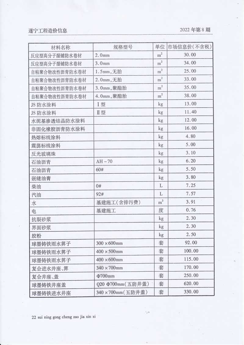 2022年8月建材价格