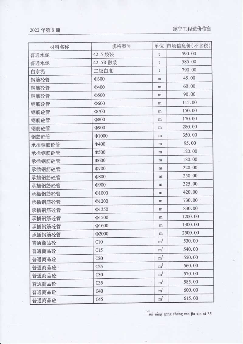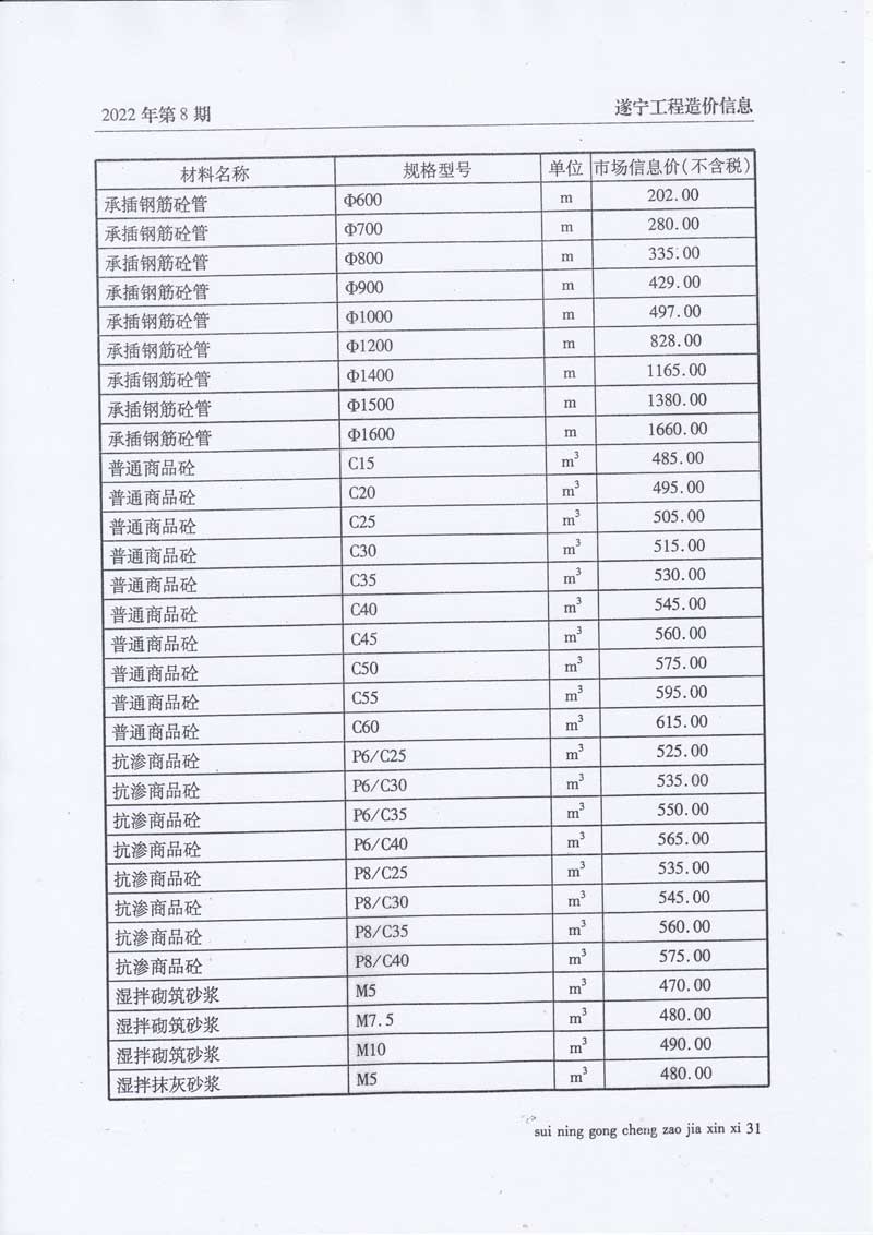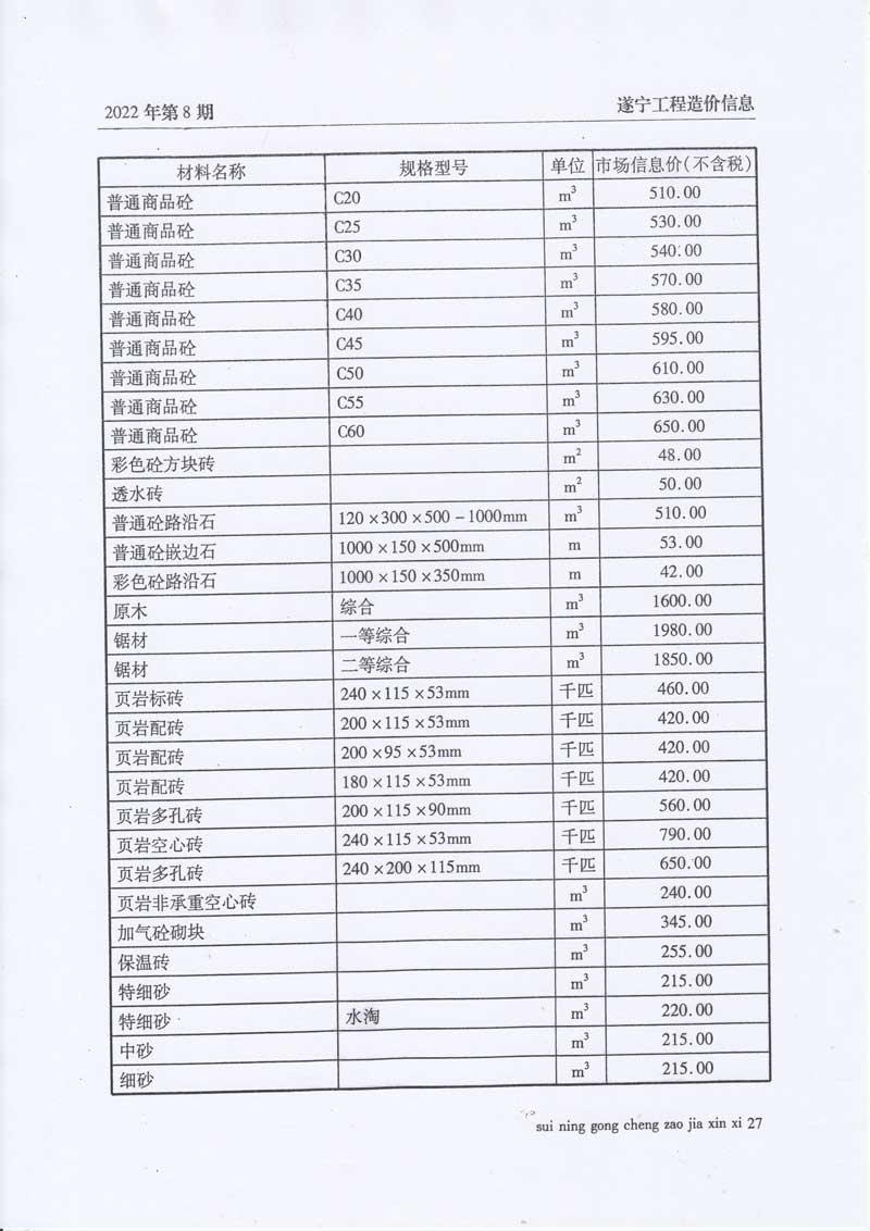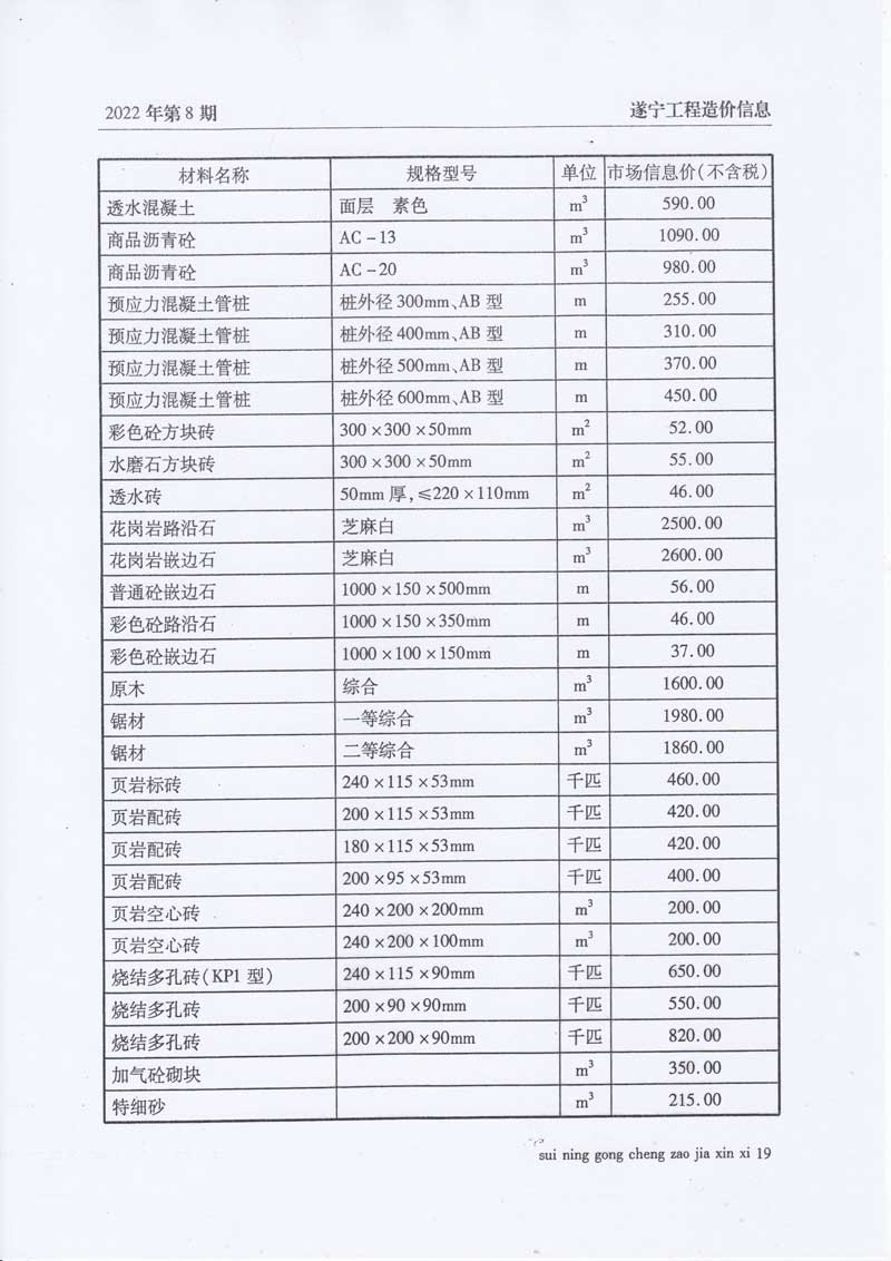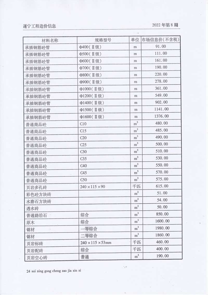 2022年8月建材价格