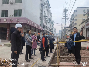 近期,我局收到部分老旧小区住户关于临街商铺污水排放问题及管网走向、管径等方面的意见和建议。为进一步办好民生实事,扩大群众理解与支持,10月23日上午9时,大英县住建局工作人员会同施工单位技术人员,邀请群众代表进行现场踏勘,共同对临街商铺污水管道埋设情况进行实地讲解,积极听取群众建设性意见,通过专业、耐心地释疑解惑、沟通交流,最大程度打消群众顾虑。