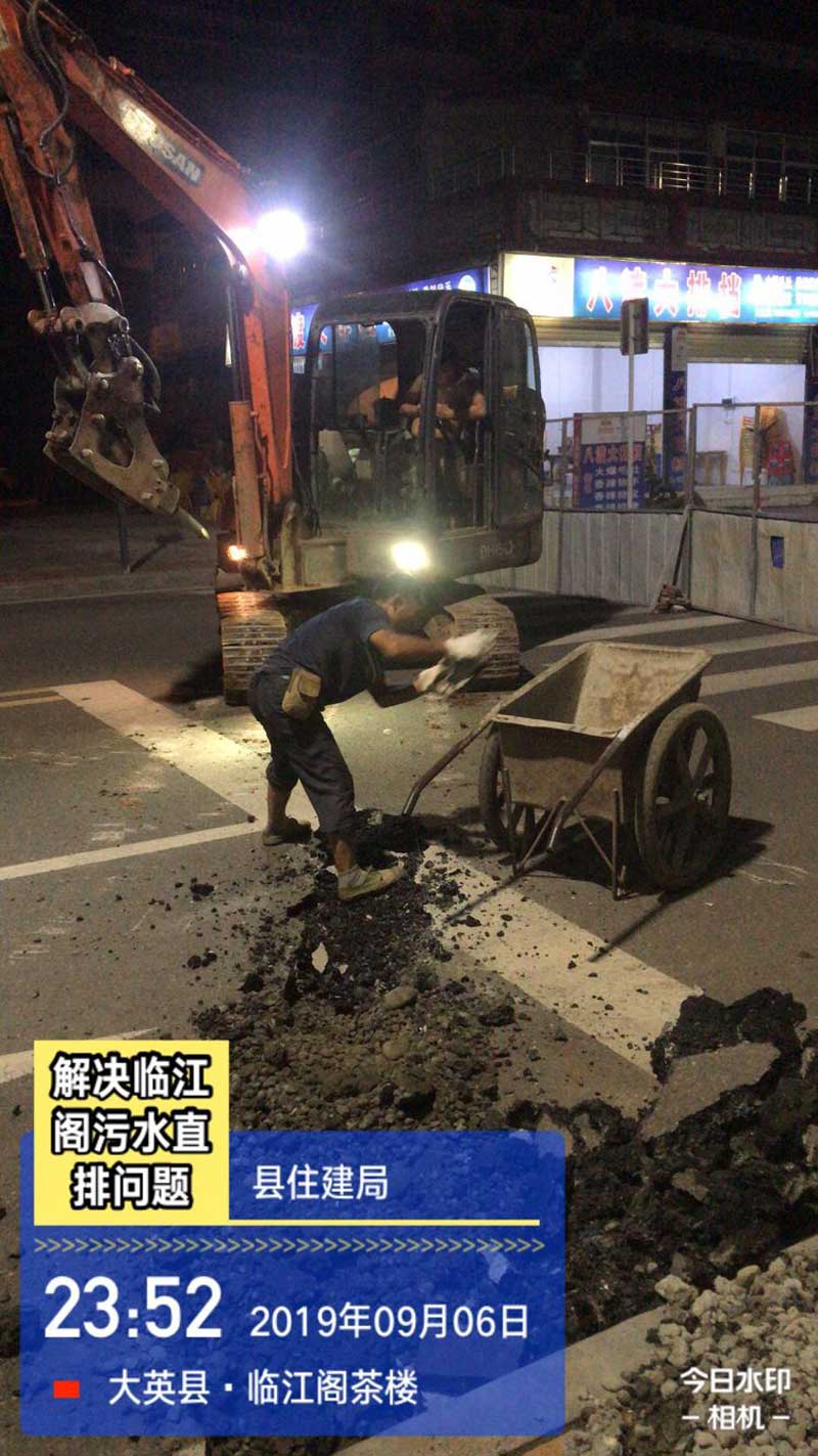 2017年中央环保督察查出临江阁陈云兰所经营茶楼的厕所污水直排问题,当时由县综合执法局牵头办理,在办理过程中综合执法局采取对临江阁云兰所经营茶楼的厕所进行查封处理。查封后导致陈云兰女士经营的茶楼无法正常营业,陈云兰女士多次在综合执法局、信访局反映无果后,于2019年8月写信给胡道军书记反映该情况,胡道军书记交办给我局组织解决该问题。收到胡书记交办后我局积极组织人员现场察看、制定相应方案、组织施工力量解决该问题。因该处地势低洼无法自流接入污水市政主管网我局通过协调陈云兰女士由其自建小型提升池后由我局修建过街支管网方式彻底解决了该处污水直排问题。9月6日经过连夜加班终于完成所有问题整改,共投入人力30余人次,150挖掘机一台,150破碎机一台,运渣车2辆,新建污水支管网30余米,总投资约8万元。2020年9月19日收到陈云兰女士送来的锦旗,我局工作人员内心无比喜悦,感到自己辛勤劳动的成果得到了认可,为以后工作的开展注入了活力。