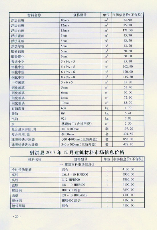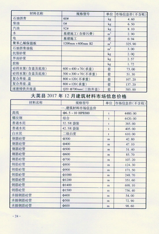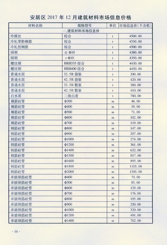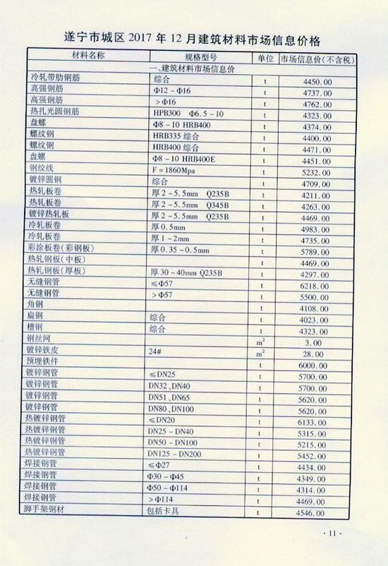 2017年12月建材价格