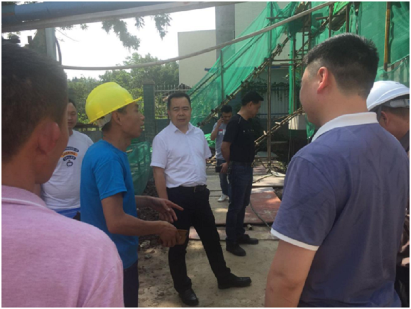 在老池镇三新污水处理厂,邓勇深入施工现场查看提标扩能改造等情况,对施工现场发现的防护网严重破损、防护架离主体过远、架体稳定性差等安全问题,要求项目参建各方切实履行安全生产主体责任,按照安全文明施工标准化要求规范施工,立即落实问题整改,坚决防范各类事故发生。针对由于污水处理厂与学校紧邻的特殊位置,导致设备难以入场的问题,邓勇指出各方要加强协商,立足解决,务必消除项目推进过程中可能对学生造成的安全隐患问题;要按计划进度加快推进,务必于8月底前完成设备安装及调试工作,确保污水处理厂有效运行。