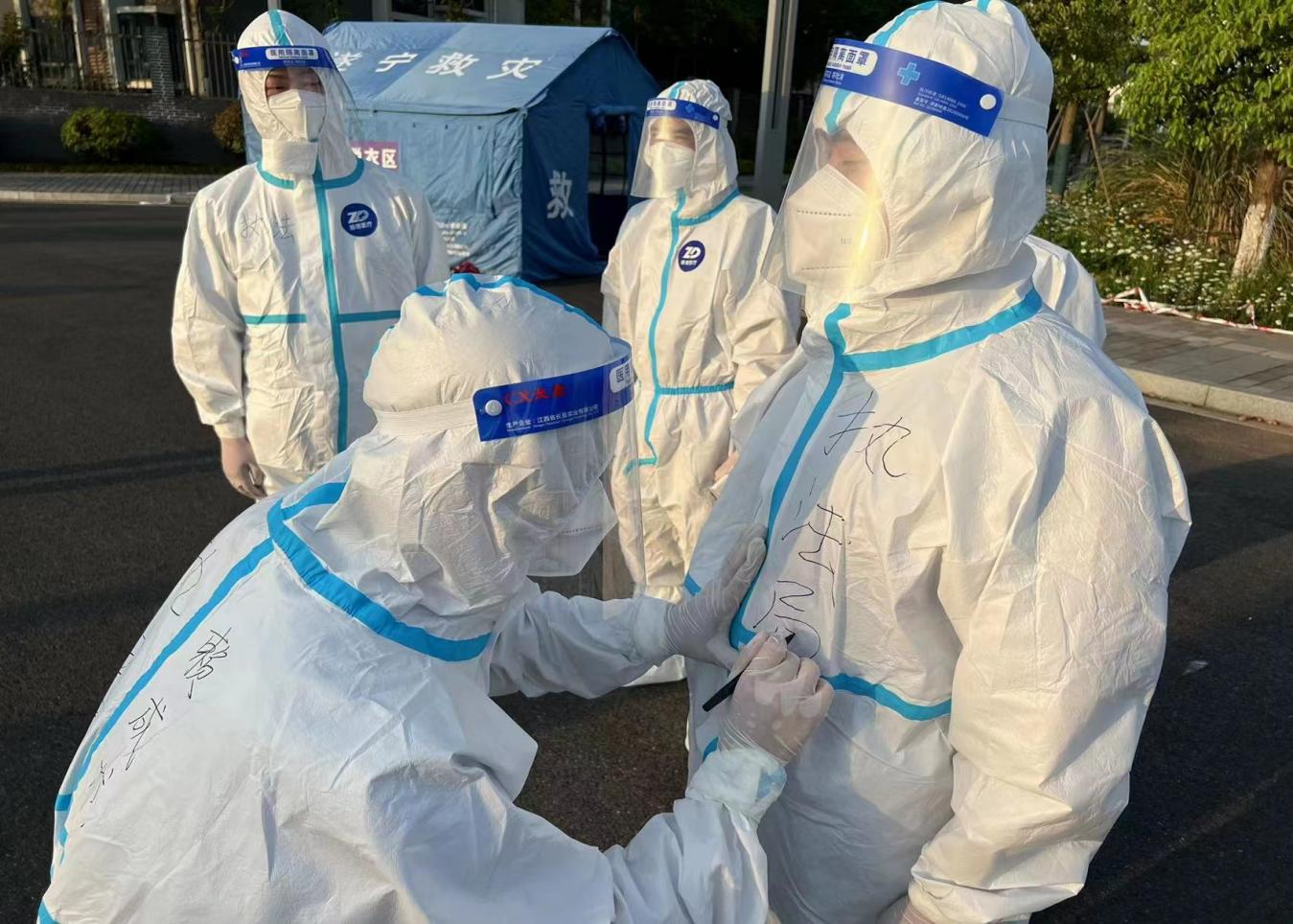 穿上防护服,我们的“城市卫士”化身“防疫战士”,他们中间有脱下军装的老兵,有孩子无人照看的母亲,还有已经值守了10几个小时的党员先锋队员...他们从穿上防护服的那一刻起就没有片刻停歇,由于防护服每次脱换需要进行一次消毒且换新,为节约防护物资,许多队员一站就是6、7个小时,耳朵被口罩带子勒到麻木,双手被汗水泡烂...也许我们记不住他们每个人的名字,但我们却能看见他们默默的坚守与付出。