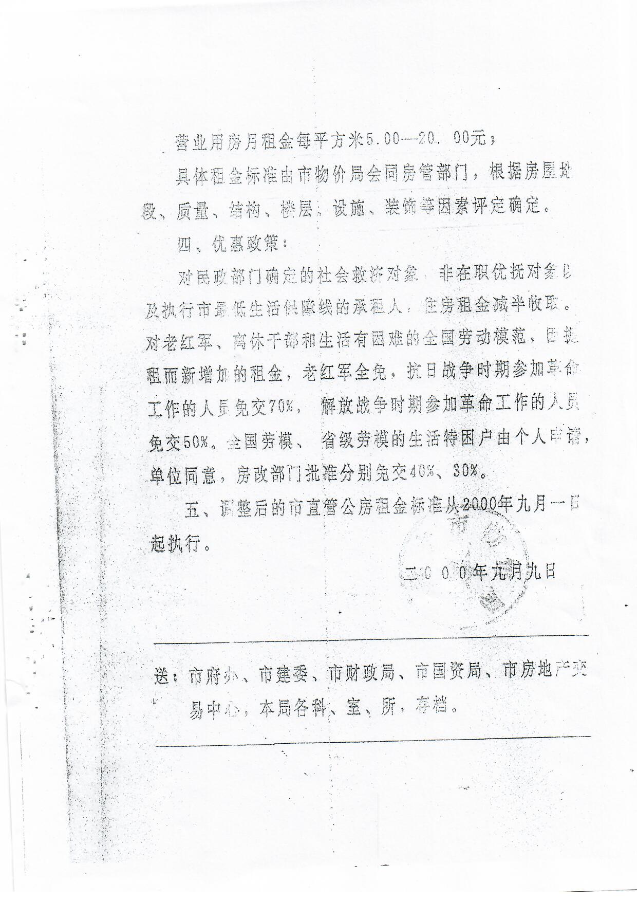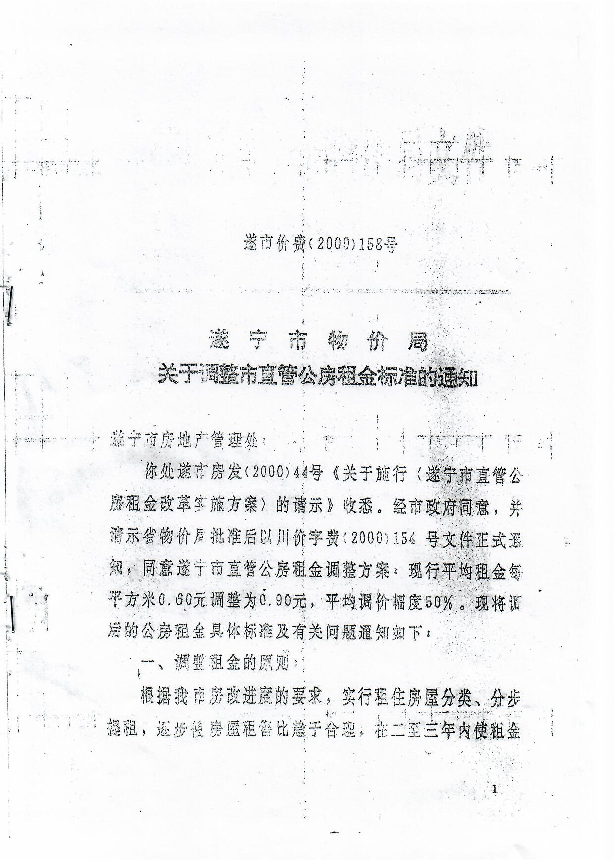 关于调整市直管公房租金标准的通知 遂市价费【2000】158号
