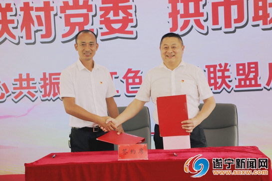 遂宁新闻网讯(全媒体记者 曾晓梅)8月30日,安居区海龙联村党委与蓬溪县拱市联村党委“同心共振”红色党建联盟正式启动。据悉,这是我市首个跨区域乡村党建联盟,两地通过签订“同心共振”红色党建联盟框架协议,实现在更大范围、更宽领域、更深层次上成为互融共通的“一家人”,在党建共抓、产业共兴、文旅共融等方面共建共享。