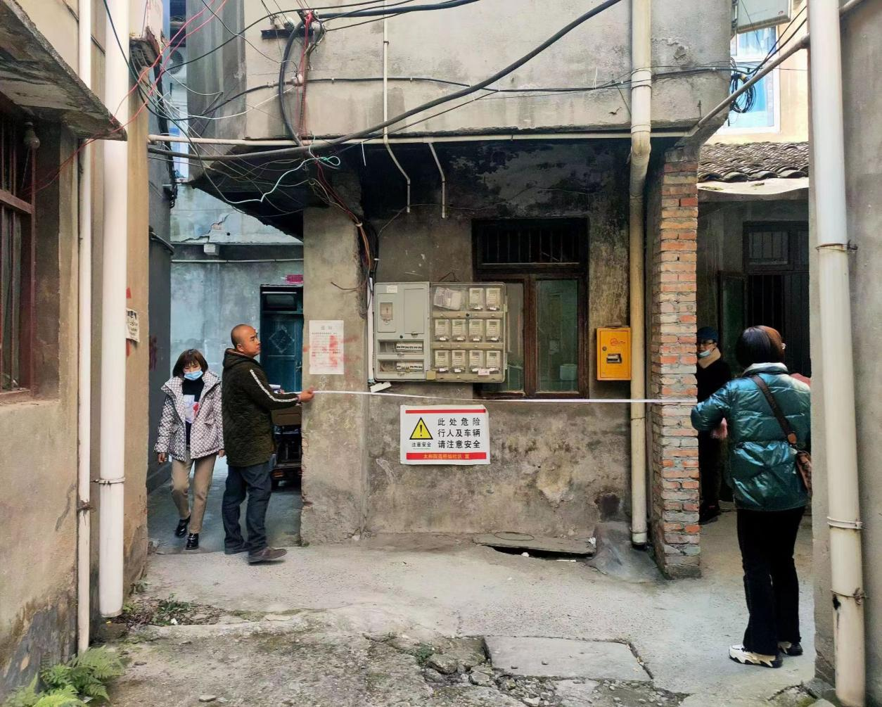排查中,志愿者发现邓家院子一处房屋墙体裂缝较大,存在安全隐患,虽然该房屋目前无人居住,但存在垮塌风险,会对周边居民造成威胁。志愿者立即将该房屋情况上报到办事处城管办并联系房屋主人说明情况,经沟通协商,房屋主人同意由专业人士将墙体加固,修补裂缝,消除安全隐患。社区工作人员在房屋周边围上安全警示带,每日两次对房屋隐患问题进行查看,并引导广大住户深刻认识危旧房存在的安全隐患。