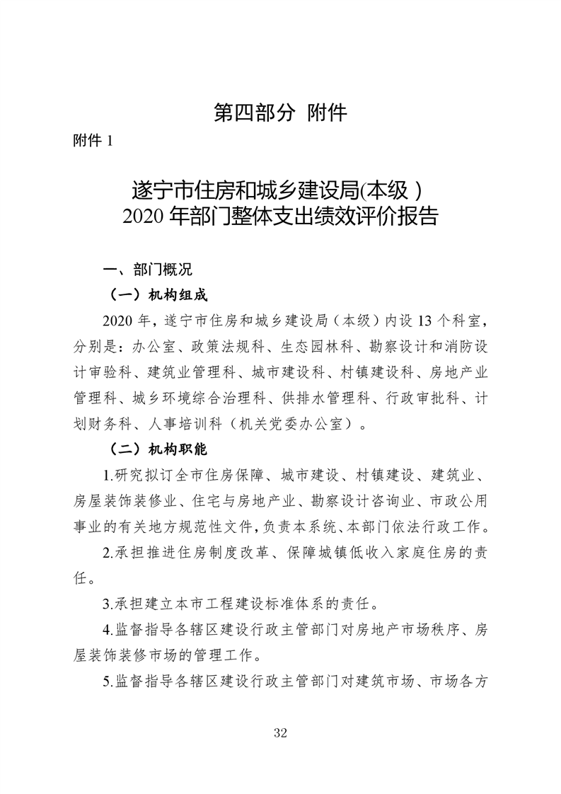 遂宁市住房和城乡建设局(本级)2020年部门决算编制说明